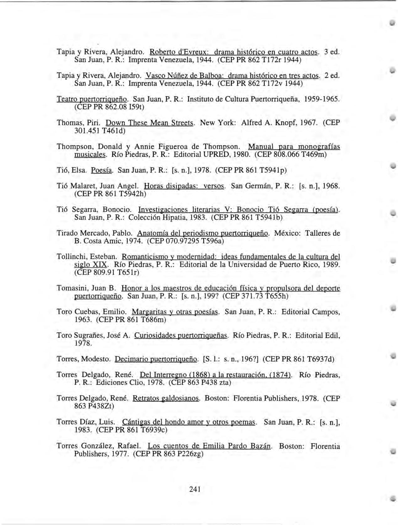Ti6 Segarra , Bonocio. Investigaciones literarias V: Bonocio Ti6 Segarra (poesfa) . San Juan , P.R. : Colecci6n Hipatia , 1983 . (CEP PR 861 T5941b )
