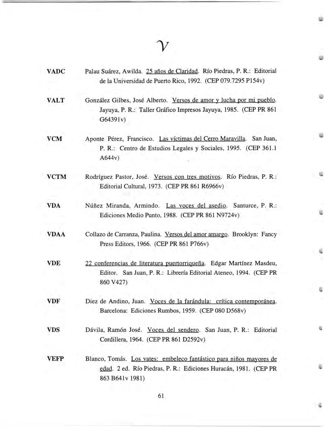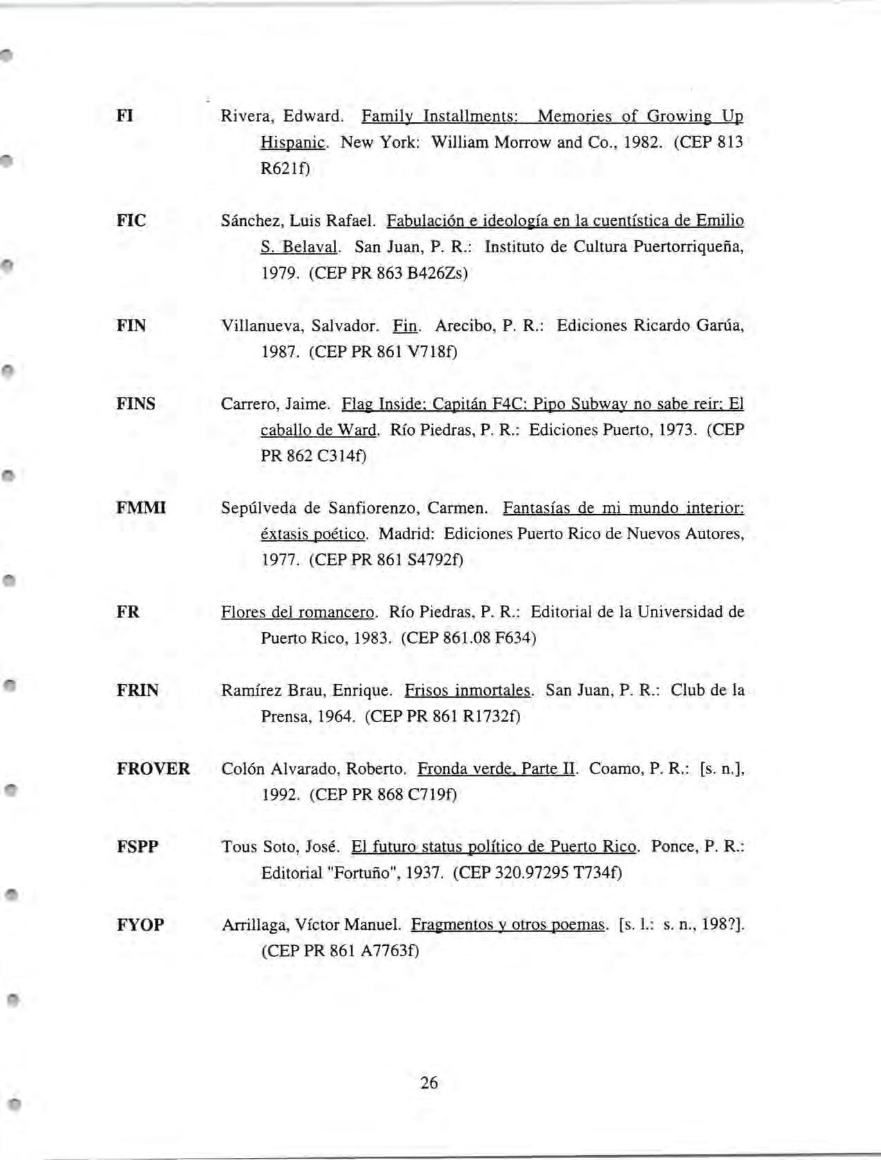 Villanueva, Salvador. Fin. Arecibo, P. R.: Ediciones Ricardo Gama, 1987. (CEP PR 861 V718f)