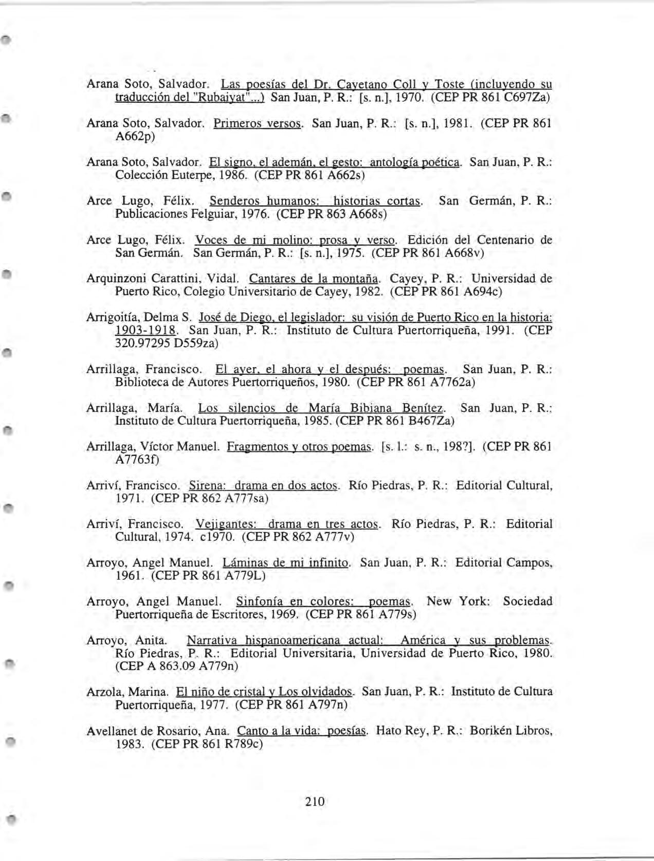 Arana Soto, Salvador. Antologfa de medicos poetas puertorriguefios. San Juan, P.R.: [s. n.] , 1973. (CEP PR 861.08 A6342)