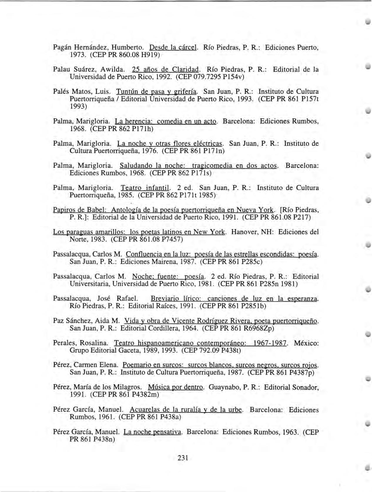 Gares Martinez , Tomas R. Agridulce : poemas. New York: Sociedad Puertorriquefia de Escritores , 1969. (CEP PR 861 G229a)