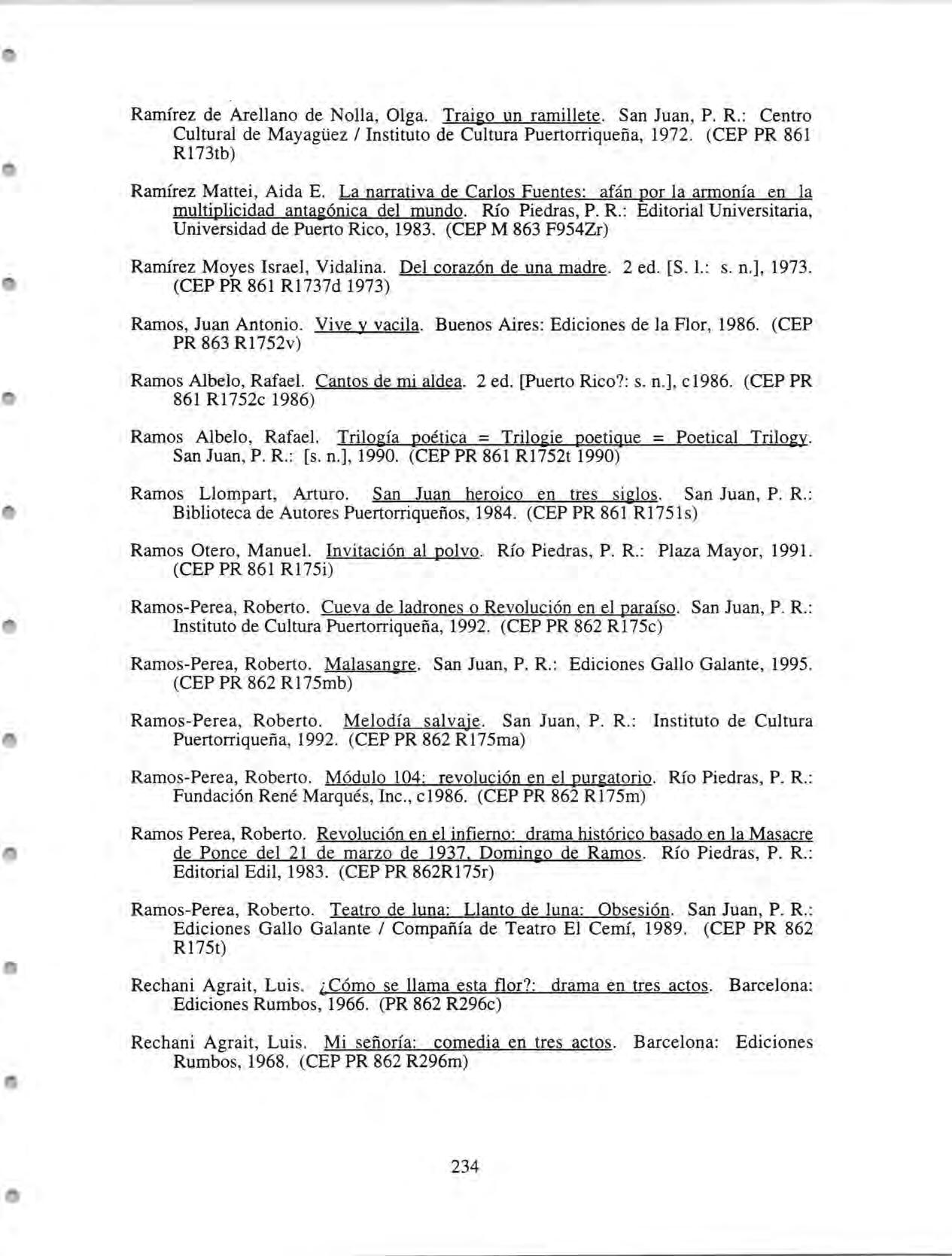 Santaliz Avila , Pedro. Teatro. San Juan , P. R.: Instituto de Cultura Puertorriquefia , 1992 (CEP PR 862 S232t)