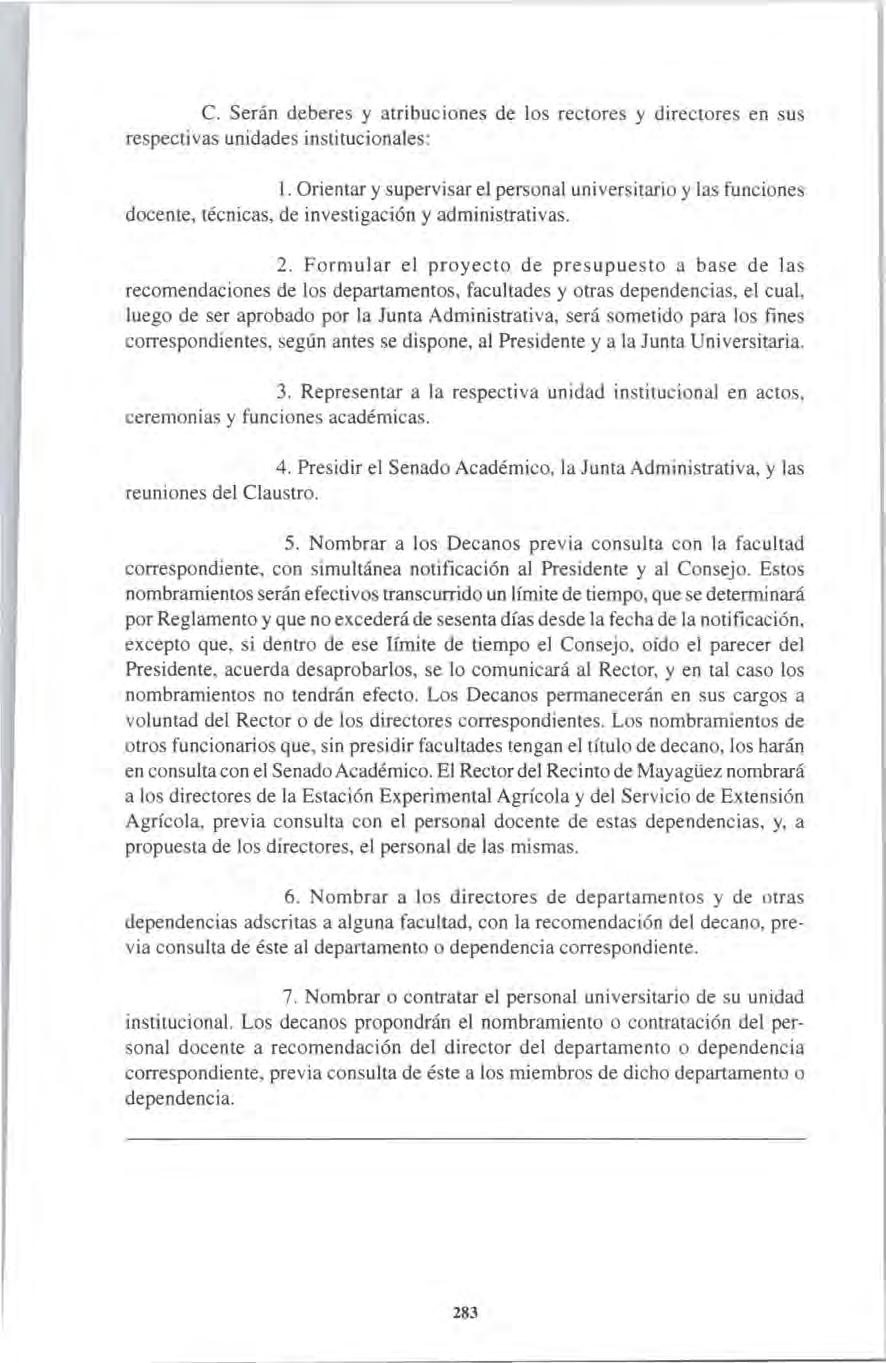 c) El objetivo ultimo de la gesti6n deberfa ser el cumplimiento 6ptimo de la misi6n institucional asegurando una enseiianza, formaci6n e investigaci6n de gran calidad , y prestando servicios a la comunidad . Este objetivo requiere una direcci6n que combine la visi6n social , incluida la comprensi6n de los problemas mundiales, con competencias de gesti6n eficaces . La funci6n de direcci6n en la enseiianza superior constituye, por tanto, una responsabilidad social de primer orden y puede reforzarse de manera significativa a traves de! dialogo con todos los que participan en ella, y en particular con los profesores y los estudiantes Teniendo presente la necesidad de mantener dentro de Ifmites razonables las dimensiones de los 6rganos rectores de los establecimientos de enseiianza superior, habria que prever Ia participaci6n de los academicos en dichos 6rganos, en el marco institucional vigente.