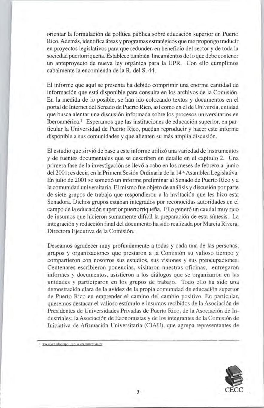 SENADO DE PUERTO Rico CoMis16N DE EDucAc16N, CIENCIA Y CuLTURA Sometido por : Hon. Margarita Ostolaza Bey Presidenta Comisi6n de Educaci6n , Ciencia y Cultura 19 de septiembre 200 I