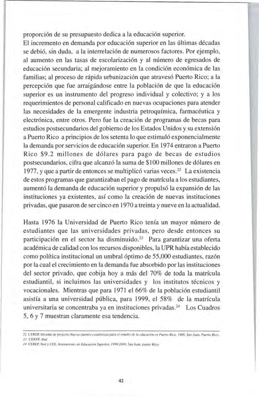 Tendencias y caracteristicas de Ia educacion superior en Puerto Rico