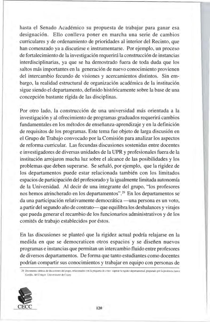 • Los esfuerzos de la reconceptualizaci6n del bachillerato del Recinto de Rfo Piedras 122