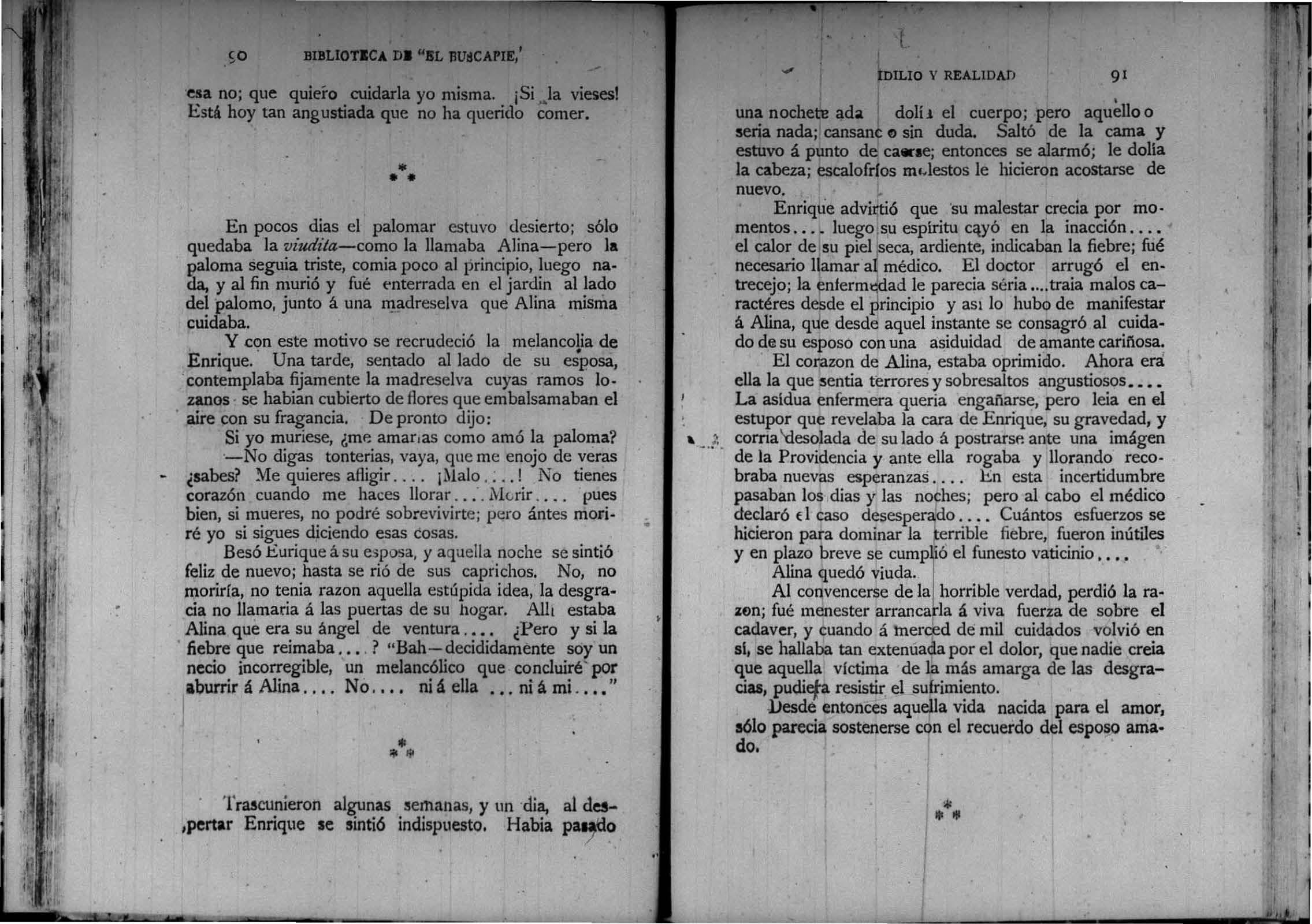 la realidad, y cuanto desagradable le pasaba le parecía pesadilla de la cual iba á despertar tan feliz como antes. . . . El recuerdo de su dicha pas•da le irrit l ; parpadeó con m fa viveza que de costumbre, y se restregó los ojos con sus manE.'CÍtas finas y delicadas, c..>mo si quisiera quitarse de la vista algo que le es · torbase.