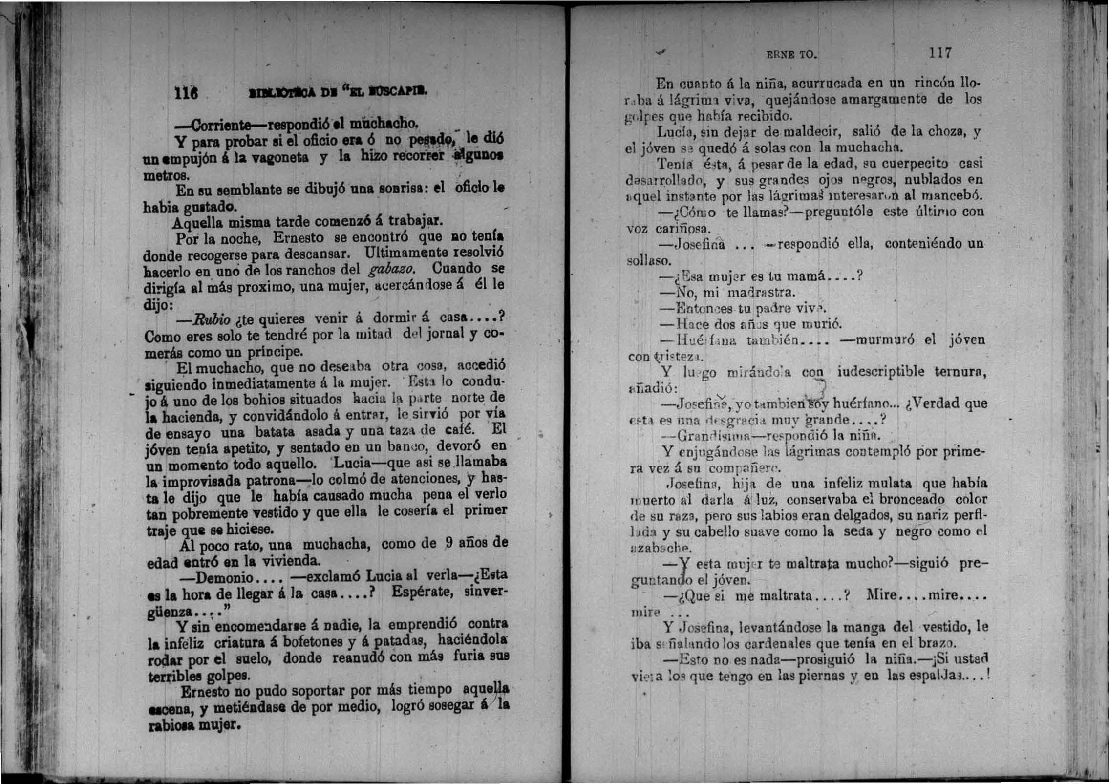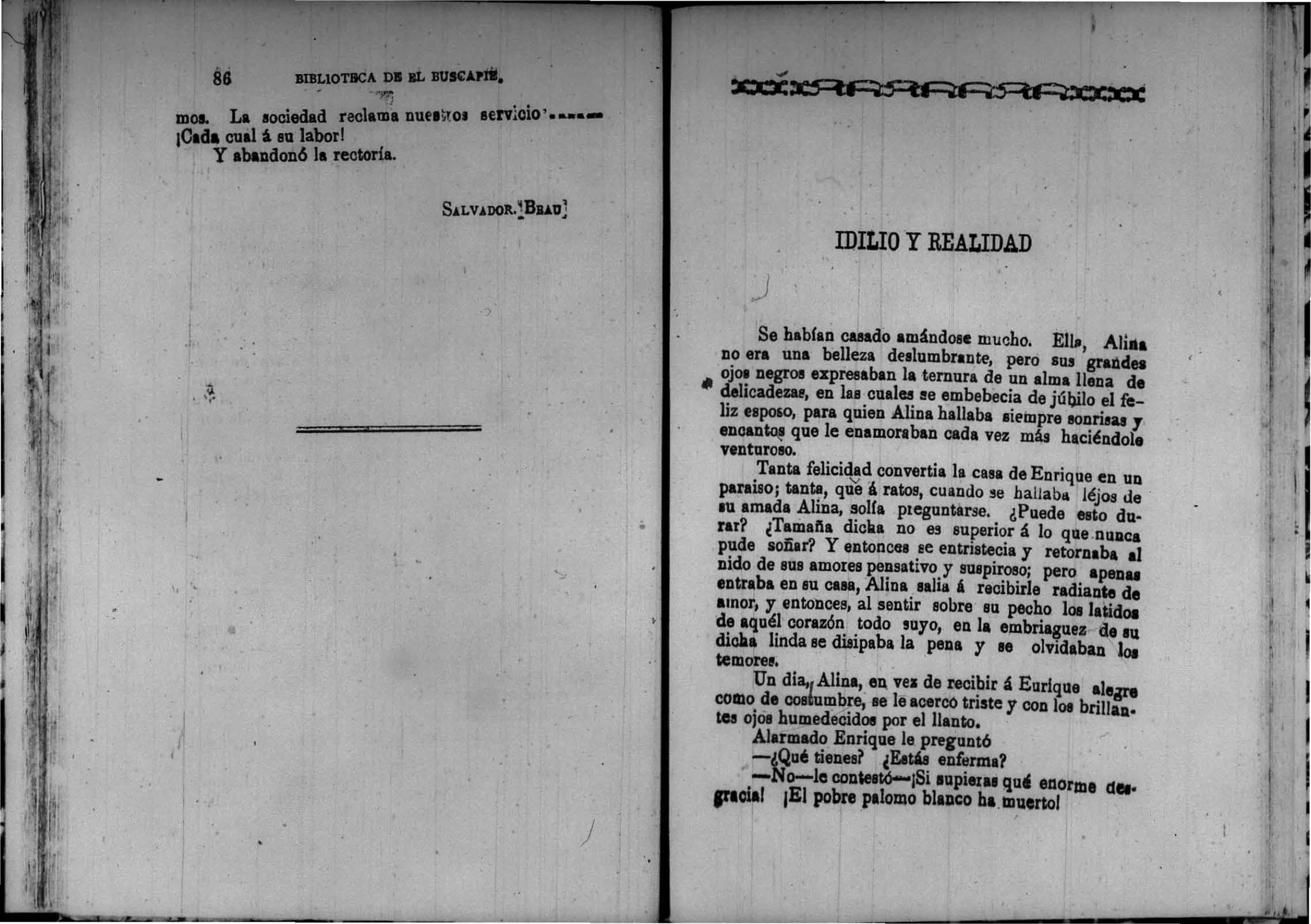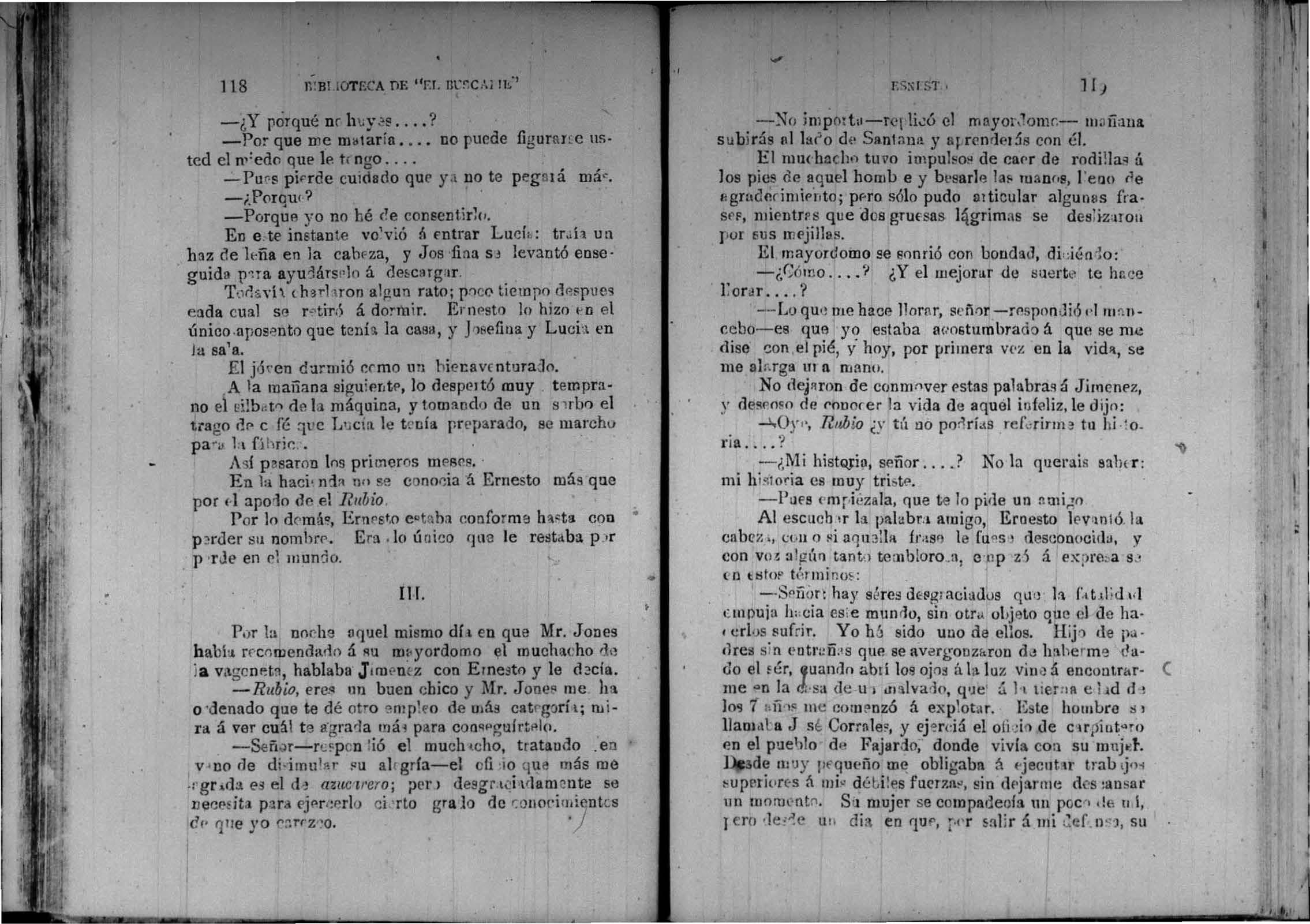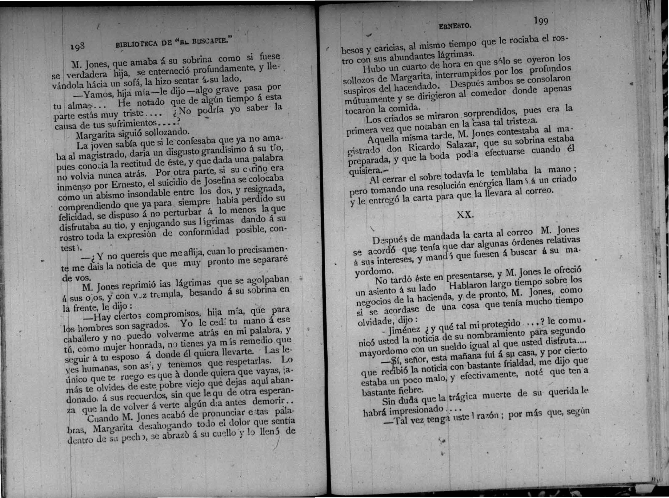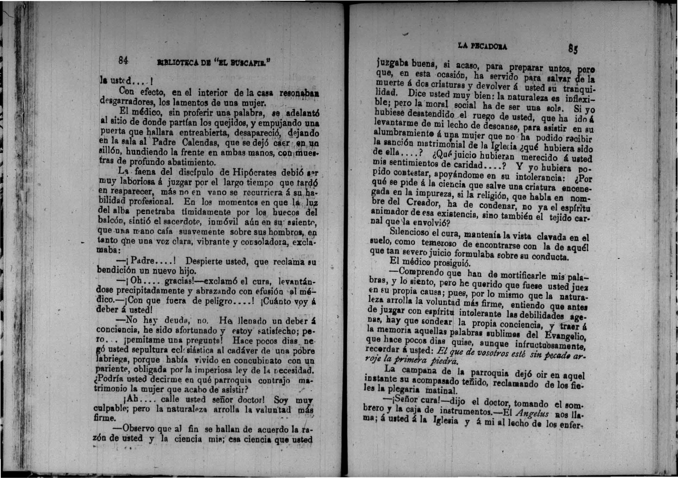 Una tarde del mes de Junio, el doctor Duena visitaba :\ Ja madre de Miguel, enferma, 11 la sazón. Aque\ dja estaba muy mejorada la enferma y el mi dico aprqvtj\1ran<k> las buenas d sposiciones de flnimo de Miguel, se entretuvo chfrlando un rato sobre cosas indife · rentes. El doct0r $ba de vena, y de u a en otra cosa la conver.Ía¡::ión req.yó en la noticia de la dram' ticamuerte;,itrº·-de la cual trajeron los periódicog no . ticias d .