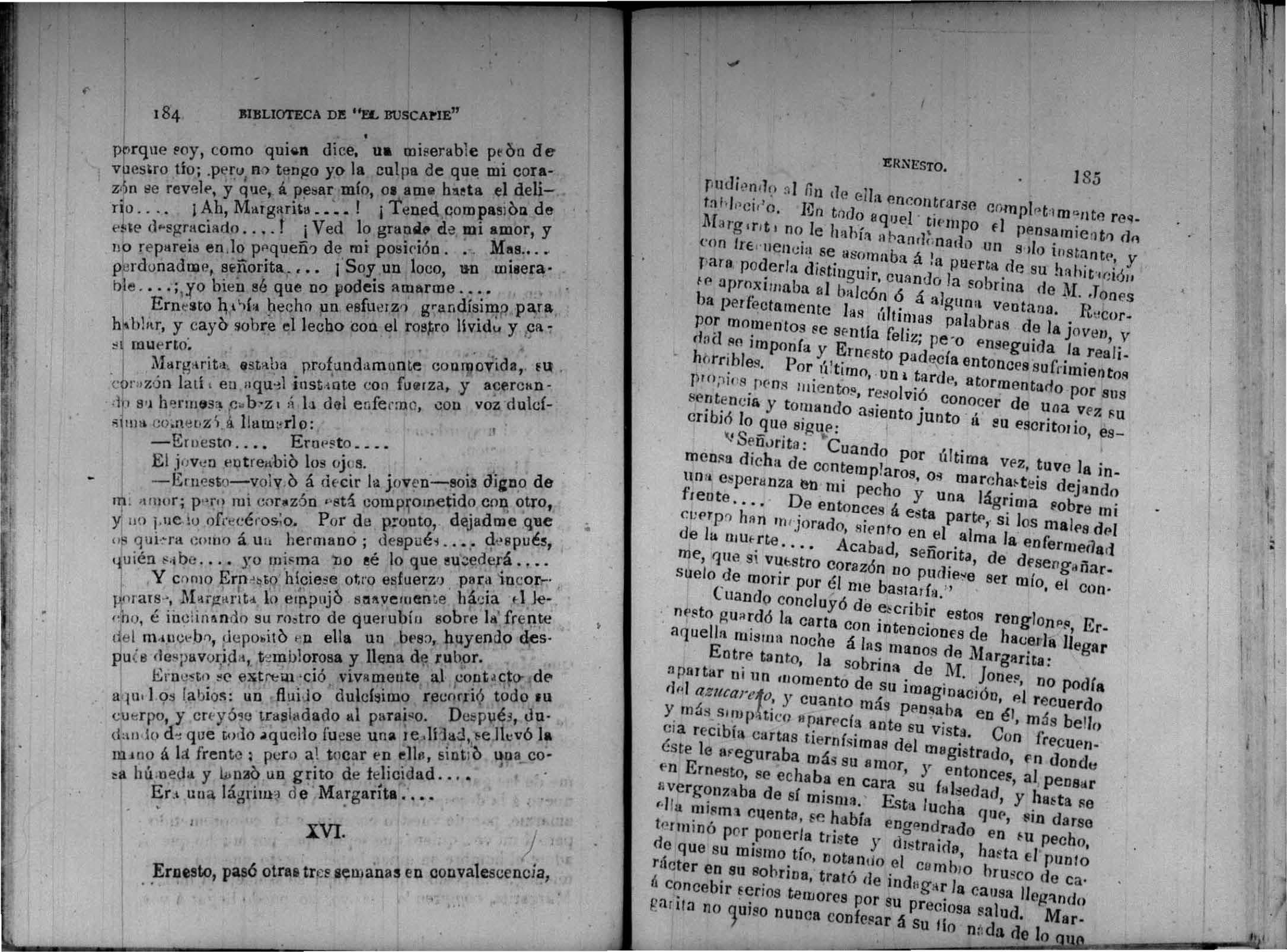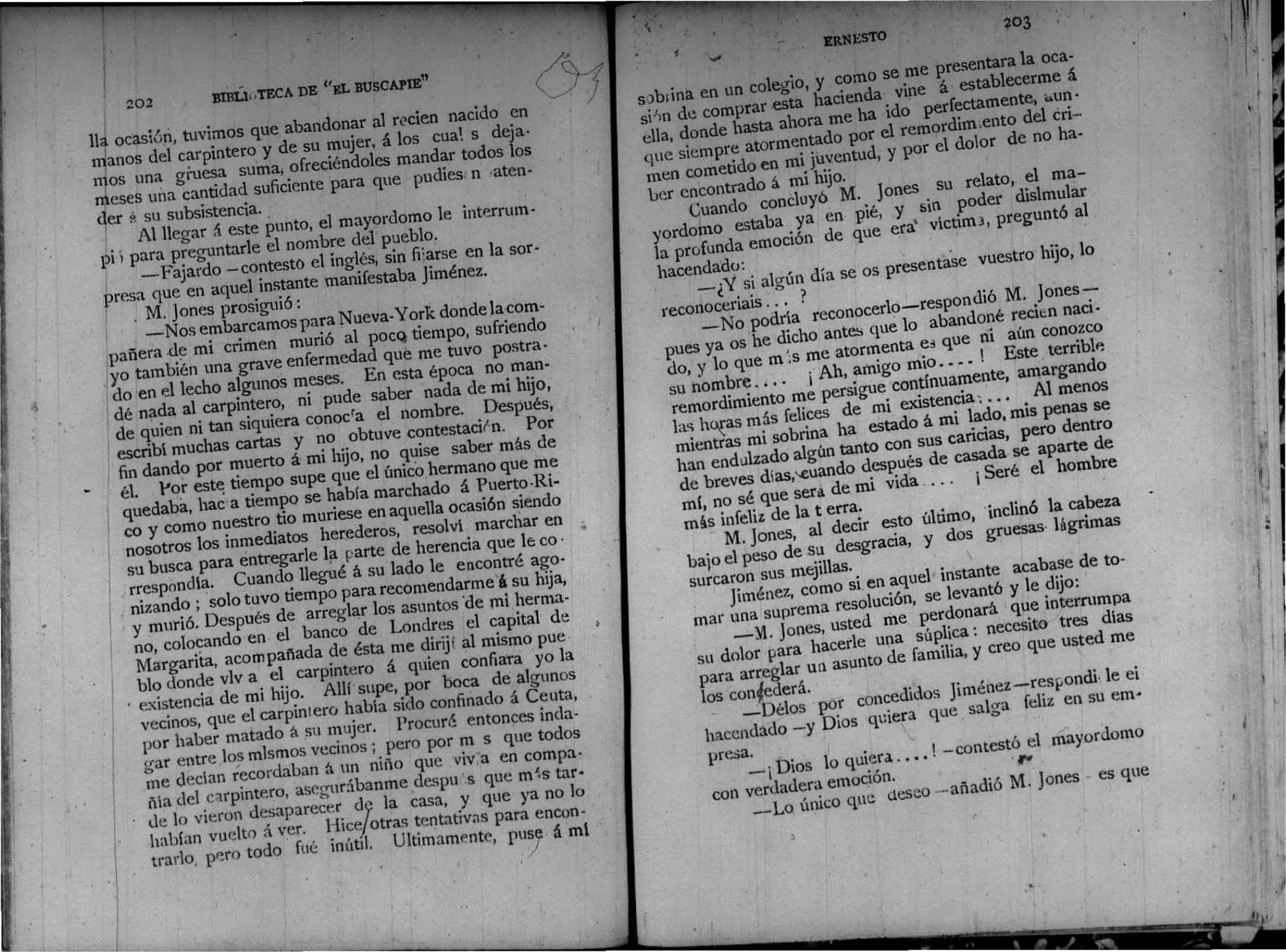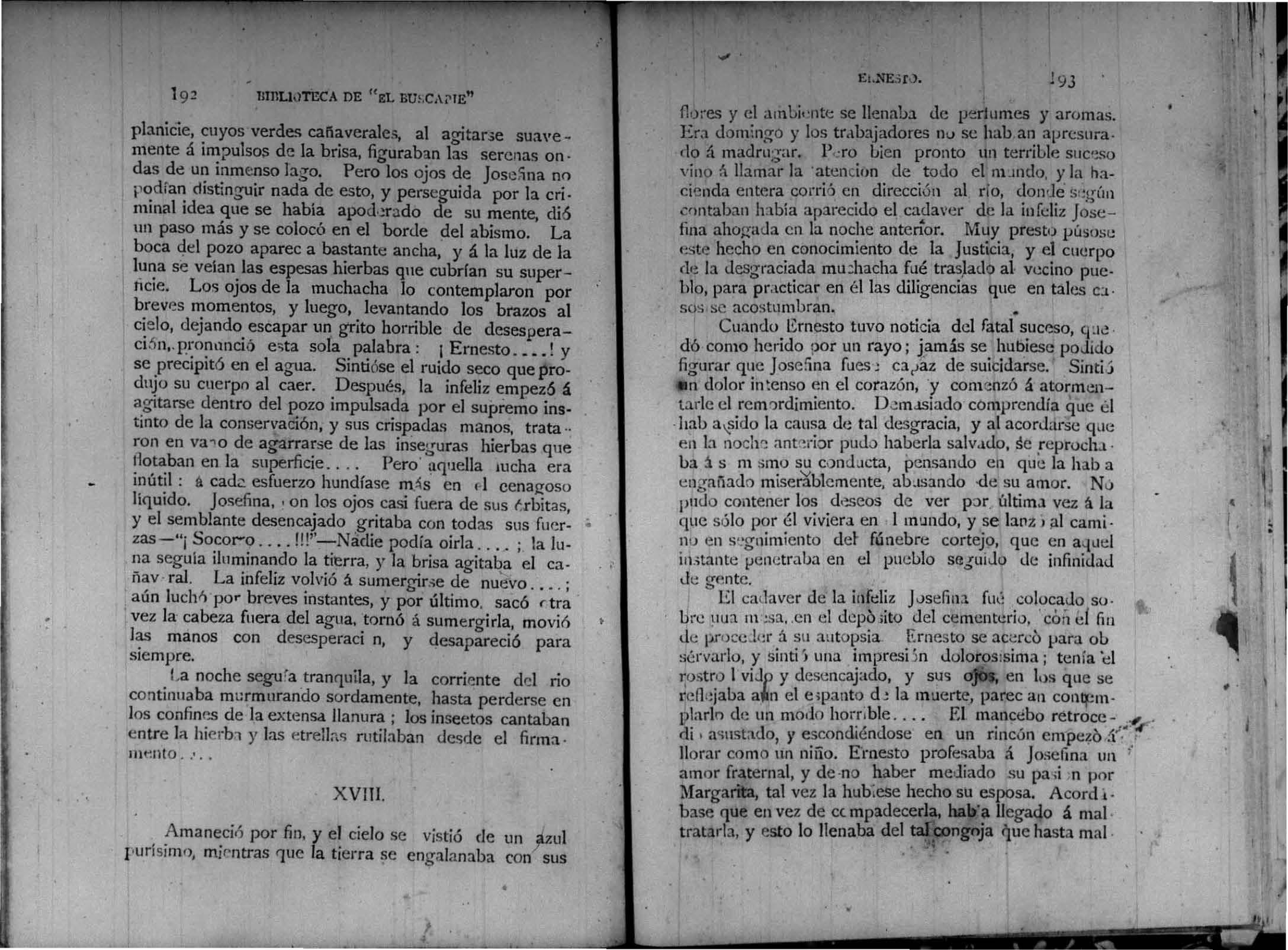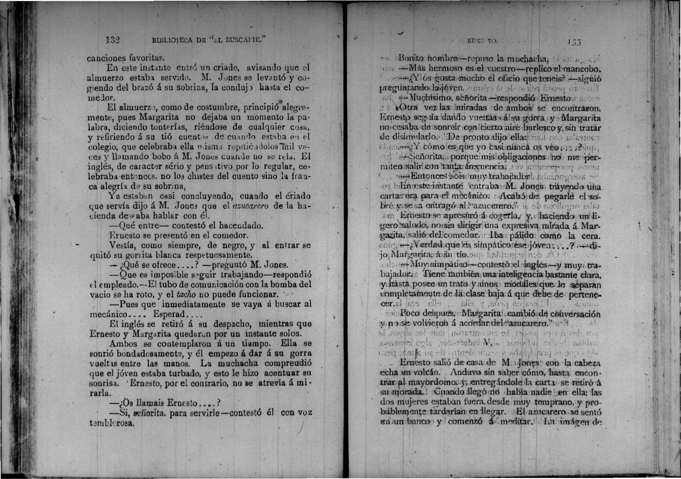 Una tarde del mes de Junio, el doctor Duena visitaba :\ Ja madre de Miguel, enferma, 11 la sazón. Aque\ dja estaba muy mejorada la enferma y el mi dico aprqvtj\1ran<k> las buenas d sposiciones de flnimo de Miguel, se entretuvo chfrlando un rato sobre cosas indife · rentes. El doct0r $ba de vena, y de u a en otra cosa la conver.Ía¡::ión req.yó en la noticia de la dram' ticamuerte;,itrº·-de la cual trajeron los periódicog no . ticias d .
