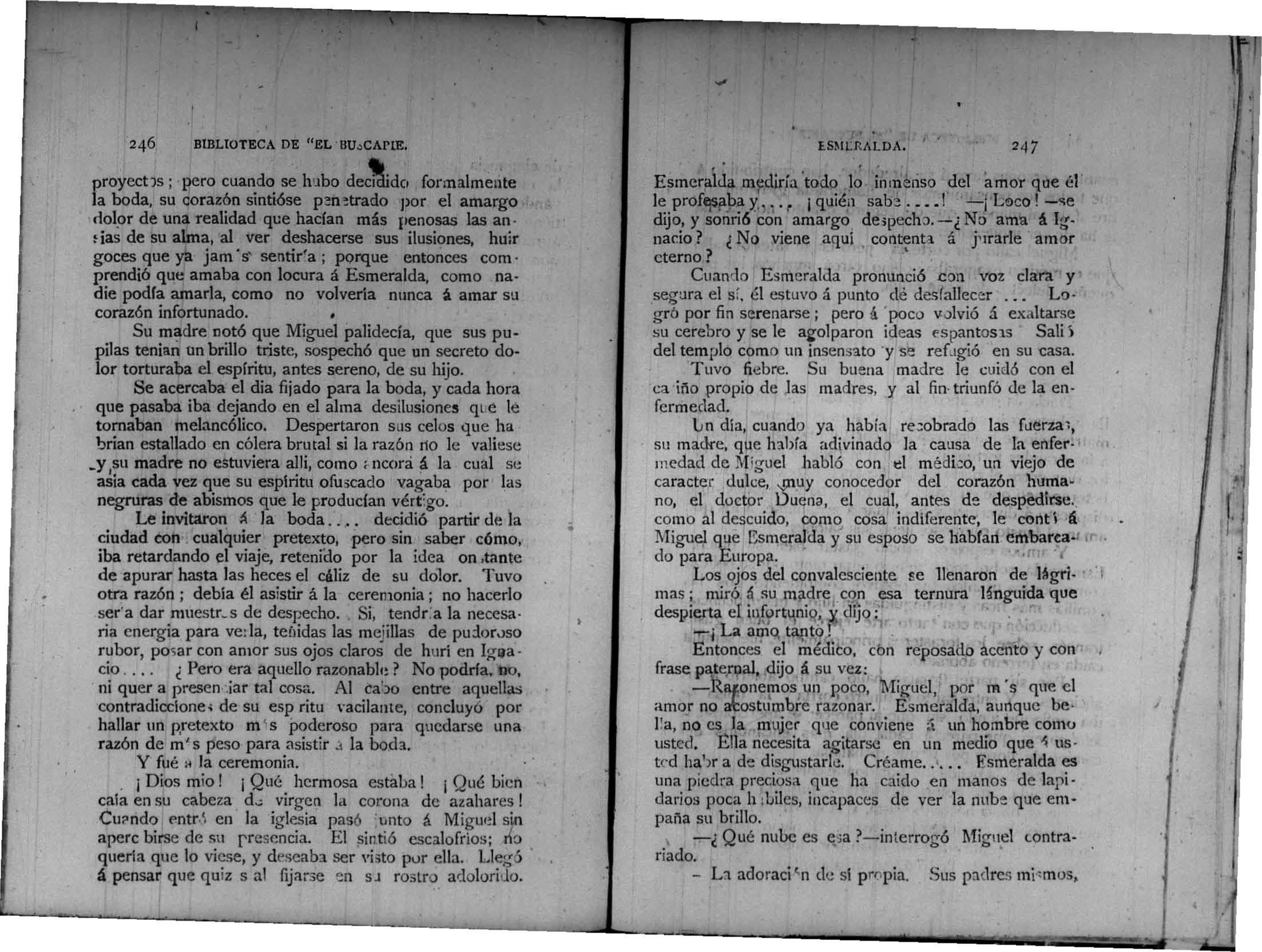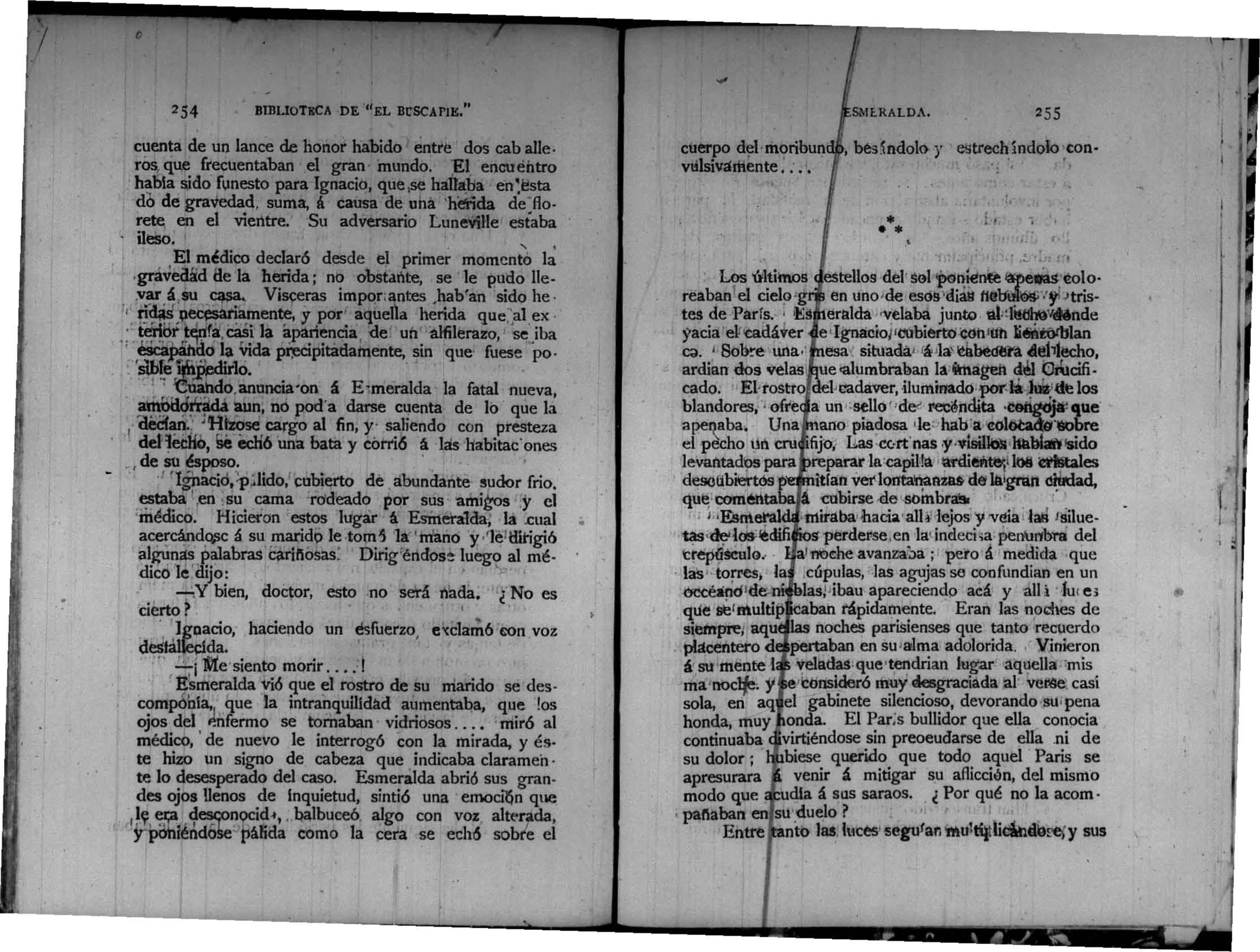 caBl> por cortesla ; pero en su interior hap6 que el midico exagi:raba1 corno otro11 muchos, los pe· quefto& defectos de Esmeralda.