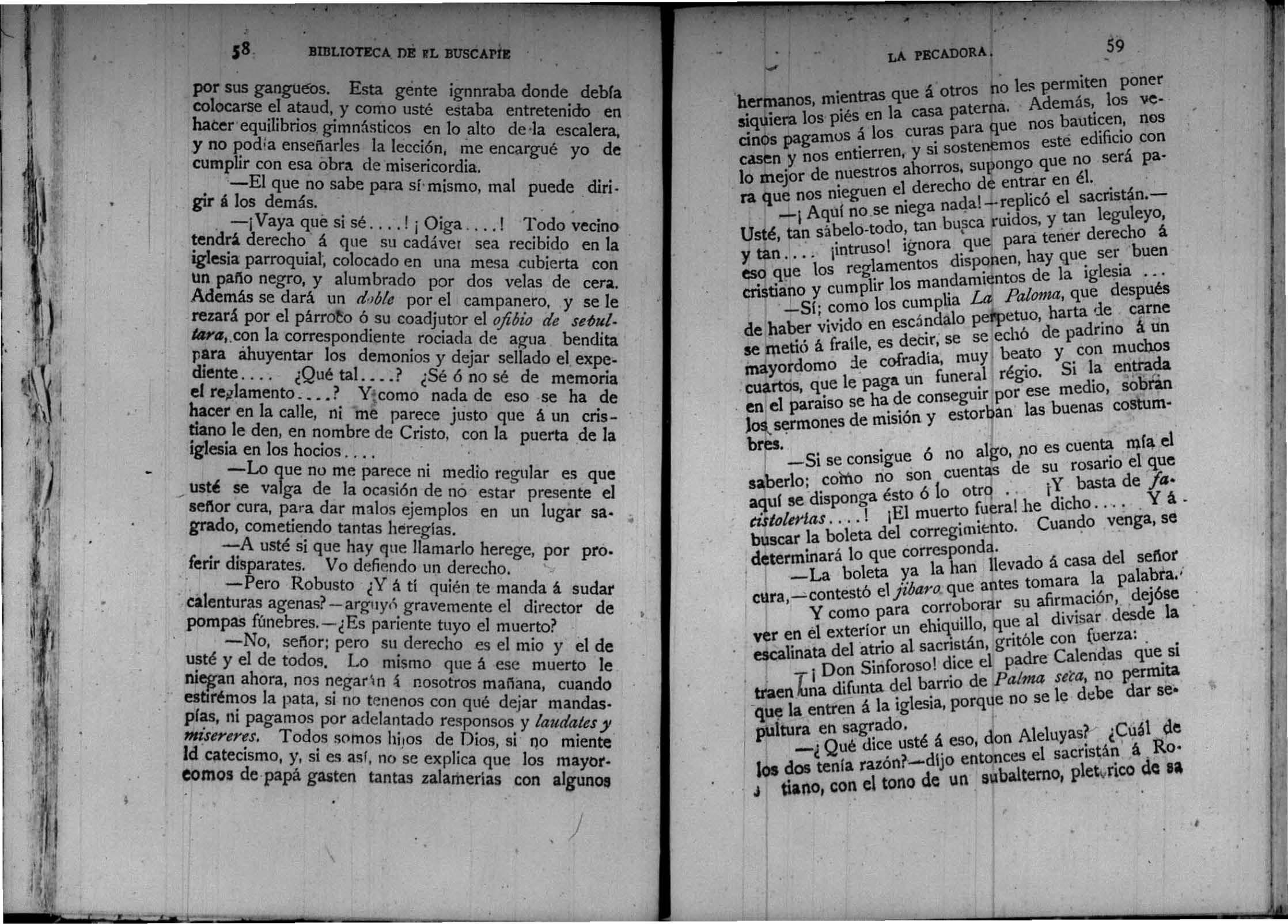 Fué diez meses <Í la r;;cuela, llegó á escrcbil cuatro 0 bi;as, y se aprenJi ·, el s:ilib:i ri°u como un perico: trnbaja en tocio lo r¡uc: se ofrc:cc y es muy mujd je s11 Si .regaño, no óo.1·/ira, es docil como una m a lva, y .. . manque yo no lo diga, lo que es como guap:i, es guapa. Agora dí, ¿cómo quieres que un padre como Dios manda deje que ronde á una jija de tan buenas celcunstancias · un picaílor , un pcldio, un calavera, un maraca que á todas dice lo mesmo r que :1 todas las engaña?