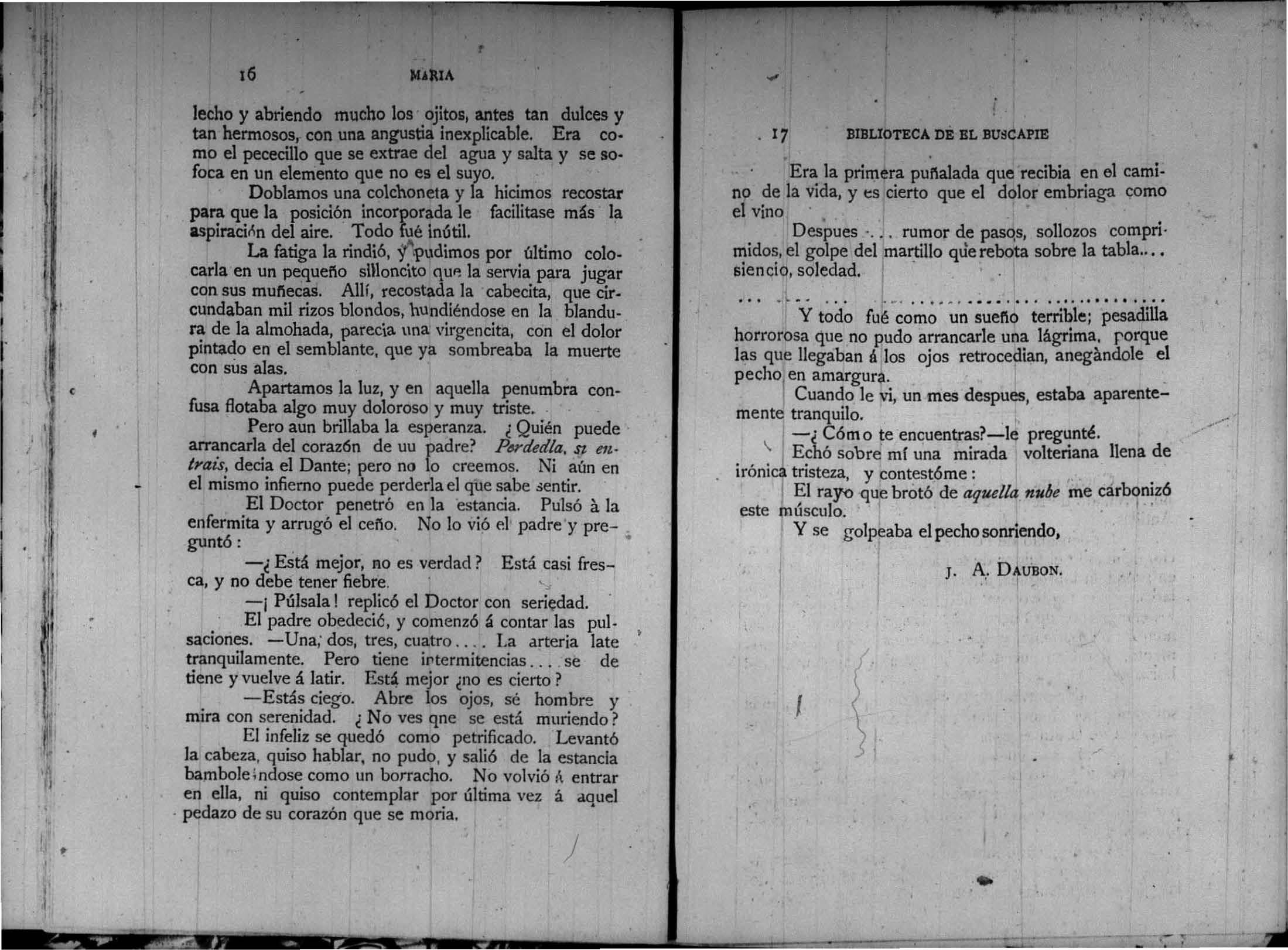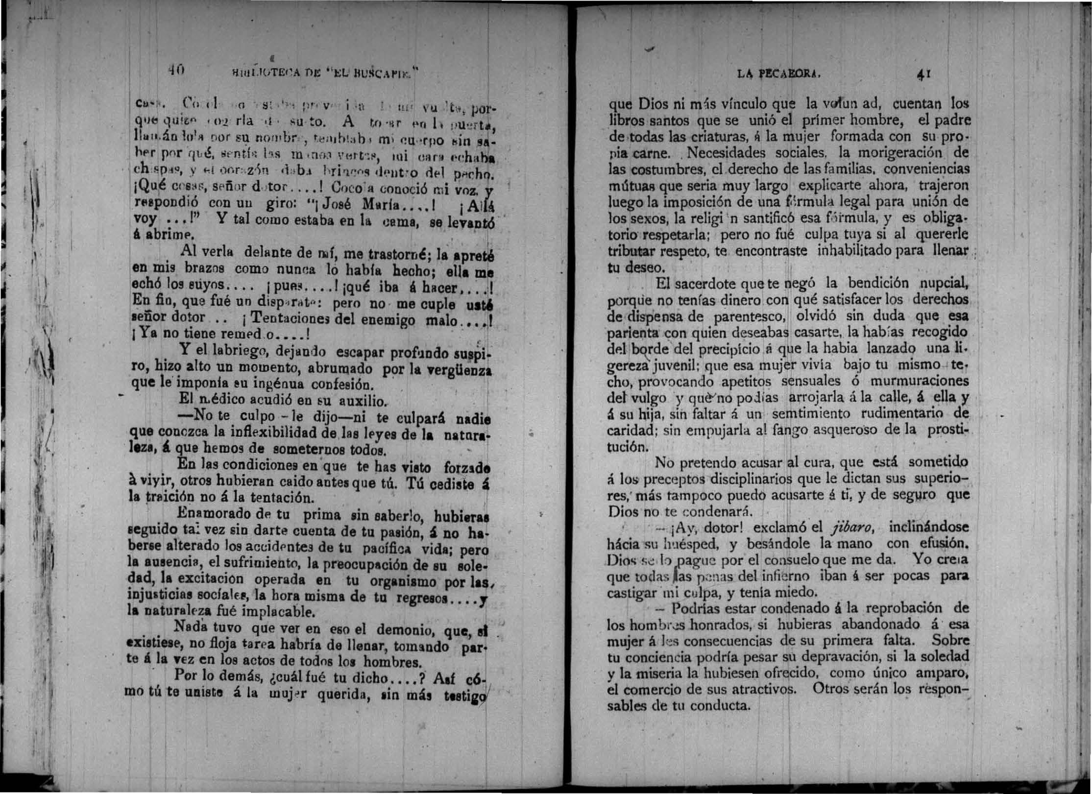-Hay que ver al médico. Consultémosle; • esto 1 no será nada. Y el pobre, trastornado, lleno de temor y de esperanza, tomó de la mano á su hija y la condu;o á casa del Doctor.