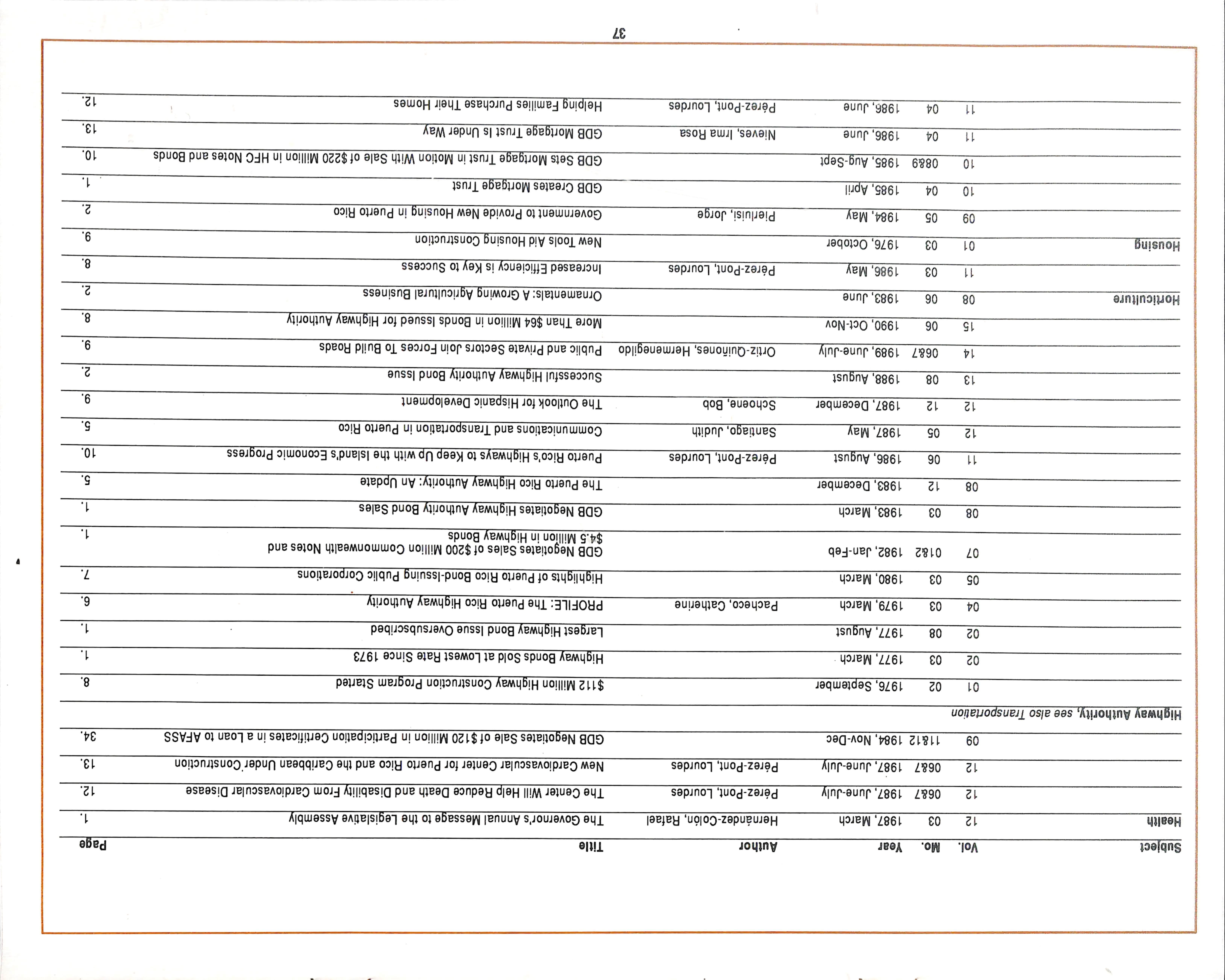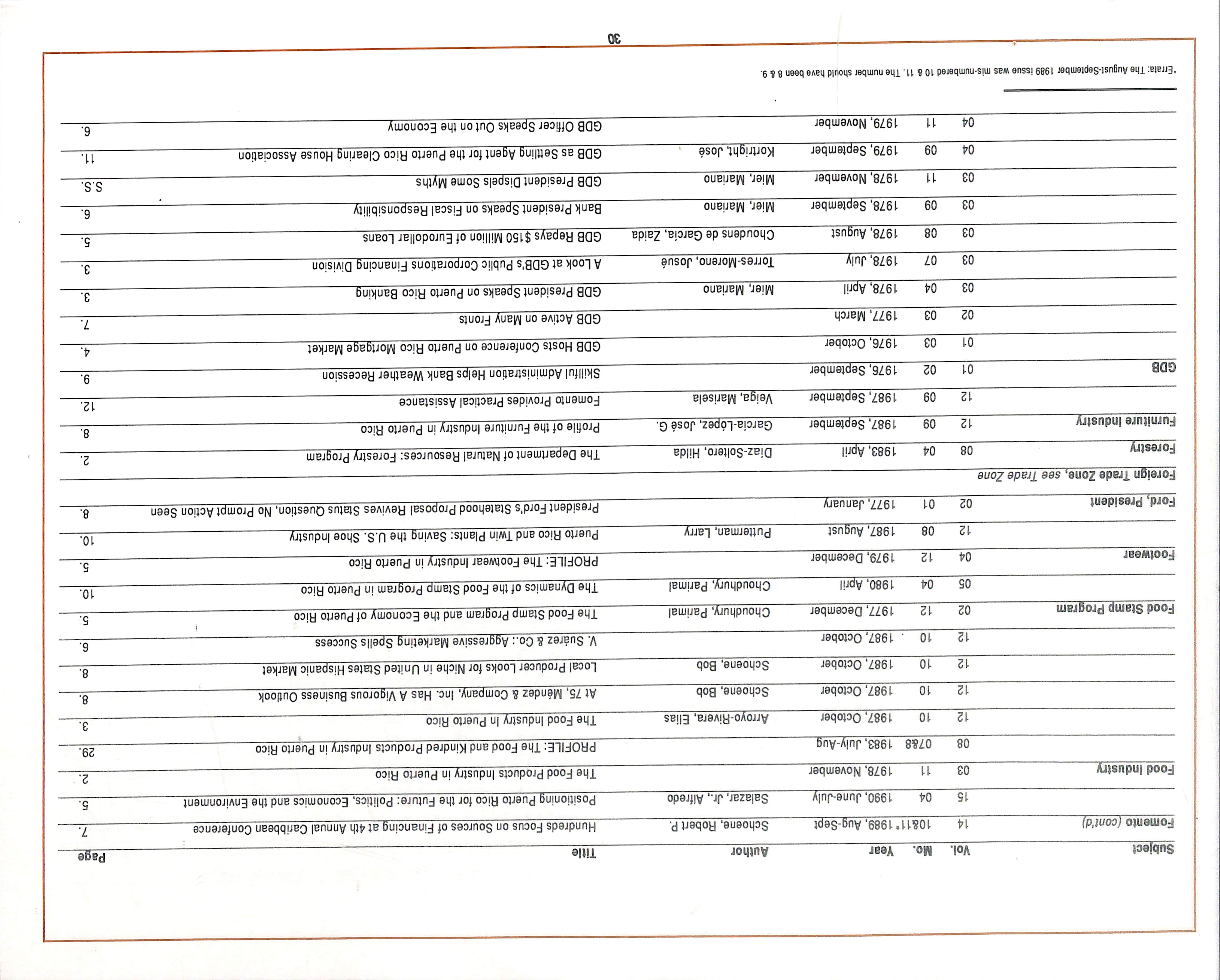 Vélez, Benito and Alma Rodríguez. "GDB Prívate Sector Financing," Voi. 9, November-December 1984, p. 25.