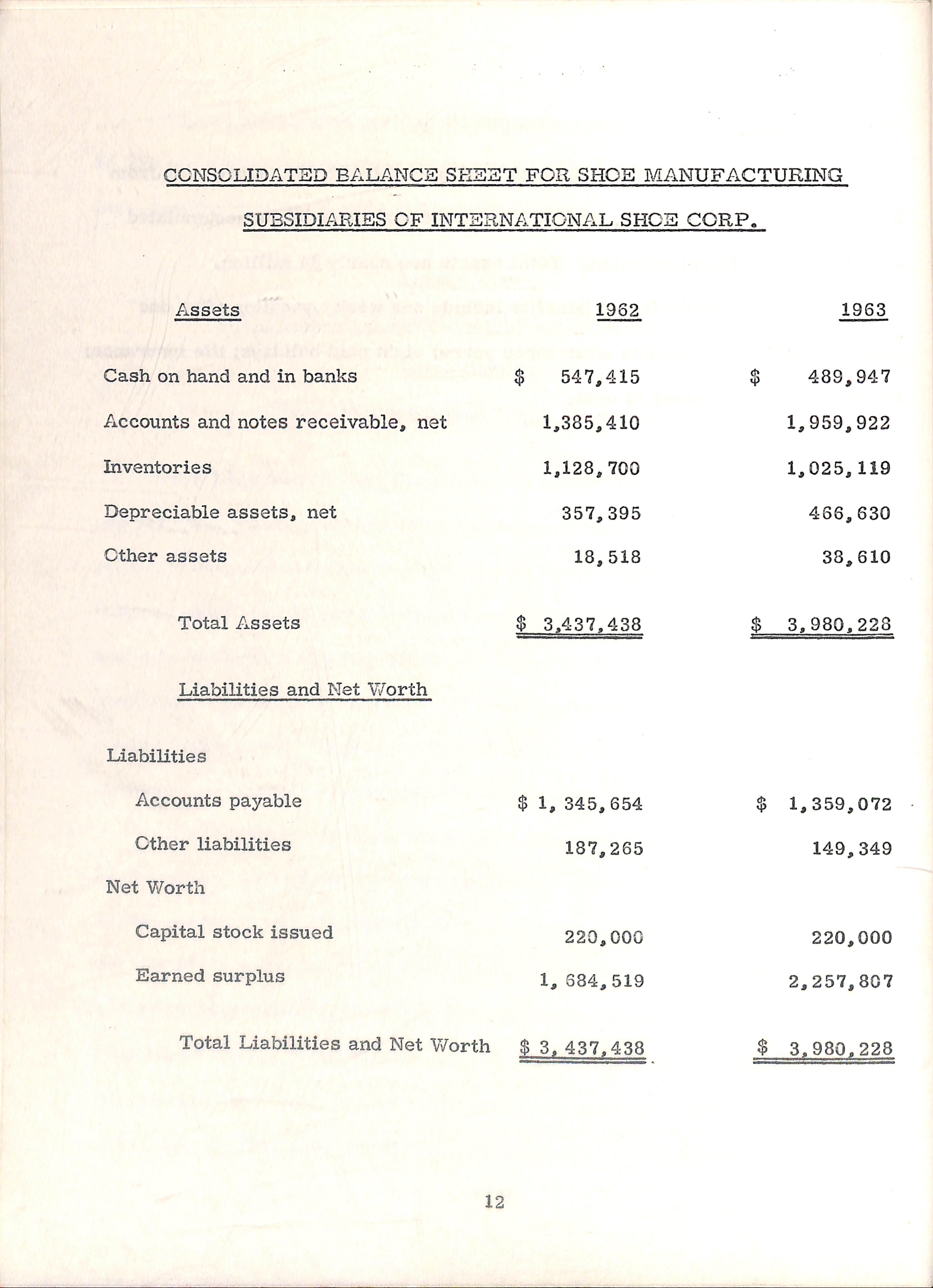 The International Shoe Corp. , Consolidated Balance Sheet for International»s Subsidiarles in Puerto Rico