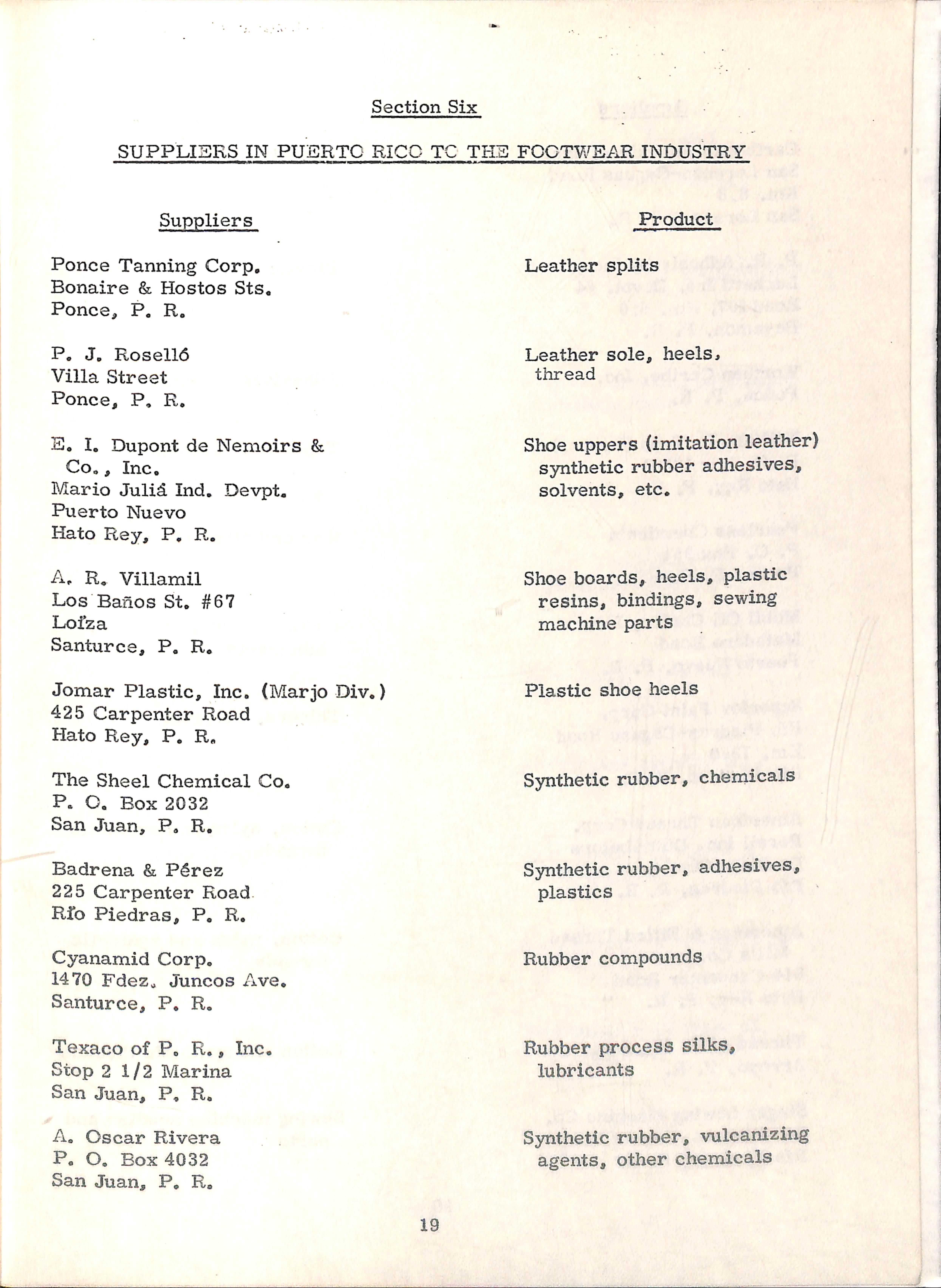 List of Suppliers in Puerto Rico to the Footwear Industry