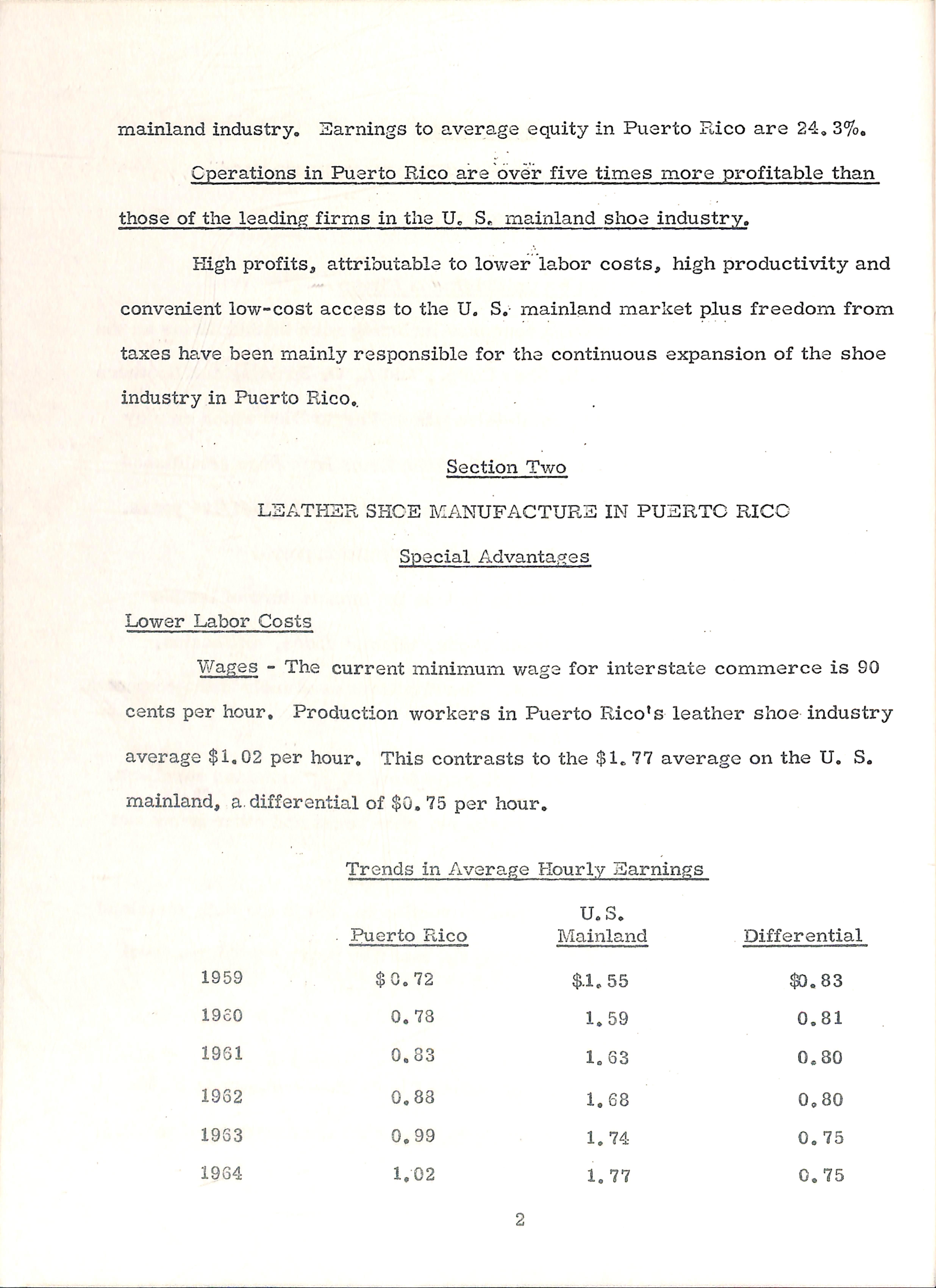 mainland industry. Earnings to average equity in Puerto Rico are 24,3%, Cperations in Puerto Rico are ovér five times more profitable than those of the leading firms in tlie U, S, mainland shoe industry.