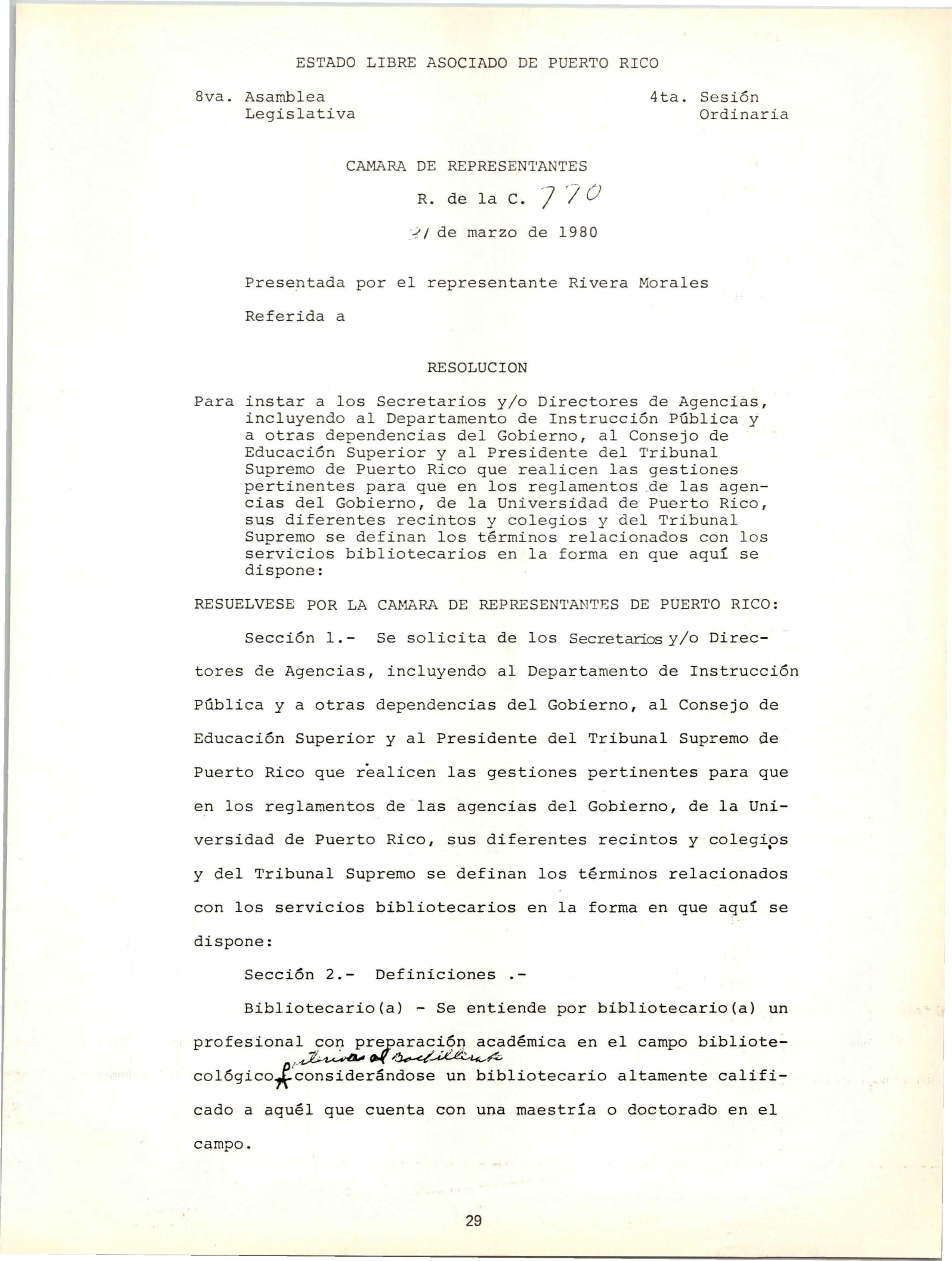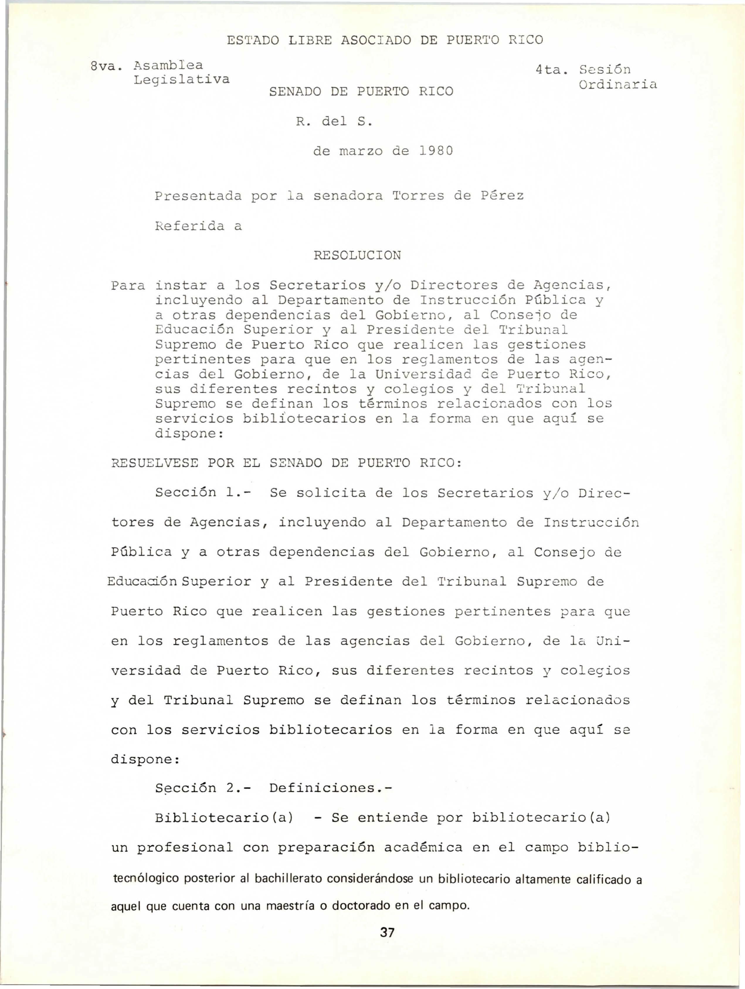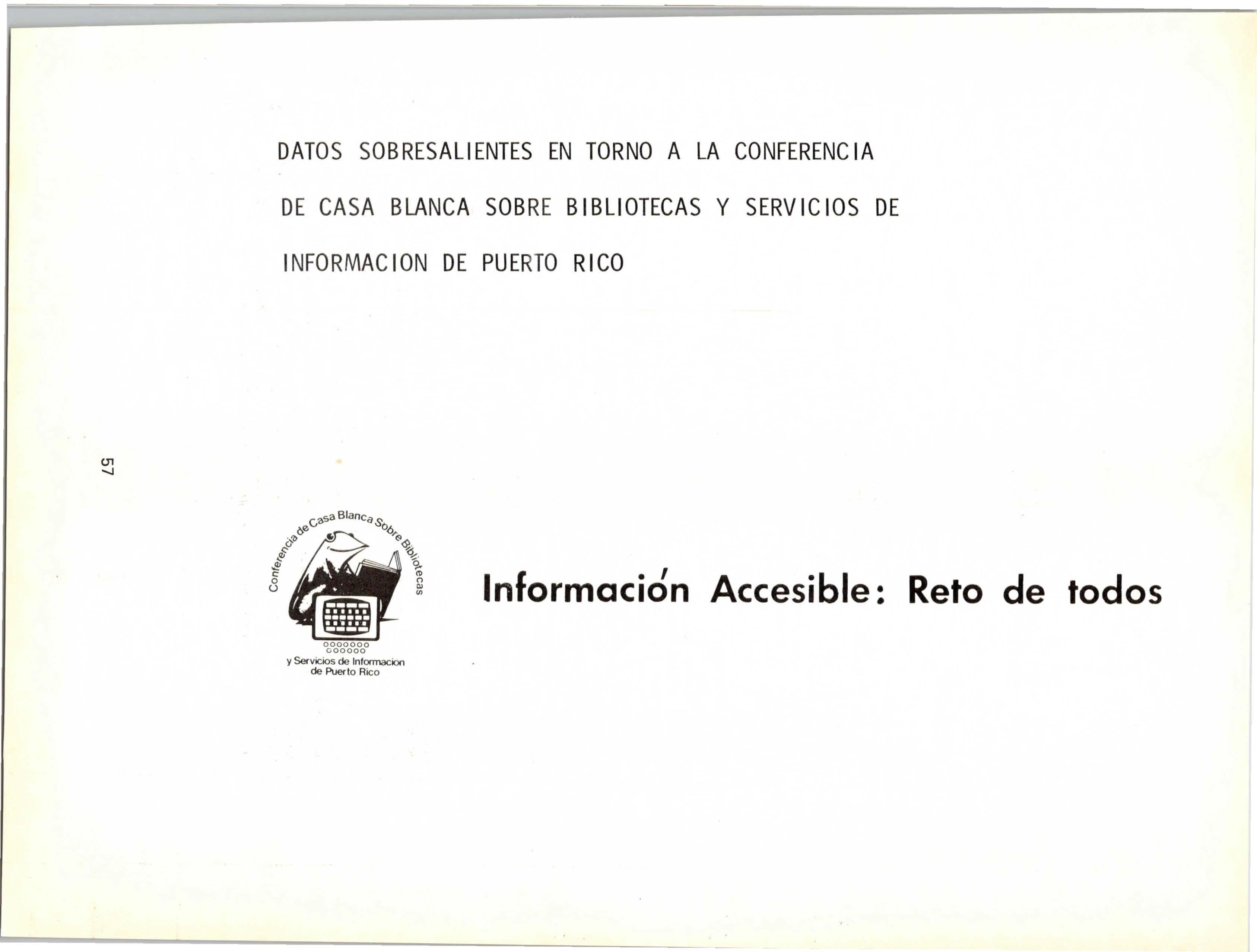 te d e qu r: d e ben m ejorarse los servicios bibliotecarios en Puerto Rico. para lo cual se han visto realizados algunos esfuerzos, pero ur ge una legislaci6n es p ecifica que c ubra las bibliotecas esco lares, publi cas, academicas y gubernamentales, de la misma manera que se tienen leyes para estos prop6sitos e n Estados Unidos.