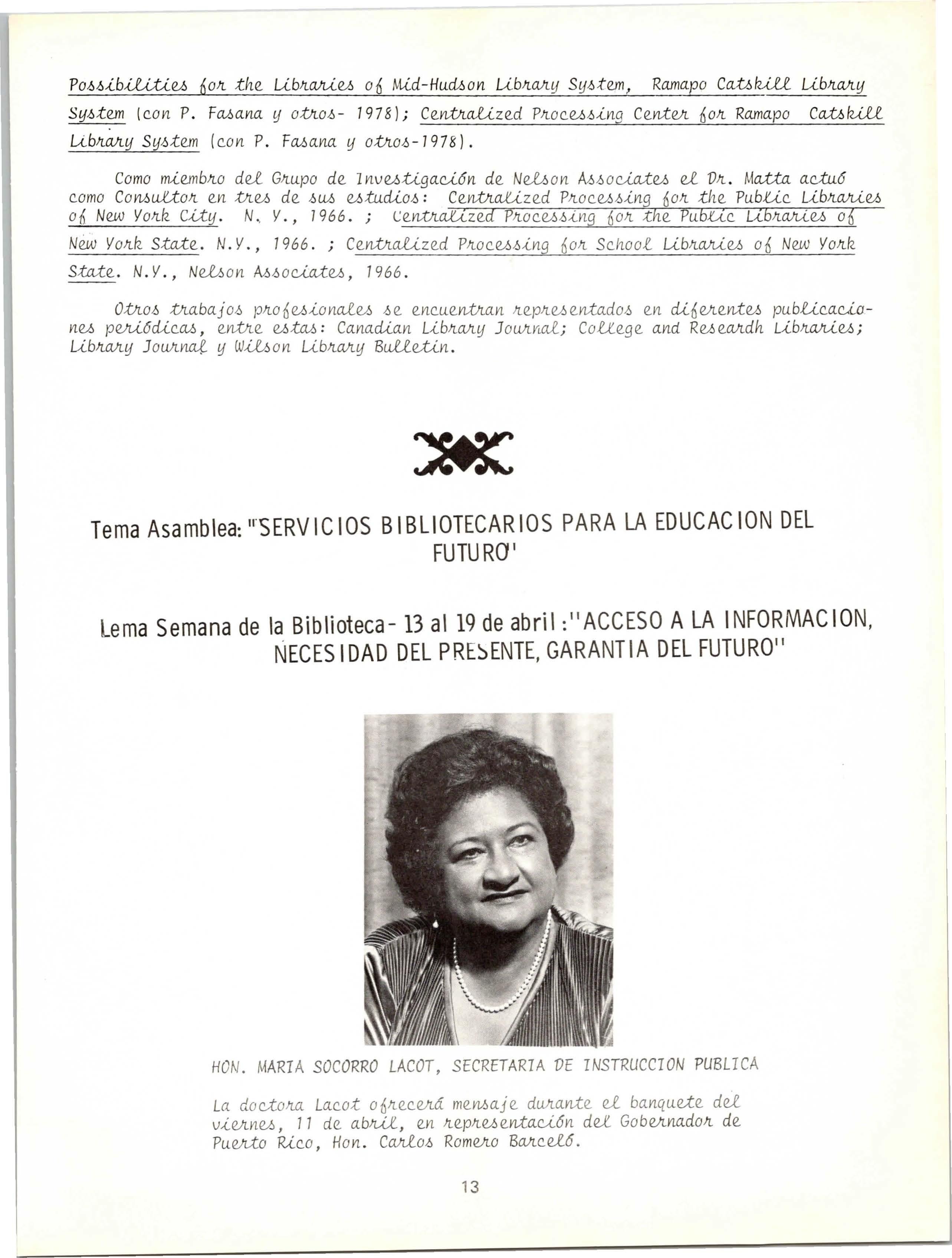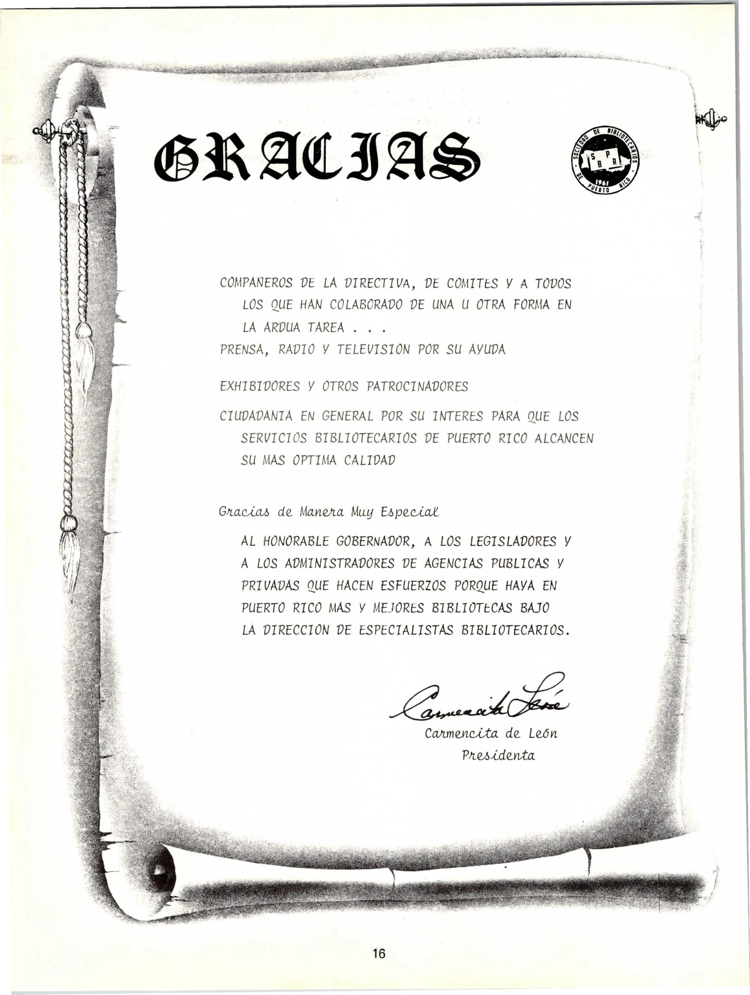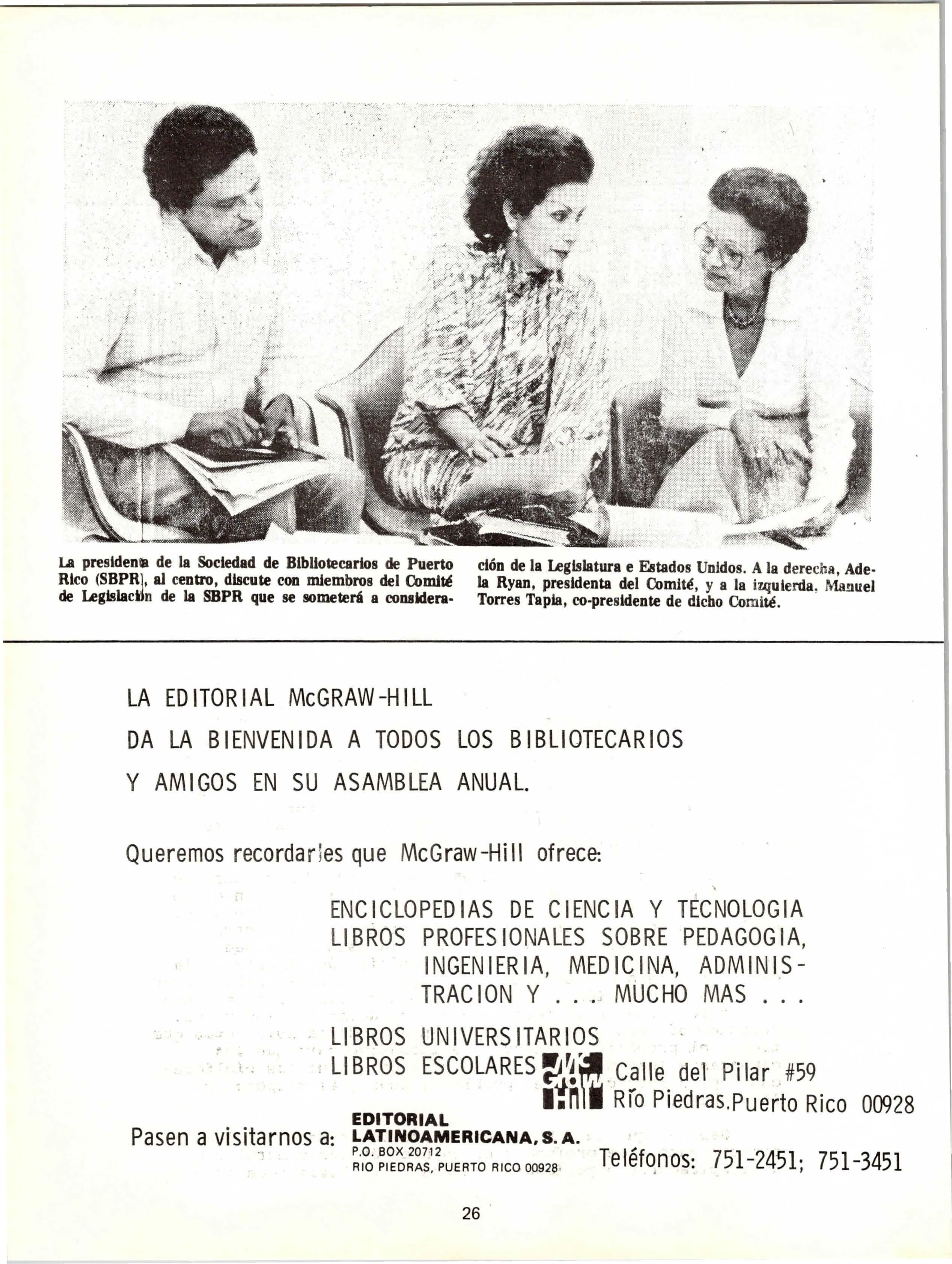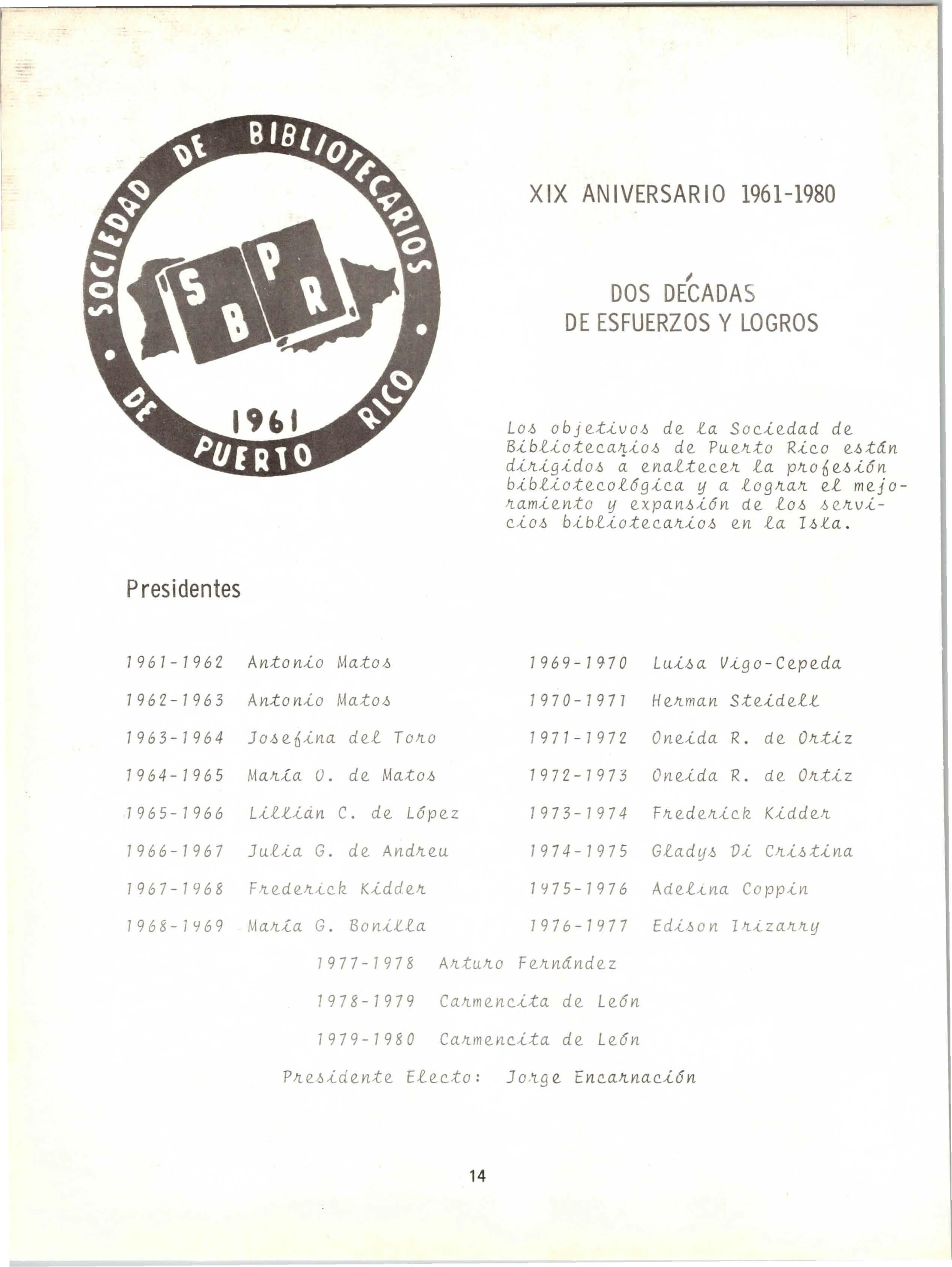 La Sociedad de B ibliotecarios de Puerto Rico, bajo la actual presidencia de la pro-