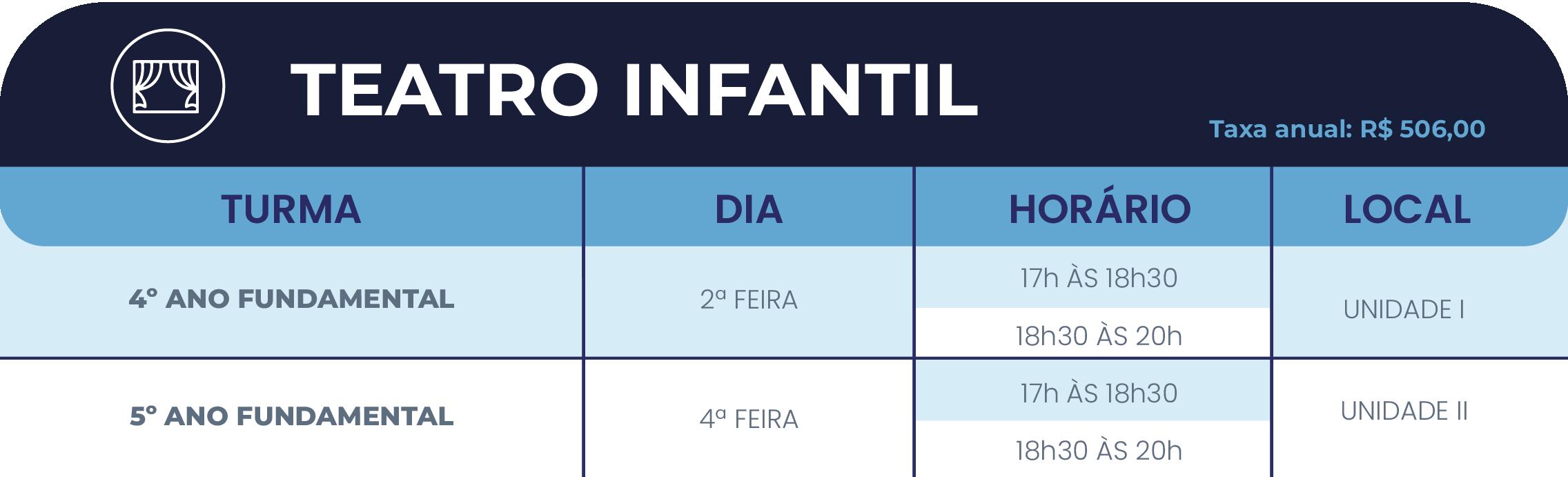 • As oficinas de Teatro terão uma cota de 08 vagas (por turma) para alunos que já cursaram o nível anterior (nesse caso falar diretamente com o professor)