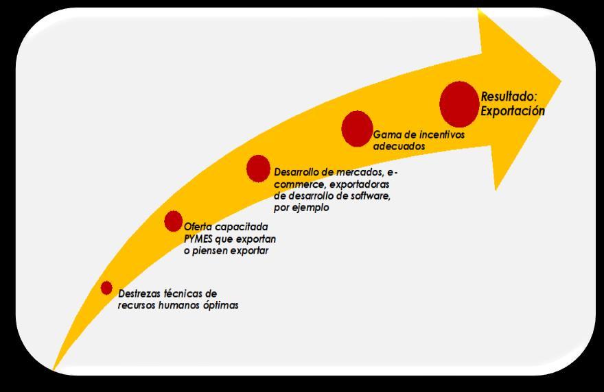 2. En el caso de las exportaciones de servicios, adoptar un énfasis particular a aquellos intensivos en conocimiento relacionados a servicios TIC. En estos sectores hay una demanda alta en servicios tecnológicos en donde las empresas locales tienen capacidades ya establecidas.