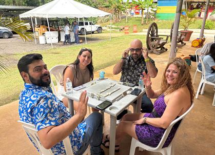La tarde transcurrió en un ambiente lleno de camaradería, confraternización y espíritu festivo, donde la alegría y el compañerismo fueron protagonistas. Los asistentes disfrutaron de un exquisito menú típico puertorriqueño, que incluyó alcapurrias, bacalaítos, comida criolla y el emblemático lechón asado a la vara, preparado al estilo tradicional, evocando nuestras raíces culinarias.