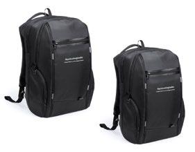 Elegante mochila de negocios resistente al agua en nylon de alta calidad. Con compartimento interior con salida USB para conexión de powerbank -no incluido-, incluye cable micro USB de 1 metro de largo para total comodidad en la carga de cualquier dispositivo móvil. Con compartimento interior acolchado para ordenador portátil de hasta 15 pulgadas y multitud de bolsillos interiores y exteriores. Cintas de hombros y espalda con acolchado ergonómico.