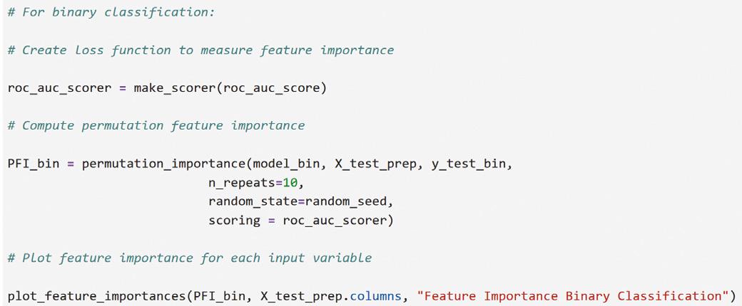 The model achieves its highest discrimination for the low and very much classes, both with an AUC of .93, while the somewhat and quite a bit classes have AUC values of .82 and .81, respectively (Figure 29). Finally, for the permutation feature importance we use the AUC as figure of merit and use the one-versus-rest approach. Thus, we will have four feature importance plots, one for each class. We set the average parameter to none and the “multi_class” parameter to