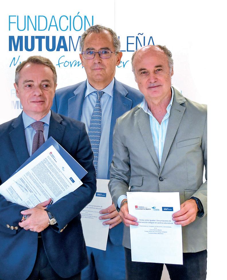 El Colegio ha firmado un convenio de colaboración con la Fundación Mutua Madrileña y la Vicepresidencia y Consejería de Educación y Universidades de la Comunidad de Madrid para llevar a cabo el proyecto "Acoso entre iguales", una iniciativa que tiene como objetivo mejorar la intervención con adolescentes en contextos educativos, complemento al conjunto de estrategias que ya están puestas en marcha en esta materia.