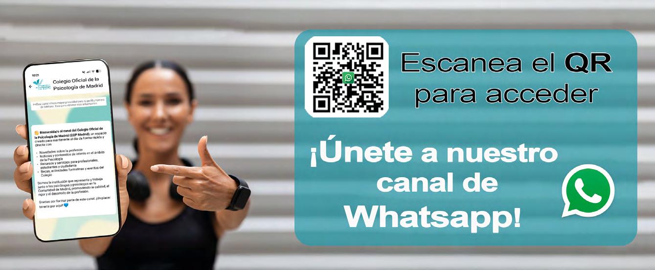 El Colegio Oficial de la Psicología de Madrid pone en marcha su canal de WhatsApp, un nuevo espacio de comunicación pensado para acercar de forma directa, ágil y accesible la información más relevante sobre la actividad colegial y la Psicología a todas las personas interesadas.