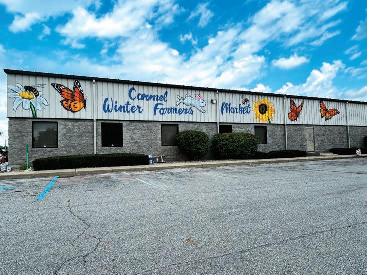 “The CFM committee arranged everything and made it easy for me [to work], which was really nice,” Muck shared. “The collective call for the murals is why I stop here [central Indiana] so often. ‘Flower Alley’ in Broad Ripple started because a bunch of neighbors came together, which made it possible for me to put aside some of my larger projects and spend time doing these murals for private homeowners and smaller businesses. I did murals for three people before the [farmers] market mural. It’s fun, and I love driving through this part of the country.”