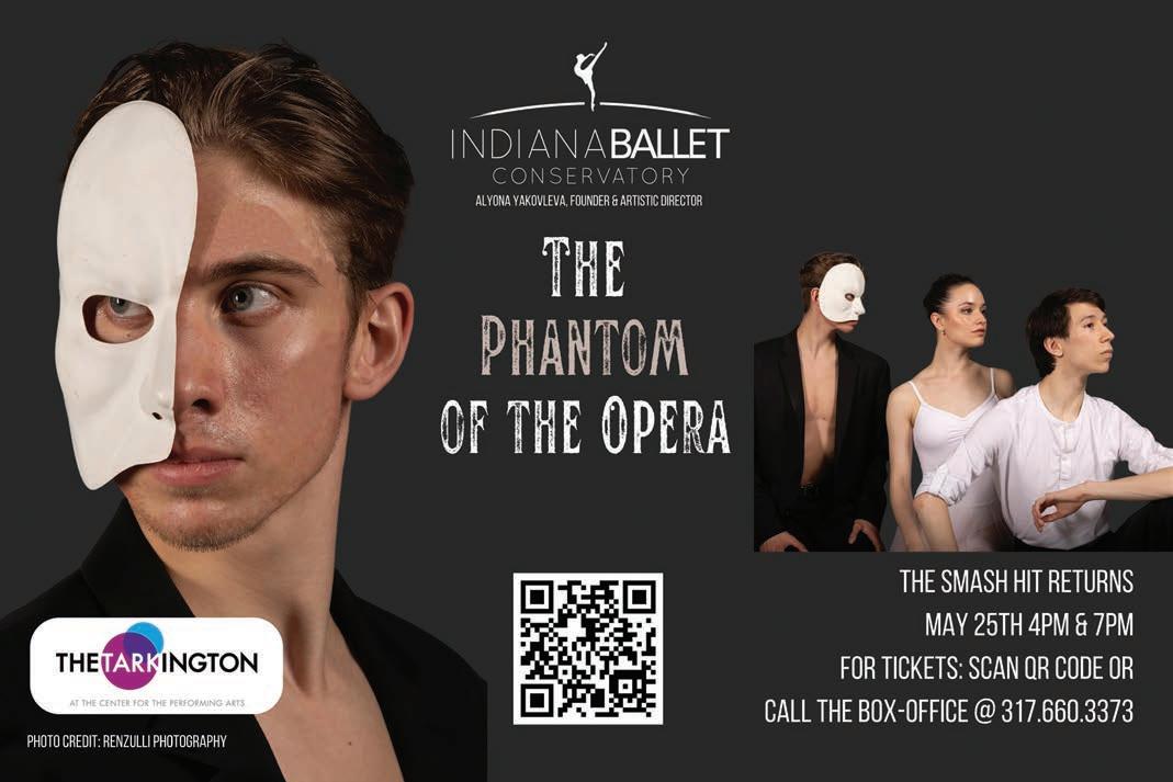 Get ready for the triumphant return of “PHANTOM OF THE OPERA” to Indiana! Mark your calendars for May 25 at The Tarkington in charming Carmel. Prepare to be swept away by this electrifying full-length story ballet, a brilliant creation by Alyona Yakovleva, the founder and artistic director of Indiana Ballet Conservatory. Purchase your tickets at thecenterpresents.org.