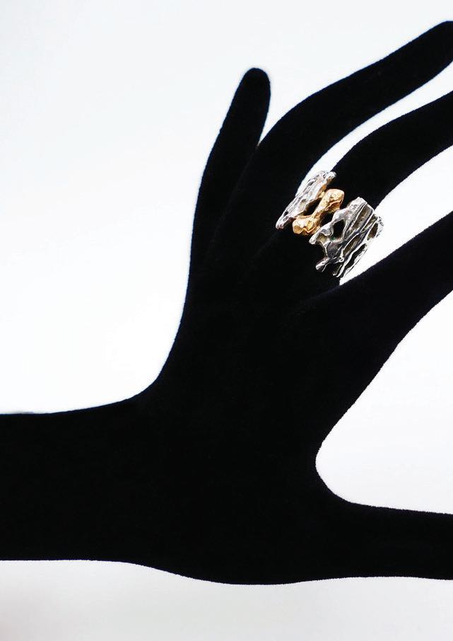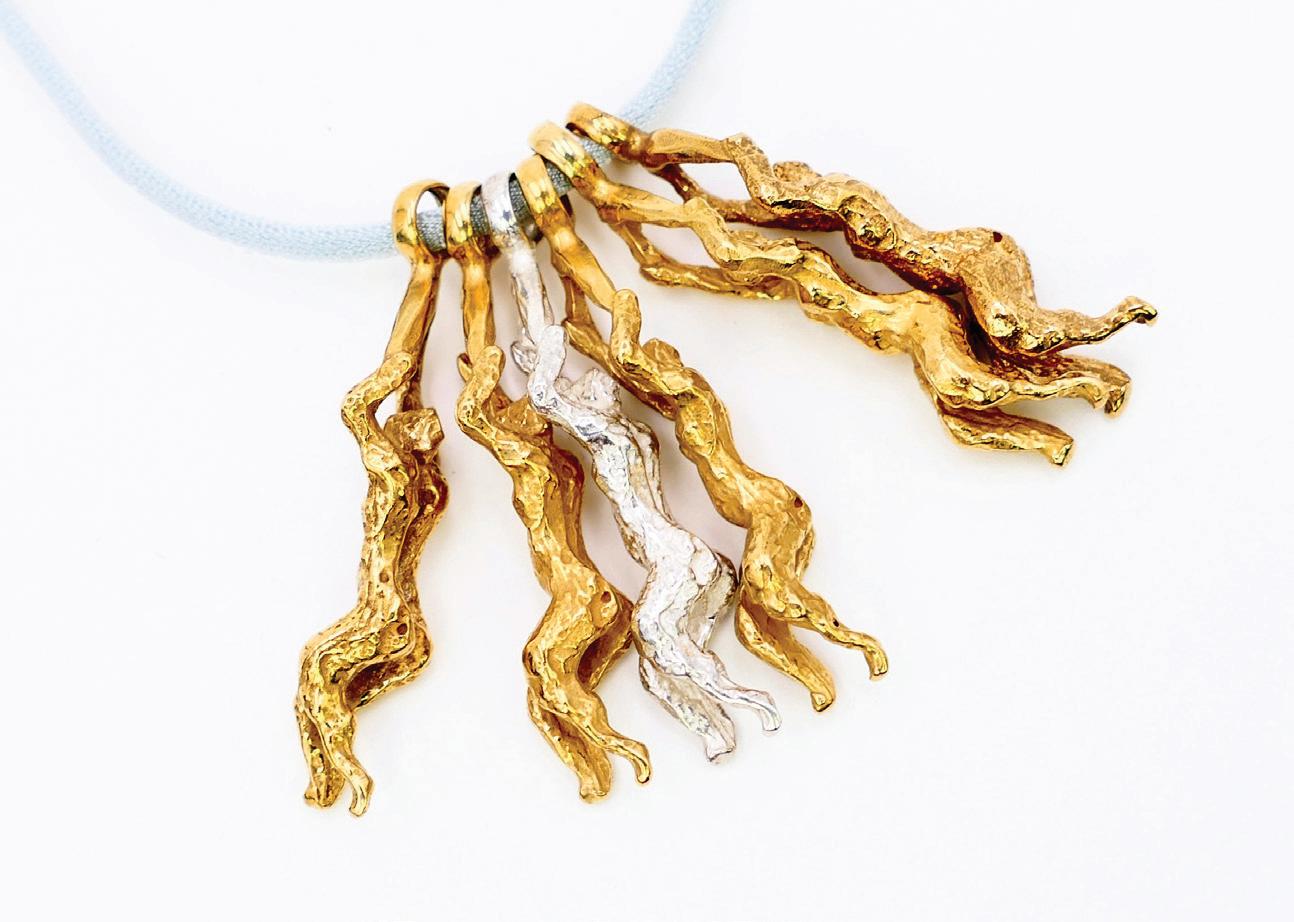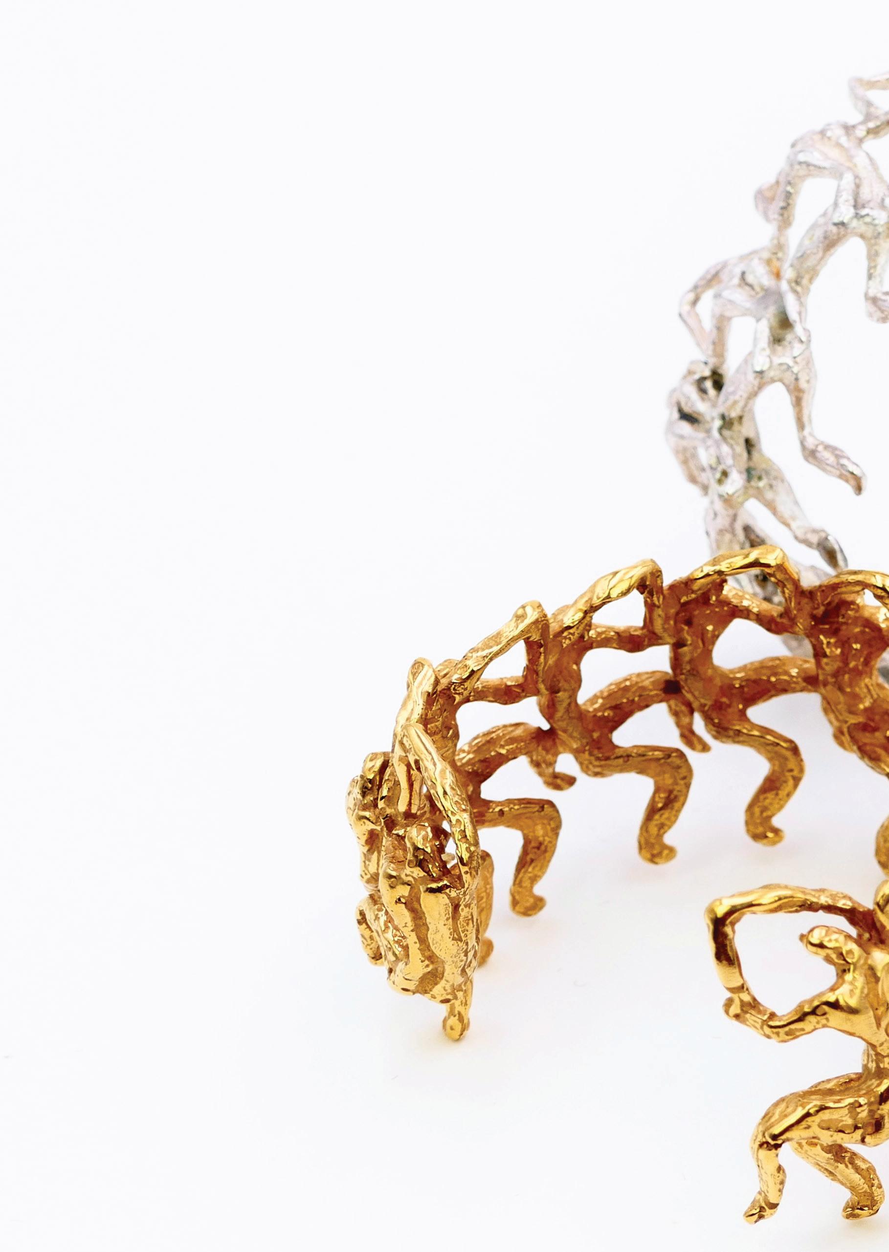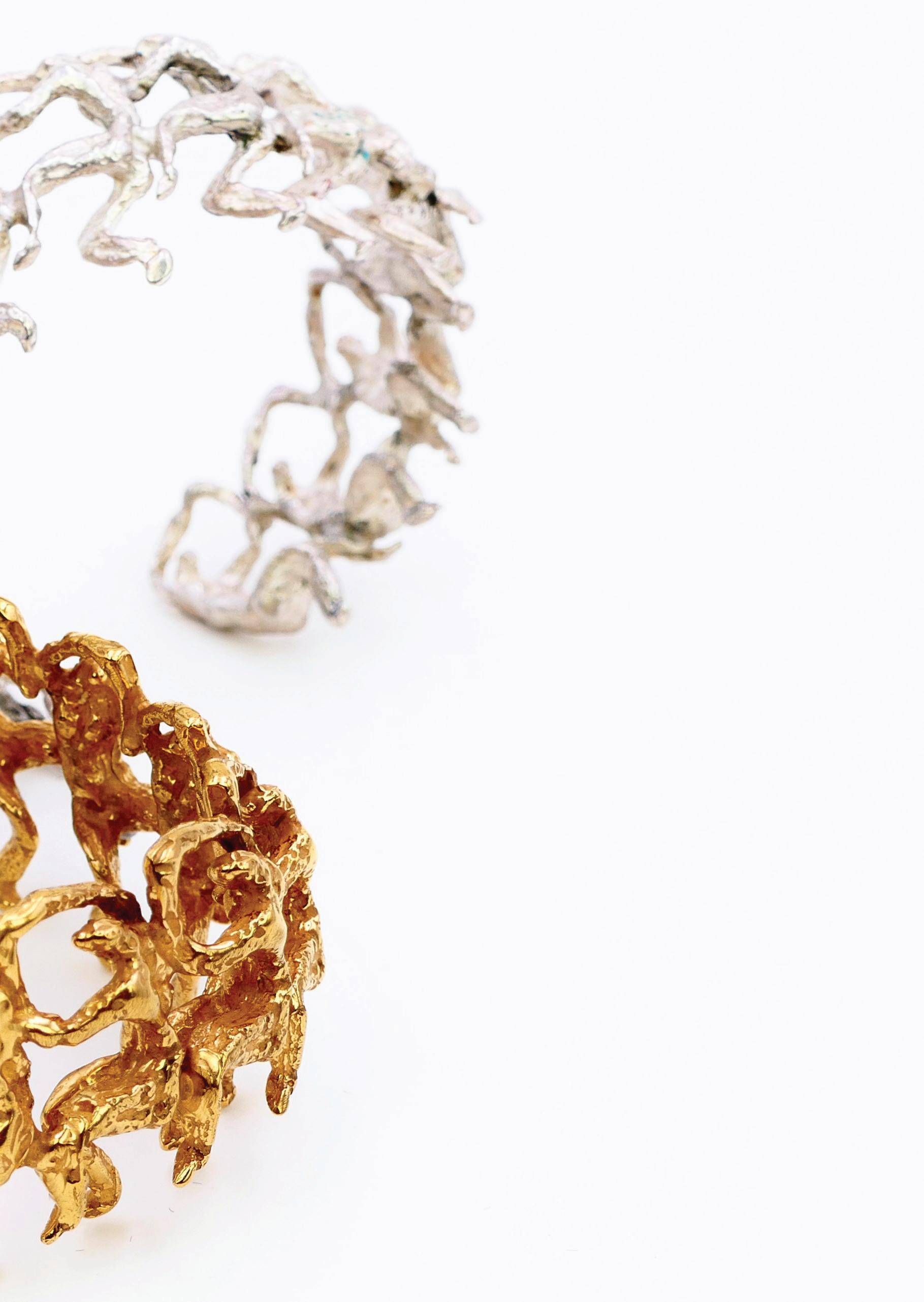 expands her work as a sculptor to devote herself to jewelry creation, it is to engage with the body as closely as possible — that sensitive territory where art becomes ornament without mediation. Here, the body is both subject and object, a space of expression and resonance, where material harmonizes with the skin, the breath, and movement.