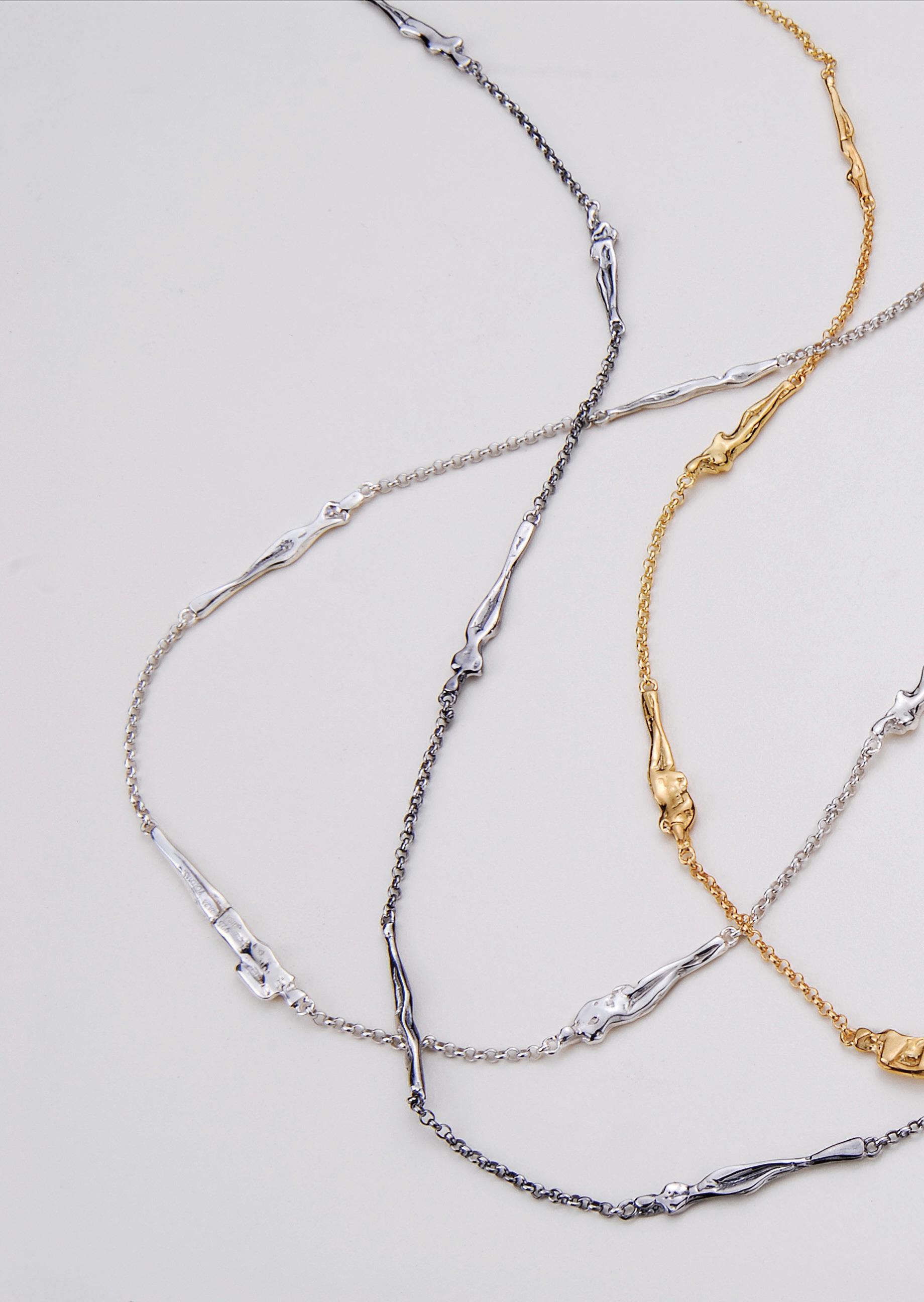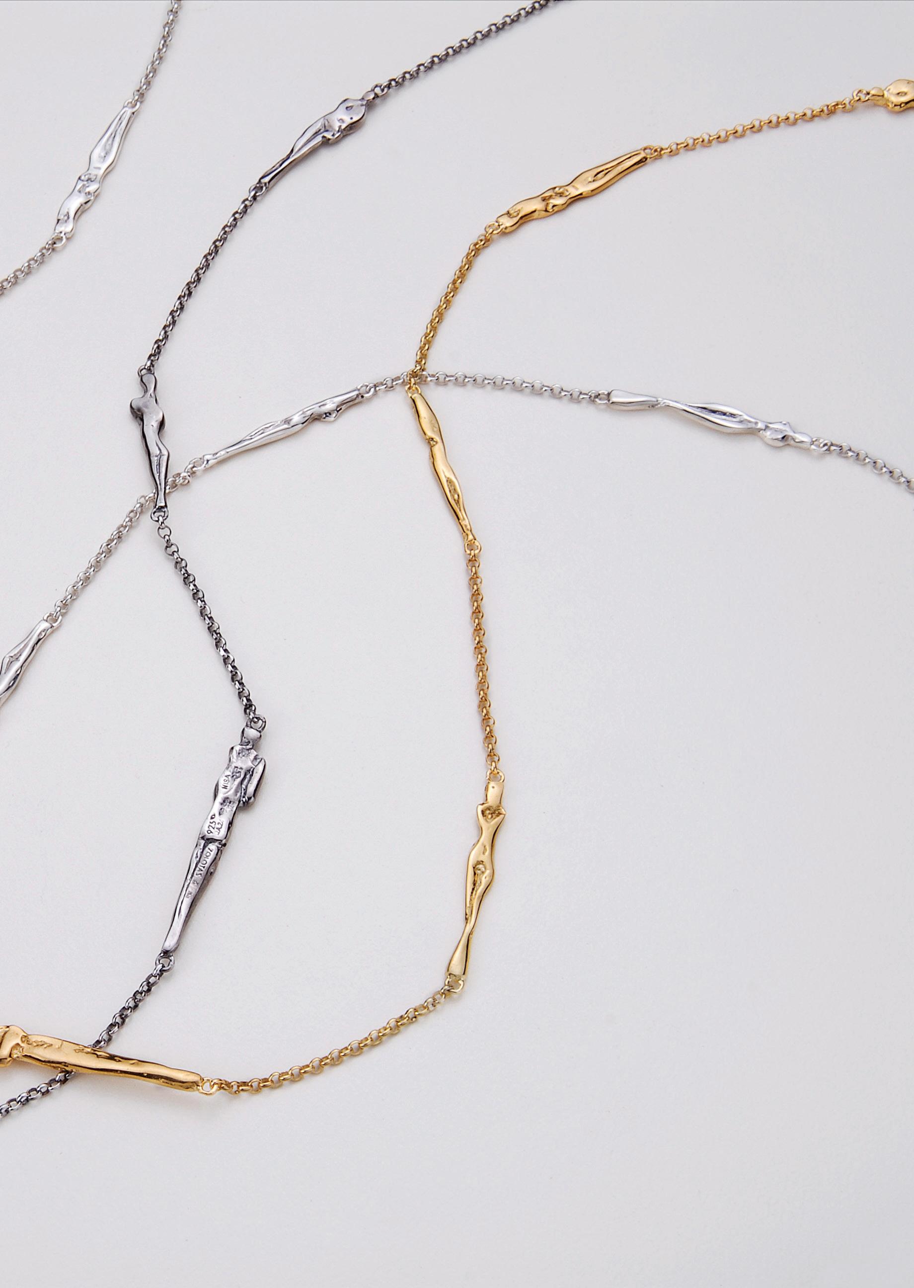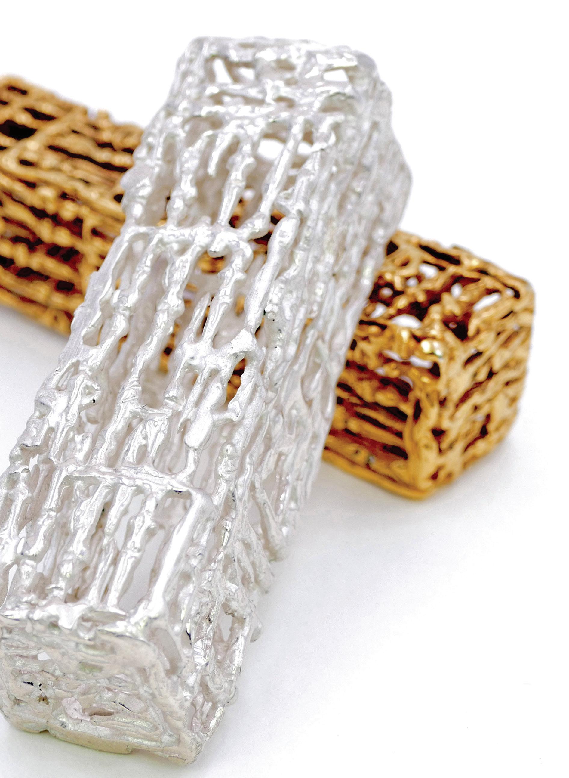 expands her work as a sculptor to devote herself to jewelry creation, it is to engage with the body as closely as possible — that sensitive territory where art becomes ornament without mediation. Here, the body is both subject and object, a space of expression and resonance, where material harmonizes with the skin, the breath, and movement.