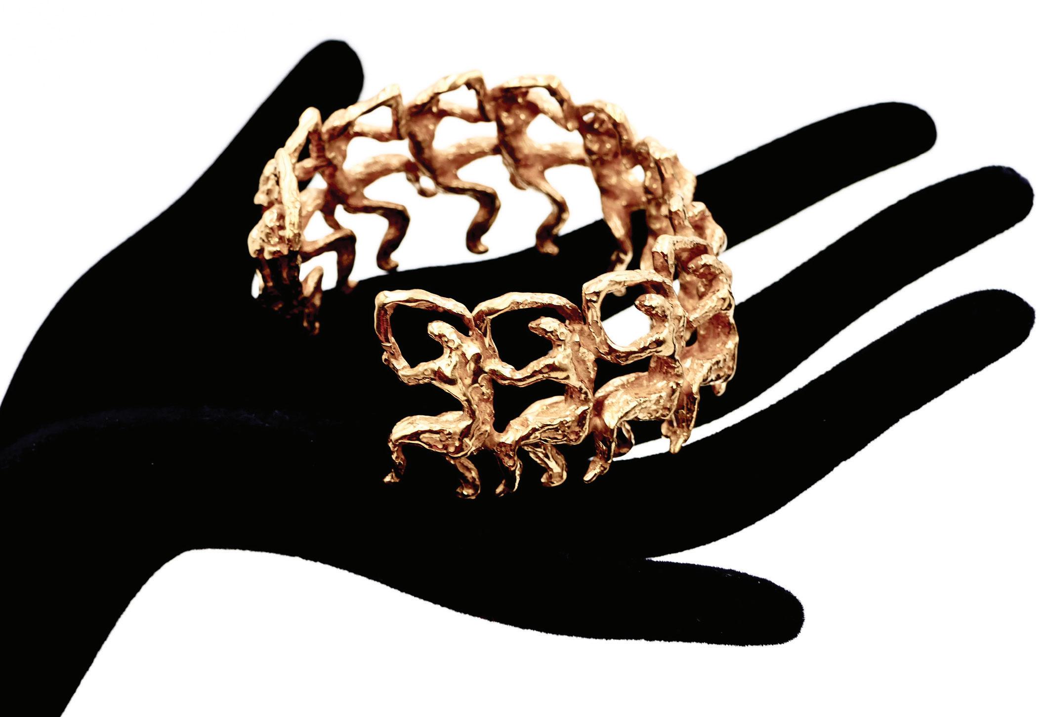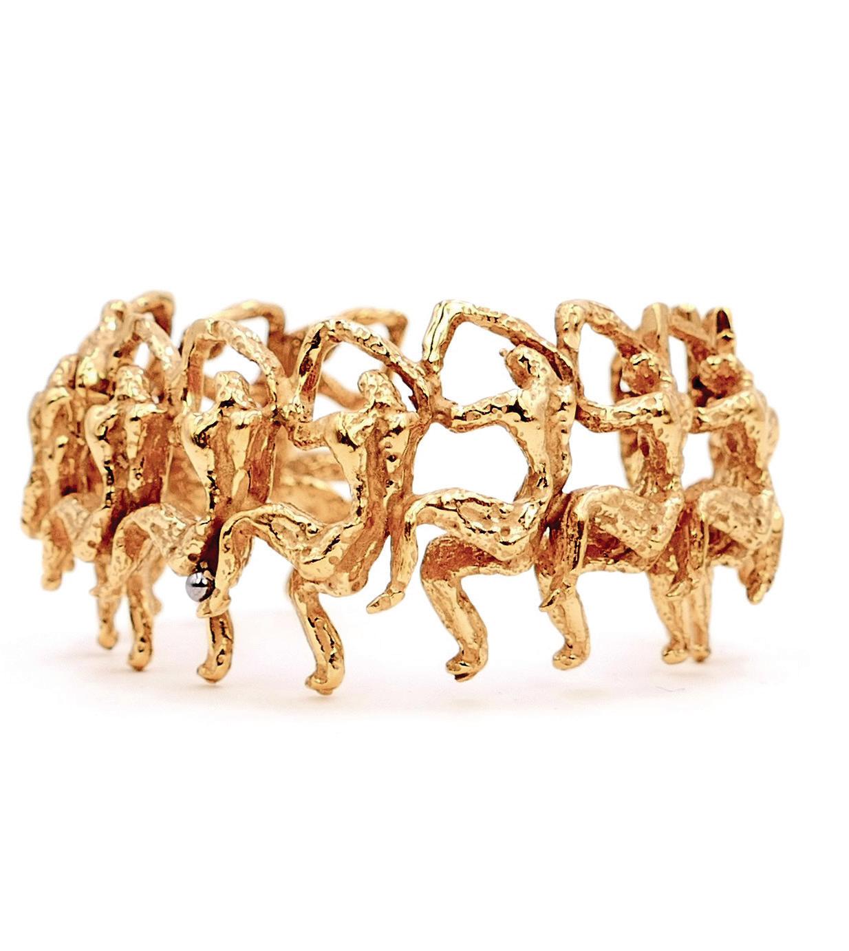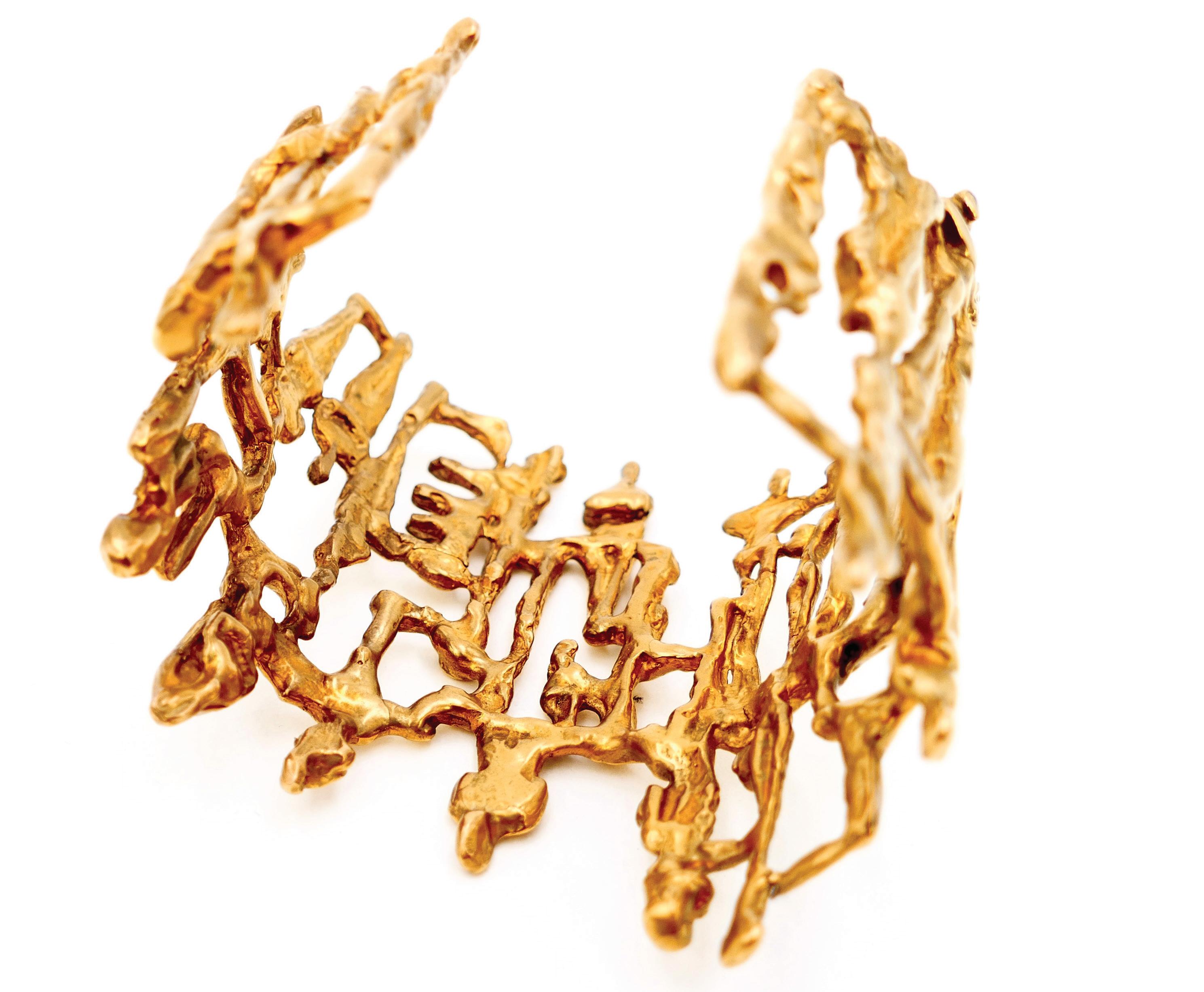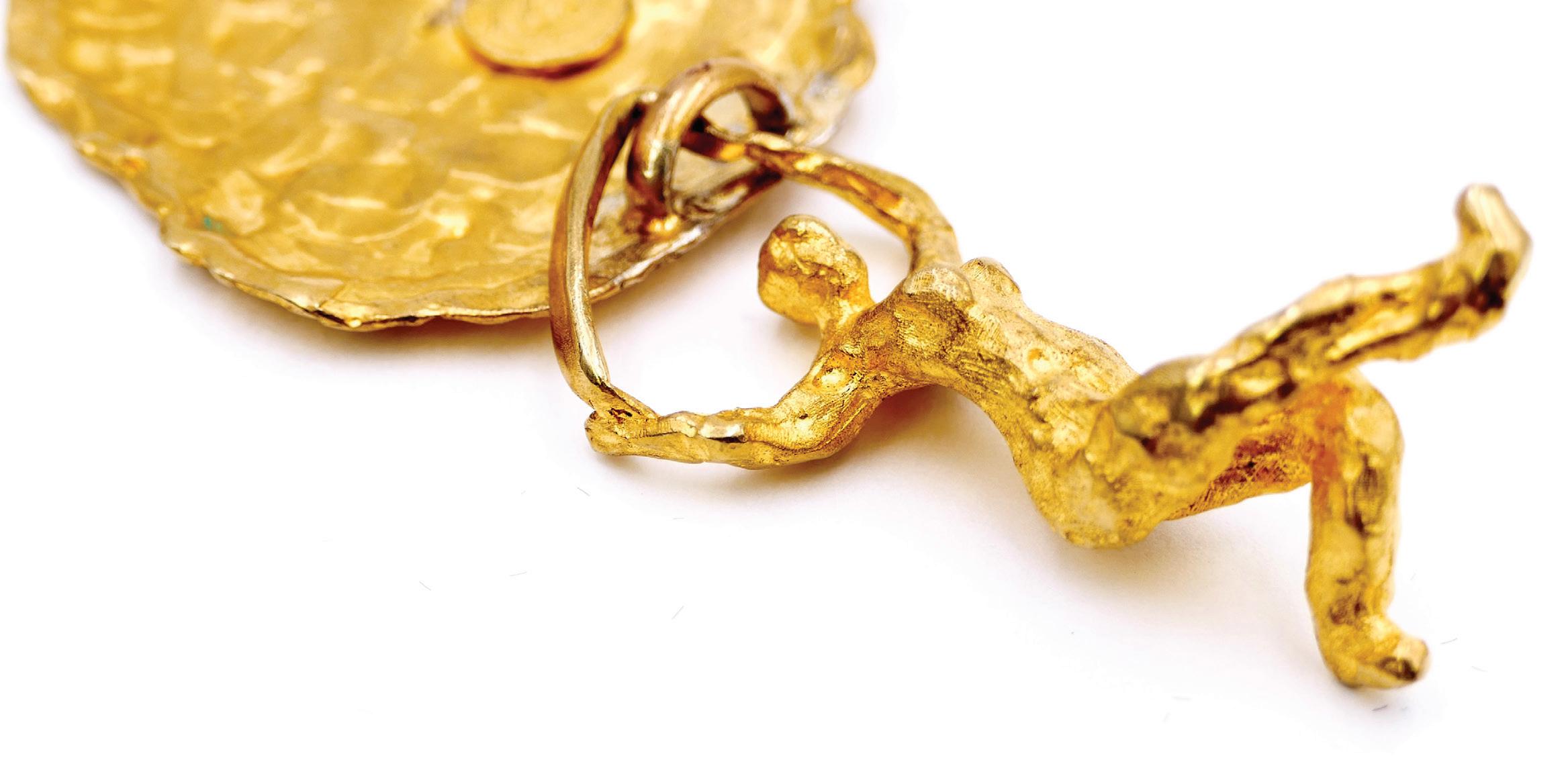Wax is my material of choice: malleable, it opens up infinite possibilities. It was already at the origin of my sculptures. It allows for incredible precision and lightness, which perfectly match the sense of movement I like to give my jewelry. The choice of material is essential: for the sculptures, bronze, with its ancient soul and strength, gives my pieces a sense of timelessness. In steel, iron, or resin, they would not convey the same message. The techniques are very similar to sculpture: I model the object directly in wax before it is cast by a foundryman, followed by casting, chiseling, and gilding. It’s a complex but wonderful process, full of possibilities, where each step is guided by what I wish to express.
