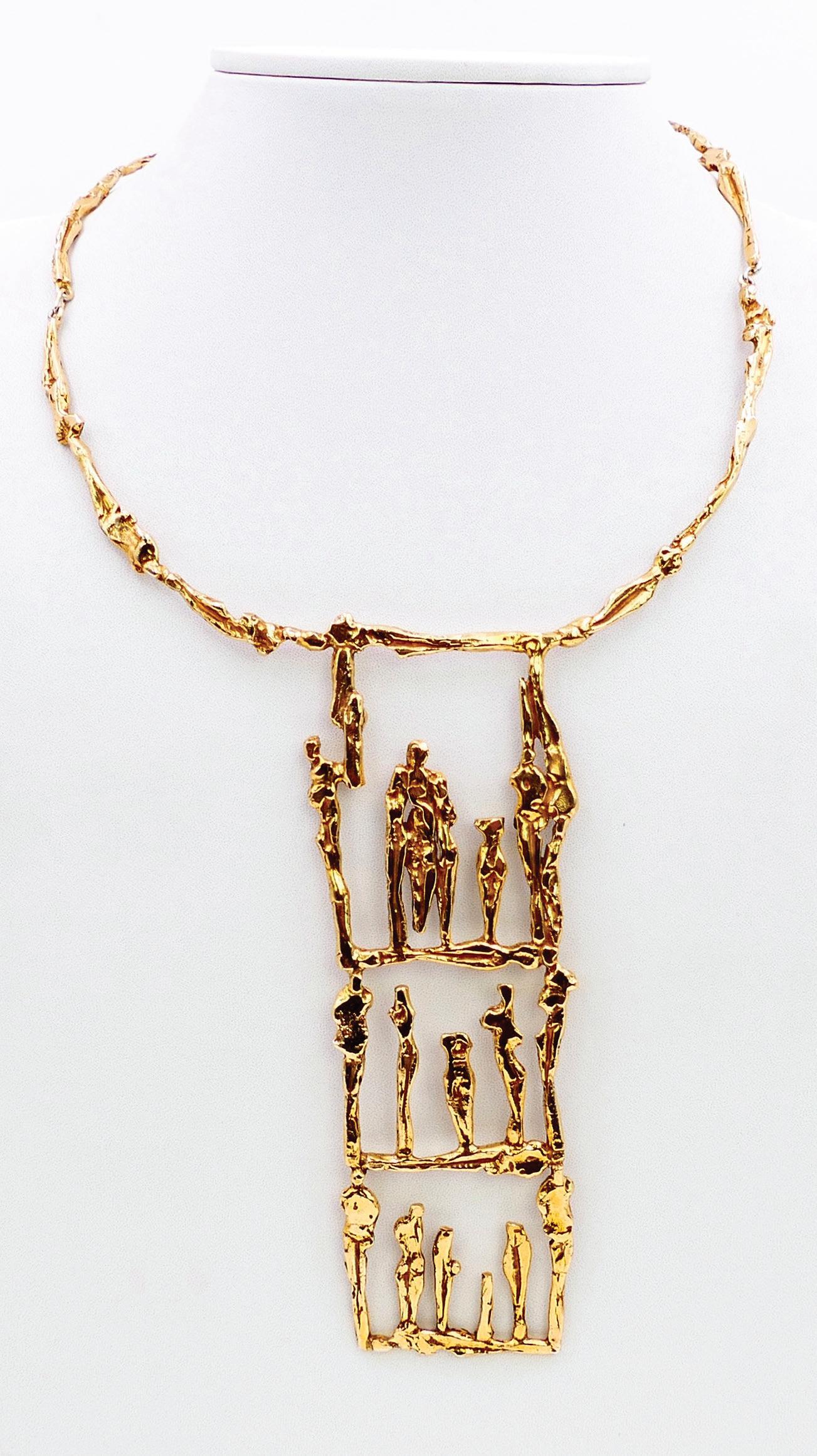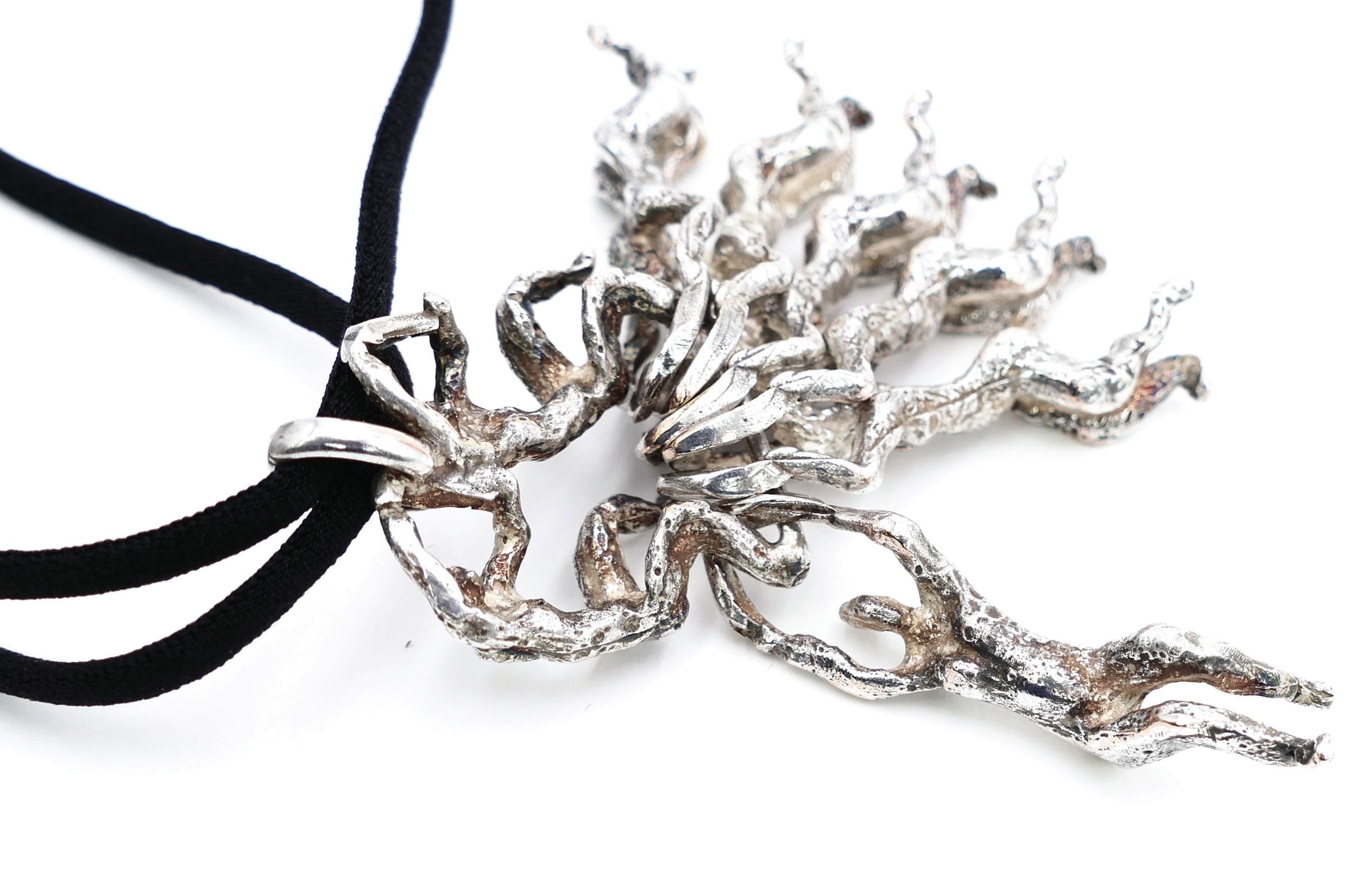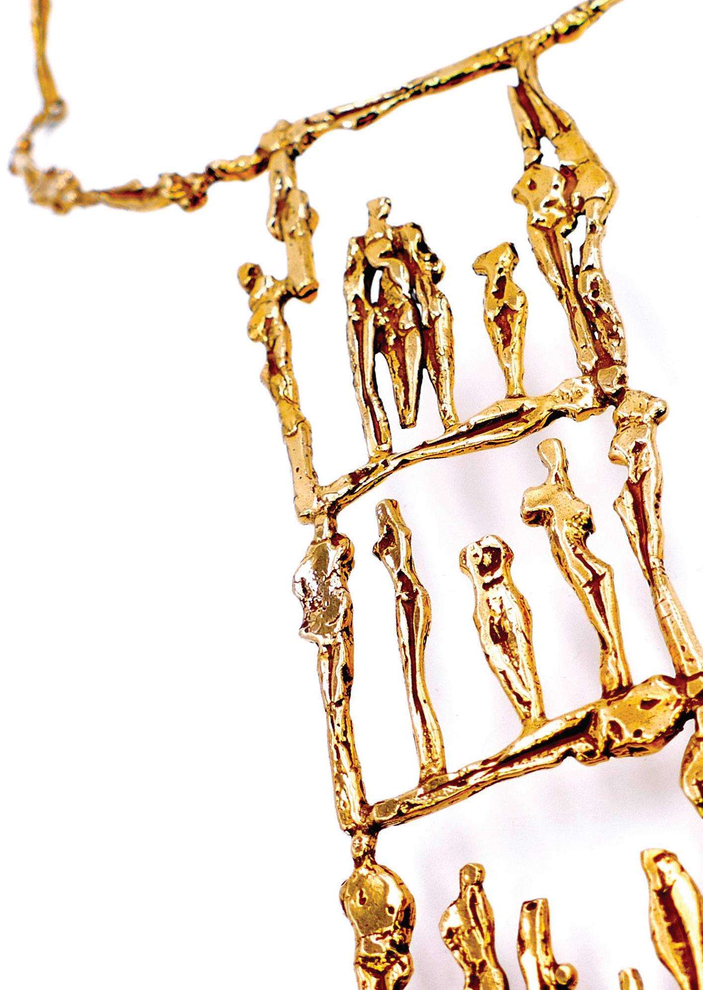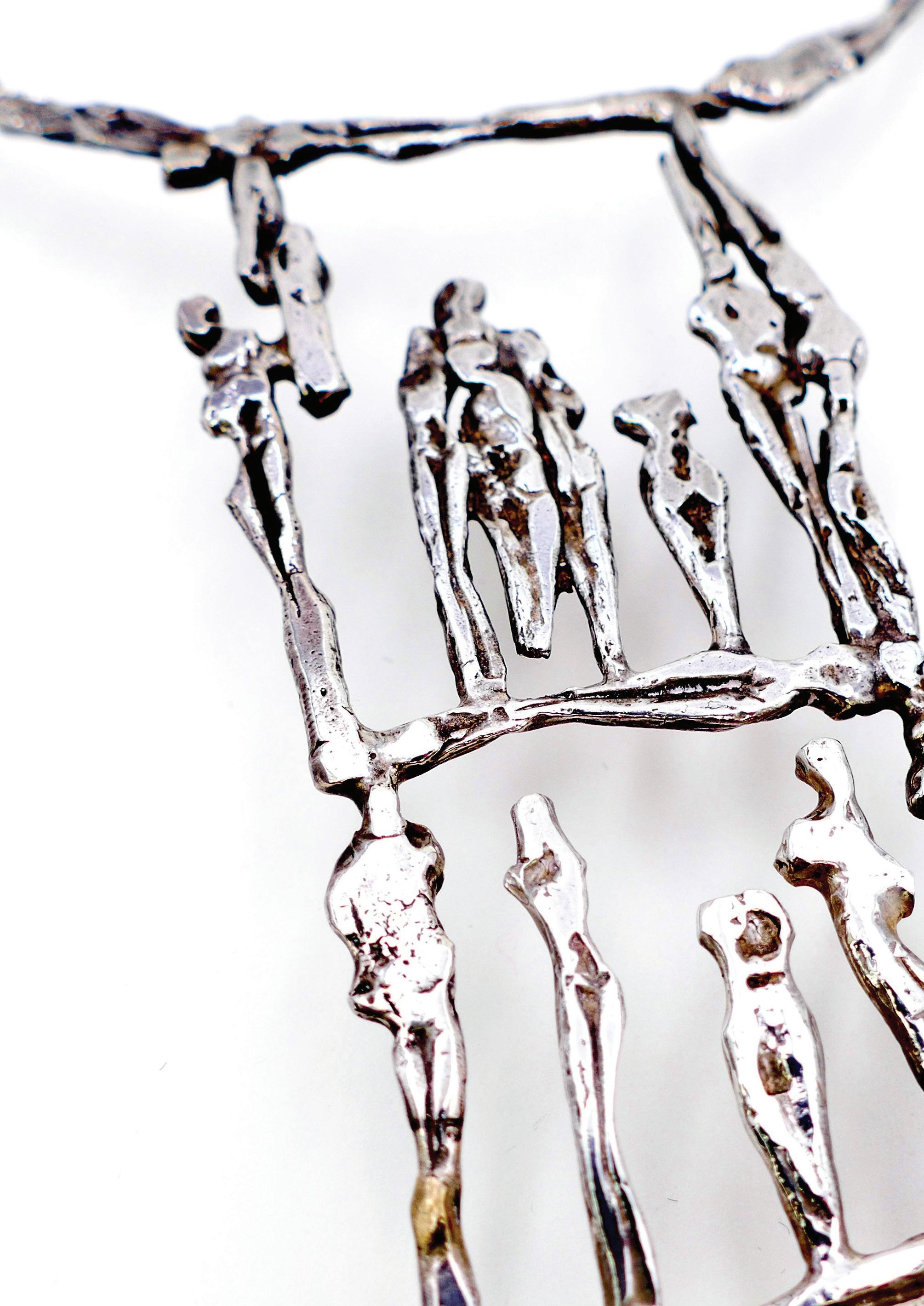 Pendants, necklaces, rings, bracelets: each piece is born from the same patient gesture as sculpture, worked, chiseled, and patinated like bronze. One can recognize Nisa’s hand in each work — a hand that shapes matter to reveal the memory of humanity: an humanity of origins, of ancient civilizations, of genesis and the sacred. In every jewel, the woman becomes mediator, bearer, and transmitter of an immemorial heritage.