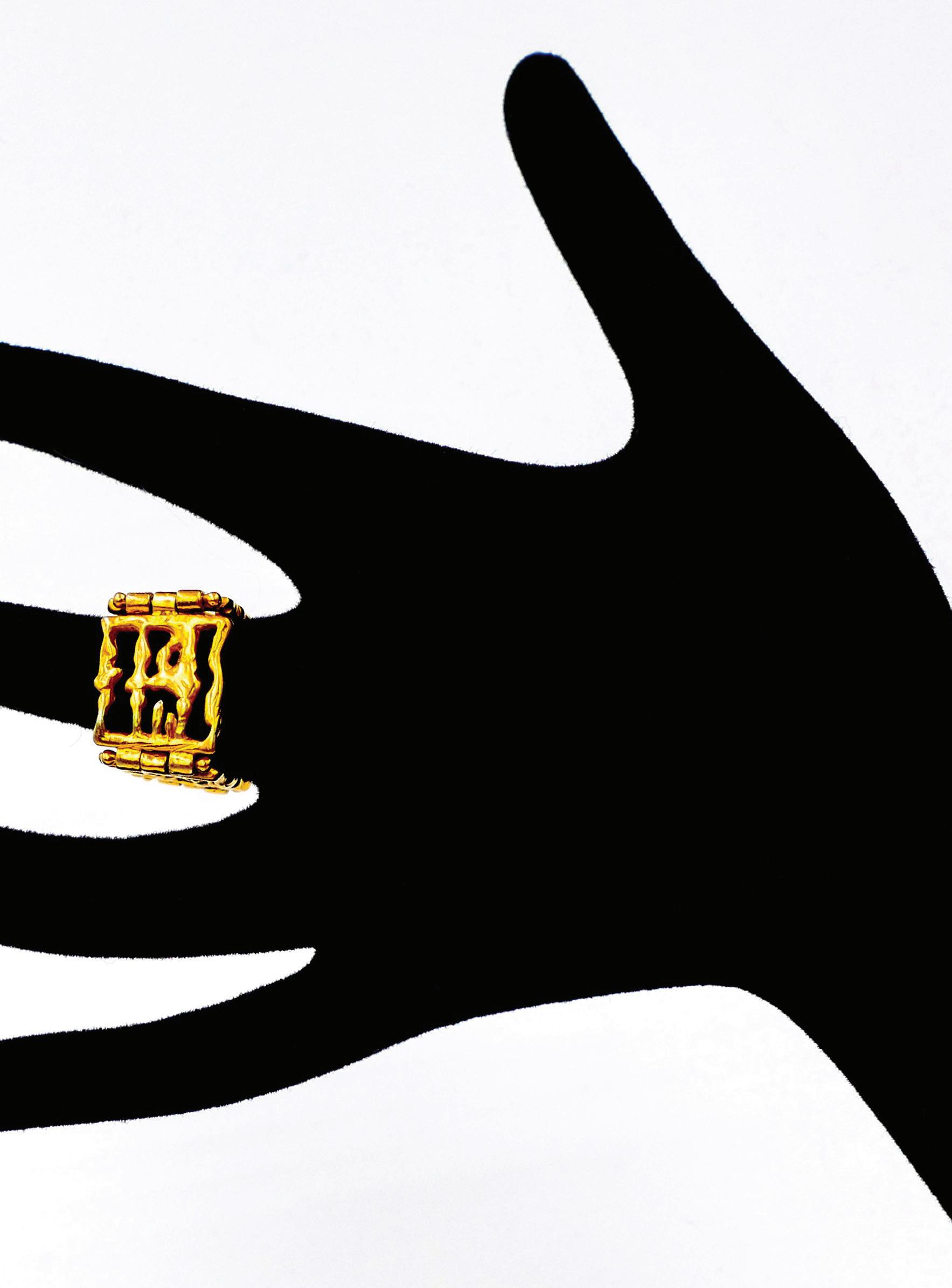 Articulated square ring in collaboration with Zolotas (a renowned jewelry house founded in Athens in 1895)