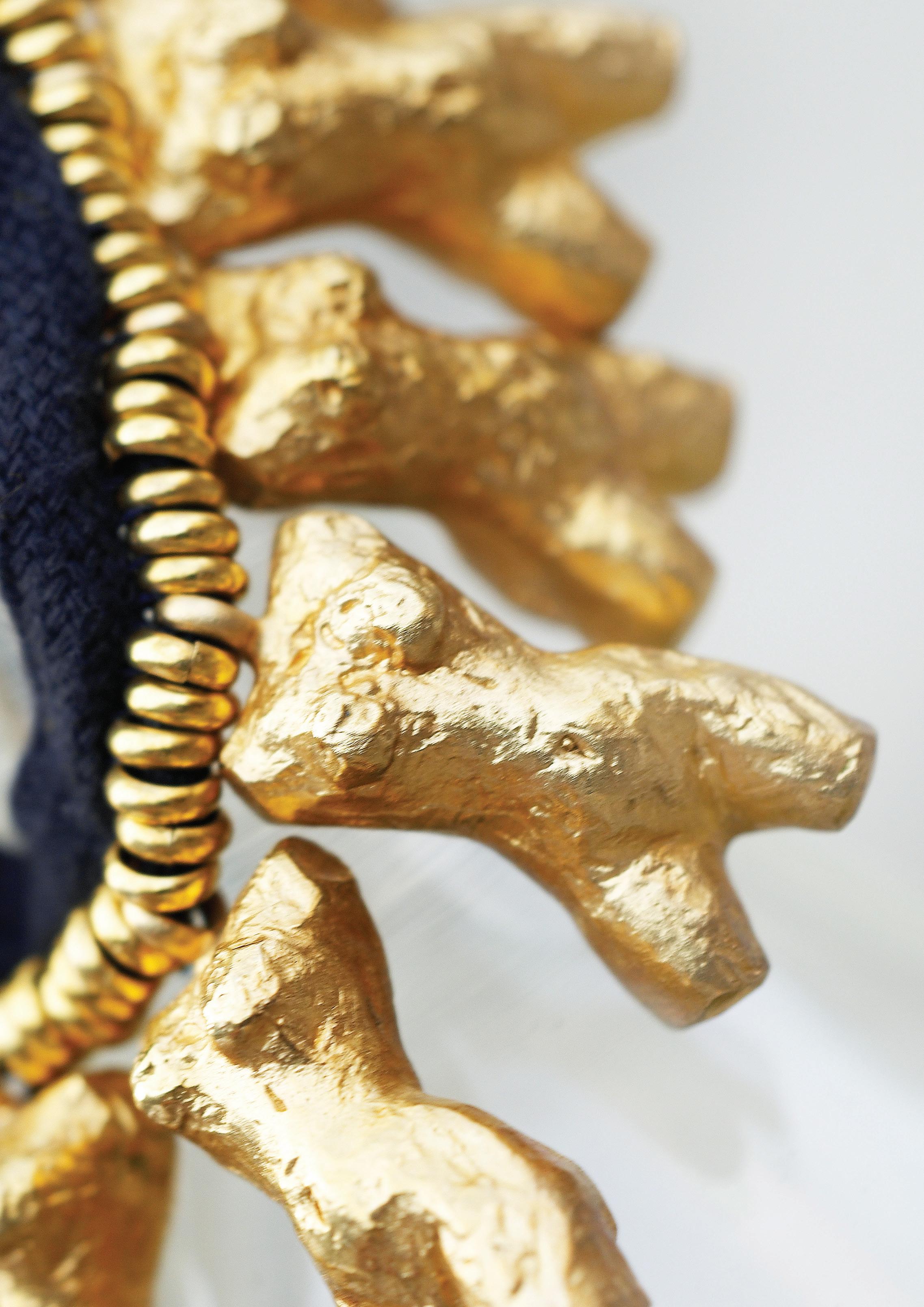 Les procédés sont très proches de la sculpture : je modèle directement l’objet en cire, avant qu’il ne soit moulé par un fondeur, puis viennent la fonte, le ciselage et la dorure. C’est un processus complexe mais merveilleux, plein de possibles, où chaque étape reste guidée par ce que je souhaite exprimer.