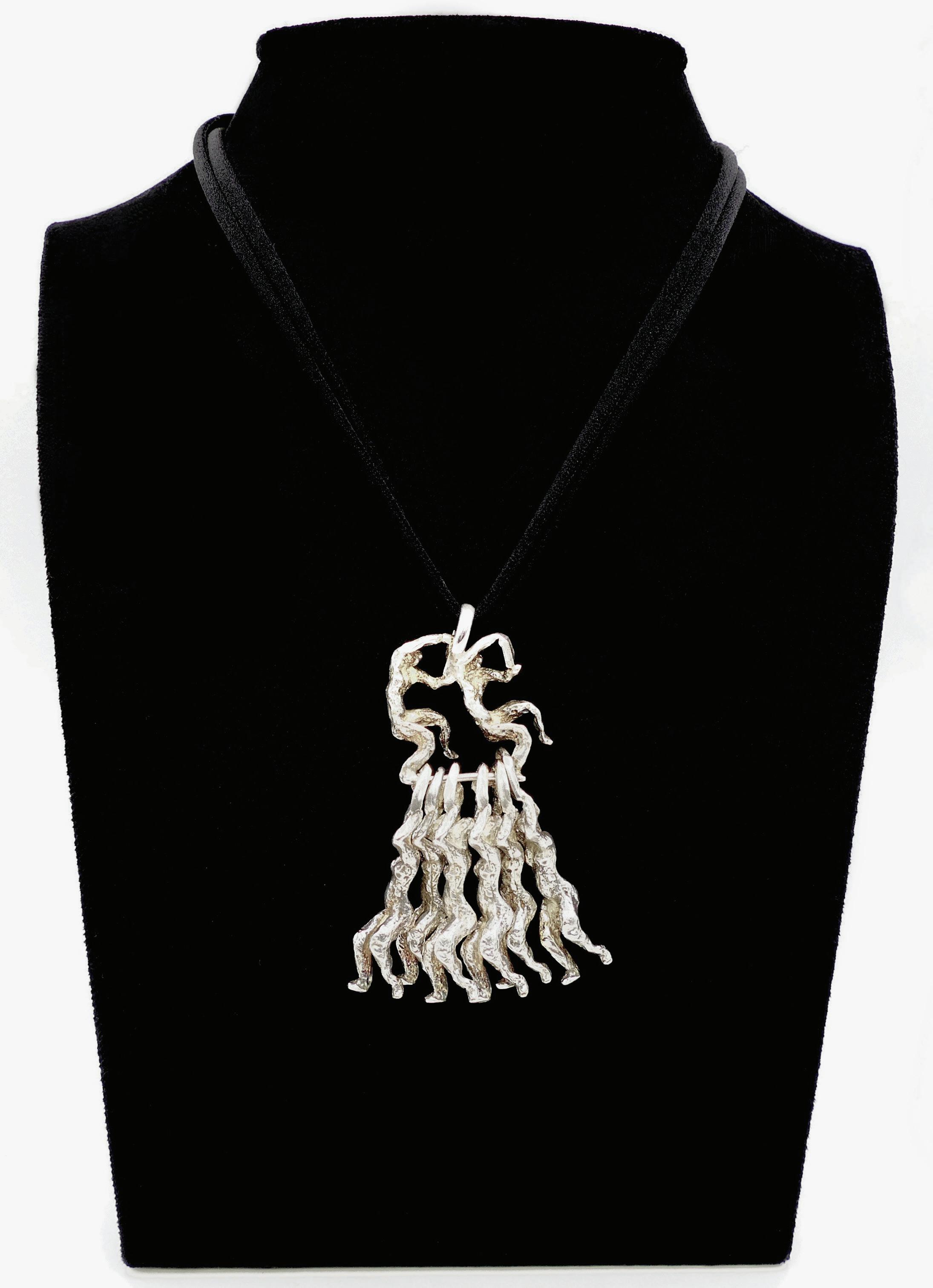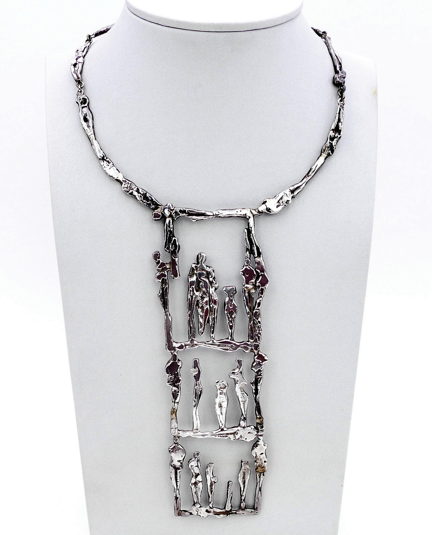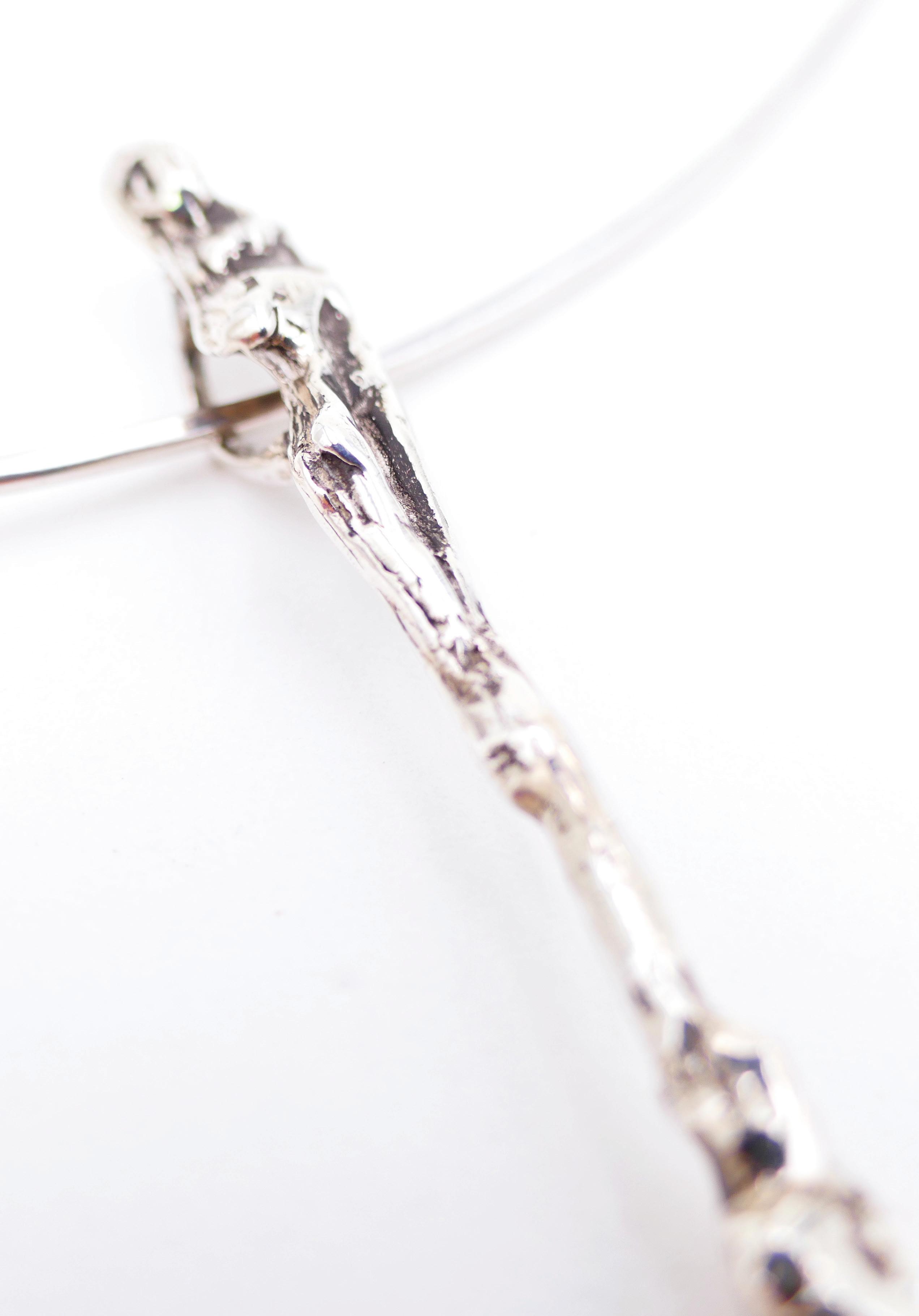 Silver necklace with long figurative pendant 21 gr pendant : 13,5 cm