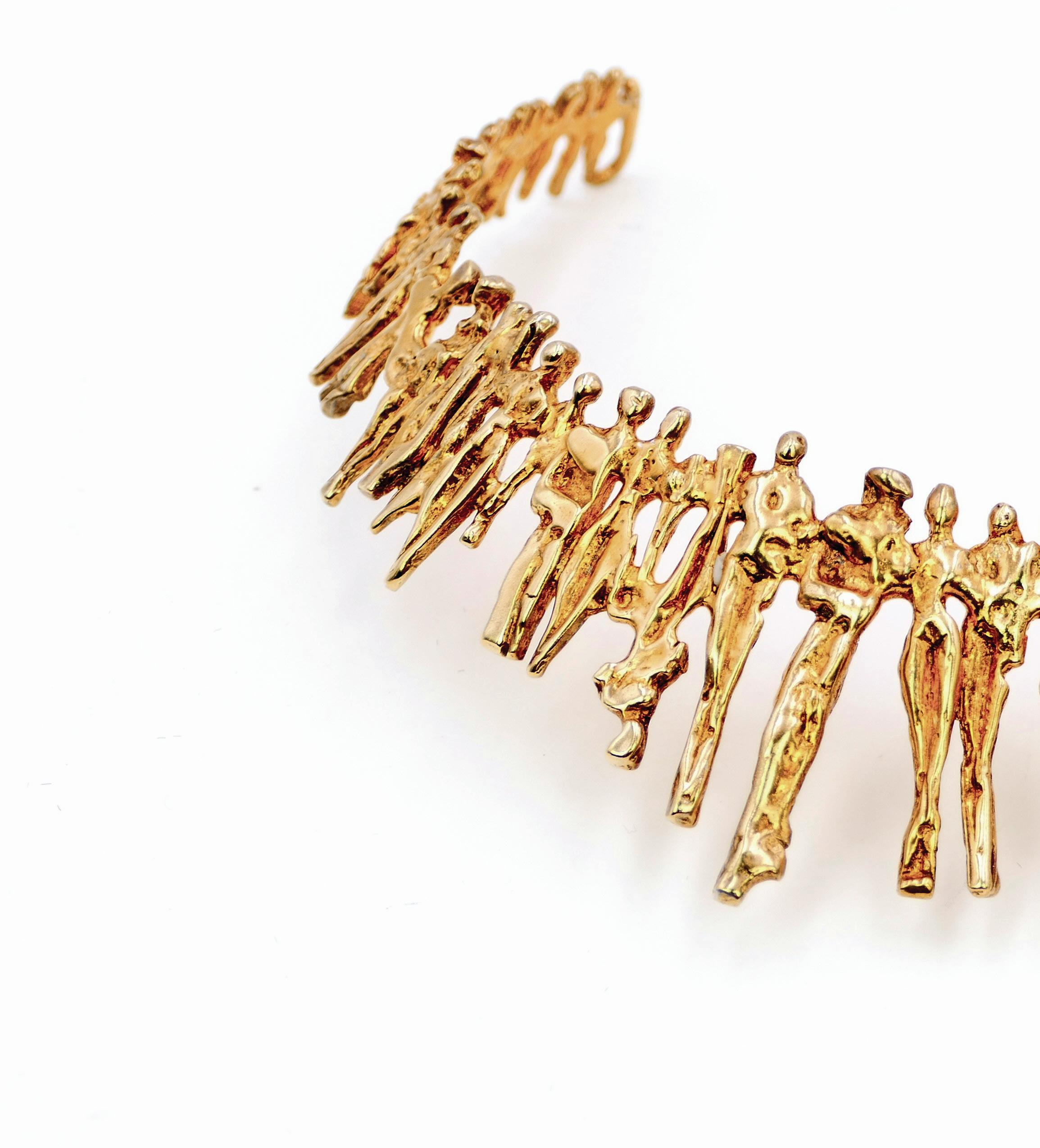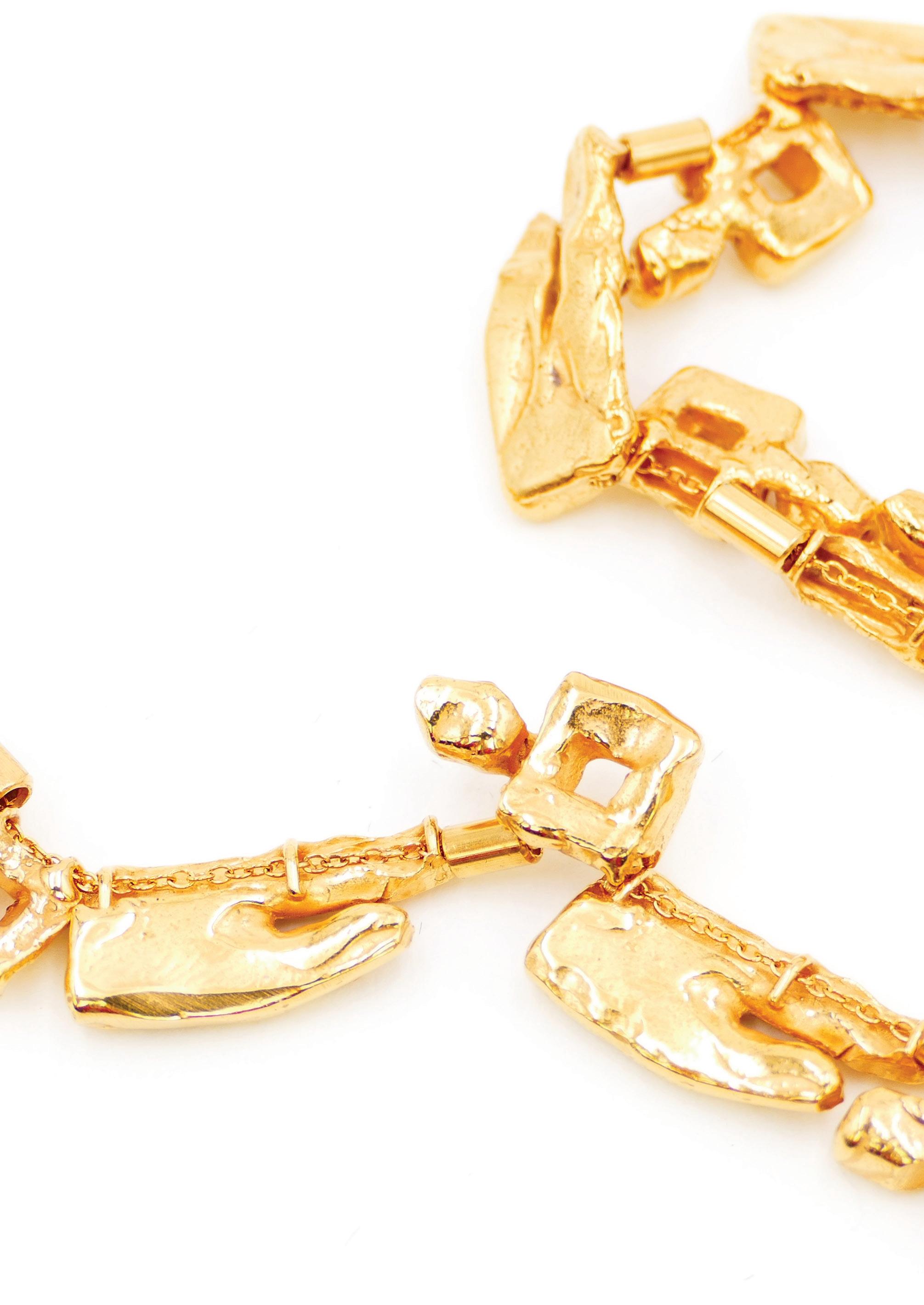 For me, a jewel is neither a miniature sculpture nor a standalone work of art. It simply becomes jewelry. In my view, the essence of the artwork lies in the sculpture itself — it is there that I embody my thought and intention. I start from a fragment, an element that suggests a piece of jewelry to me. A jewel that comes to life upon contact with the body — it should be light, pleasant to wear, and perfectly fitting. This constraint doesn’t exist in sculpture, which occupies its own space. And when I see my pieces worn by others, it brings me joy: each wearer gives them a different presence, almost a living extension of my gesture.