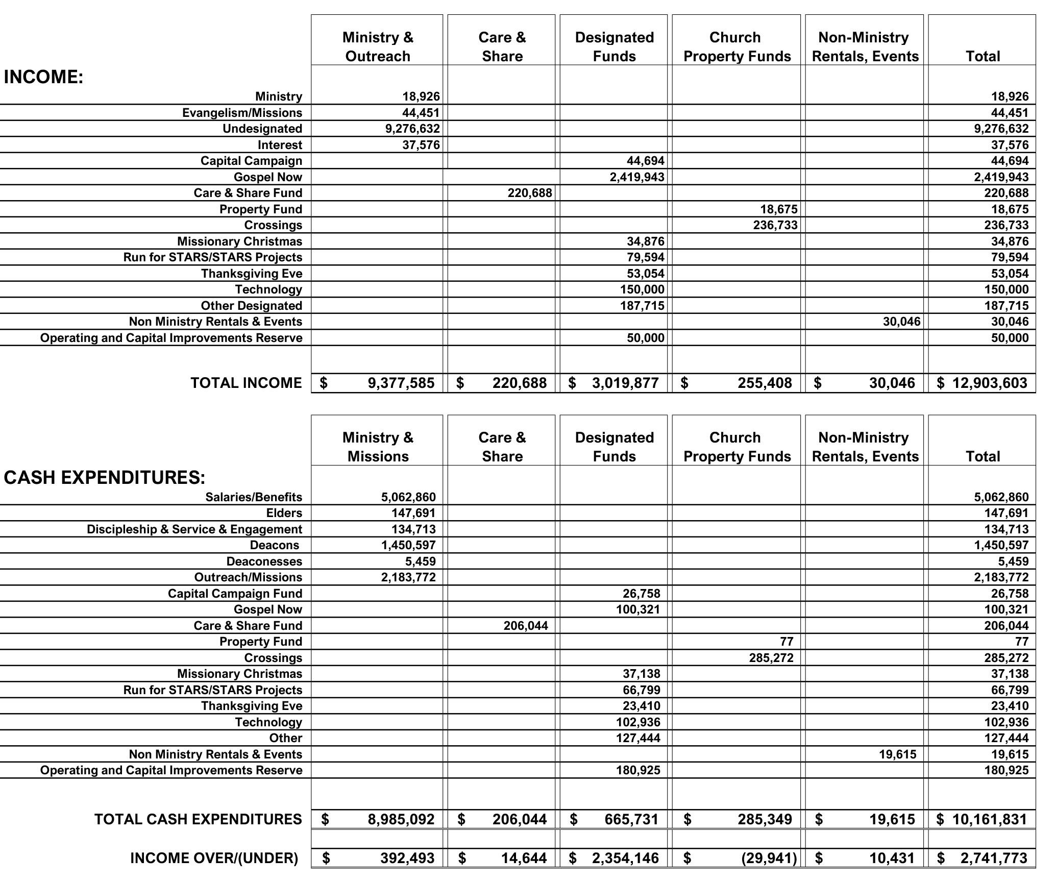 MINISTRY/MISSIONS BUDGET VS ACTUAL GIVING VS EXPENDITURES