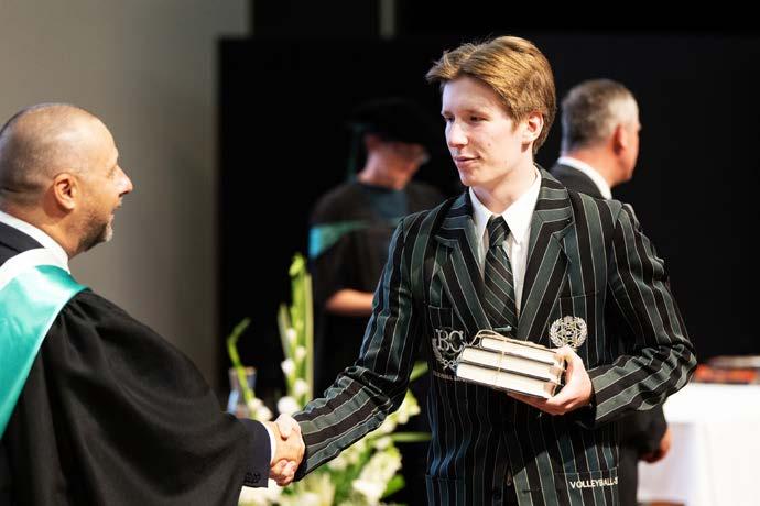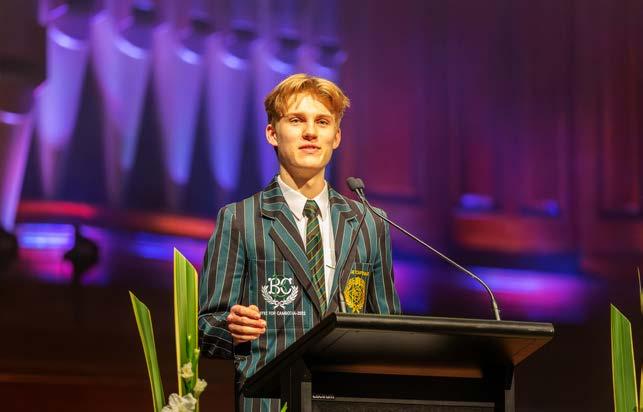 students striving to achieve their best efforts. I remain immensely proud of all BBC athletes, not only for their level of skill but also for their resilience, commitment and sportsmanship. In a year with much to celebrate, it is important to acknowledge the efforts of our First VIII, who secured back-to-back Head of the River titles in Term 1; our Premier Water Polo team, who continued their dominance with victory in their competition; and our peerless cross country team who returned the Jack Ross Trophy to BBC with their victory in the GPS Championships. These successes, along with the brilliant support afforded to our athletes by their mates in the stands, reflect a community united in their quest for distinction.