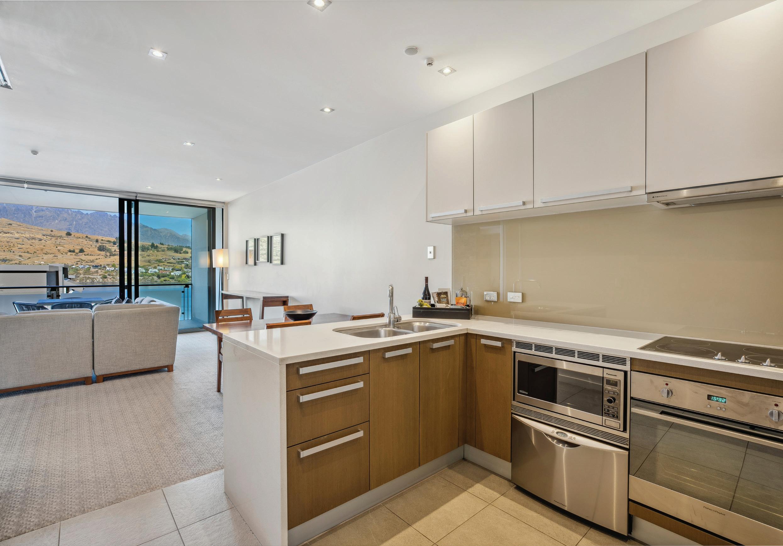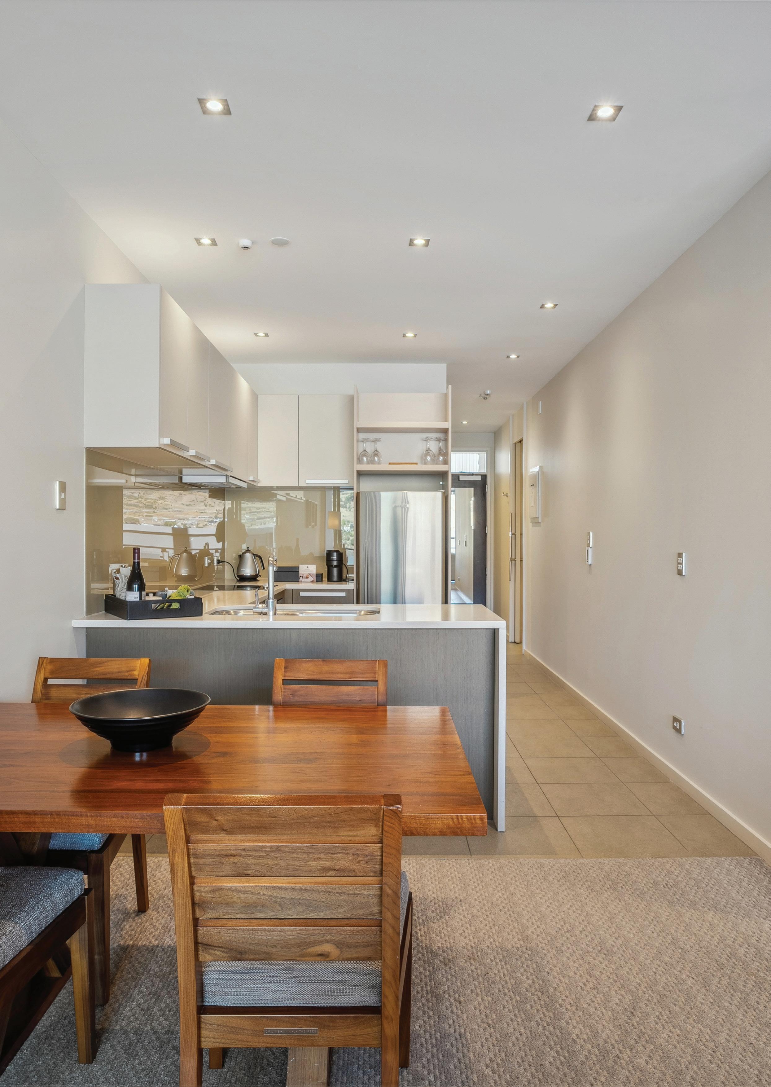 Fully furnished by renowned Arrowtown designer Ed Cruikshank, this apartment is designed to impress. The kitchen is fully equipped with all you need to entertain family and friends.
