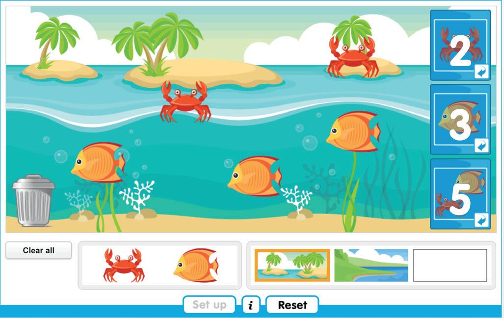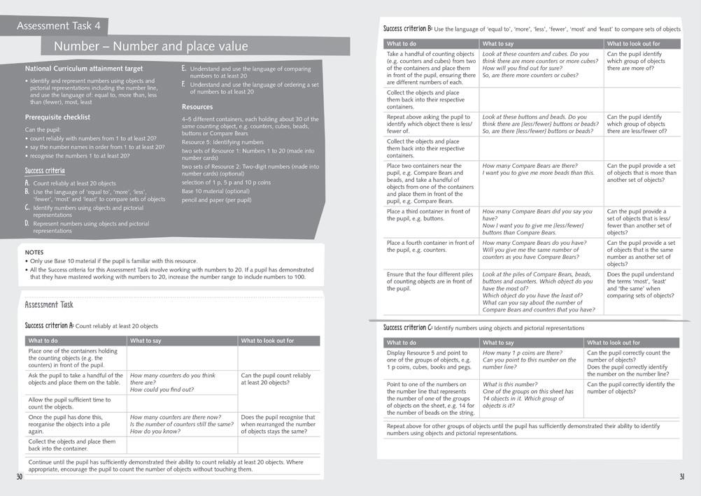 • A range of physical classroom resources that enable children to perform independent number work
