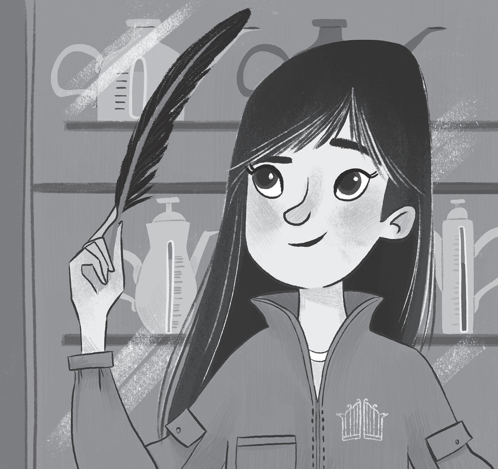 Grace stared at the feather more closely and realised he was right. “Oh. Then what’s a feather doing in the shop?” Grace called back to Olive, “You don’t own any pet birds, do you?”
