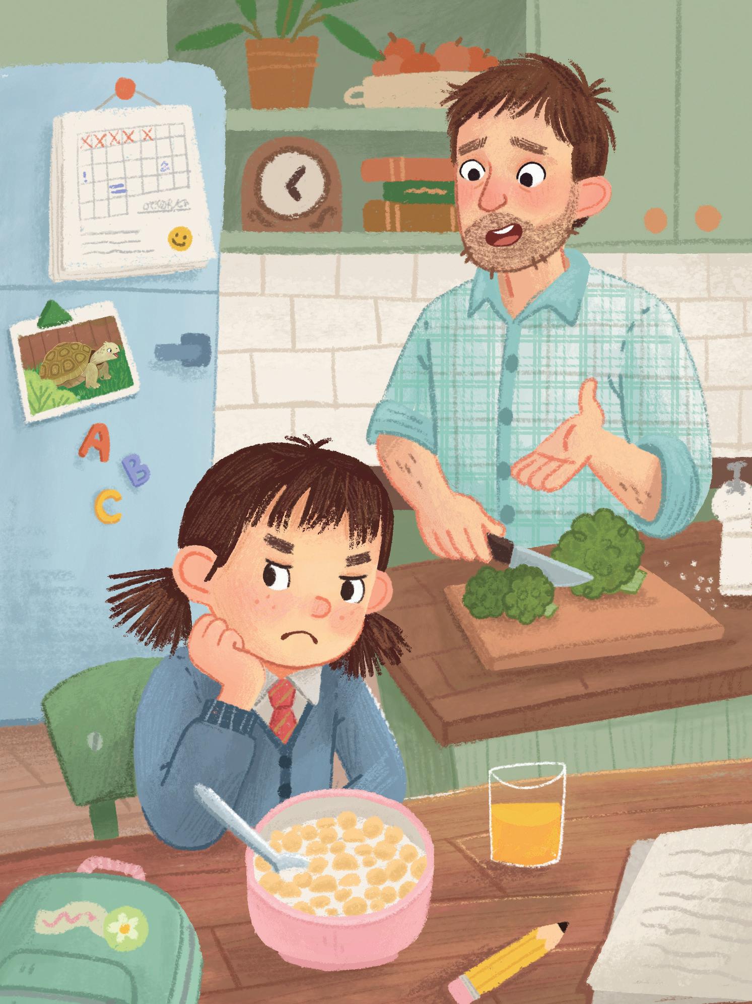 “Sorry, Ava,” Dad said. Dad and Ava were in the kitchen getting breakfast ready.