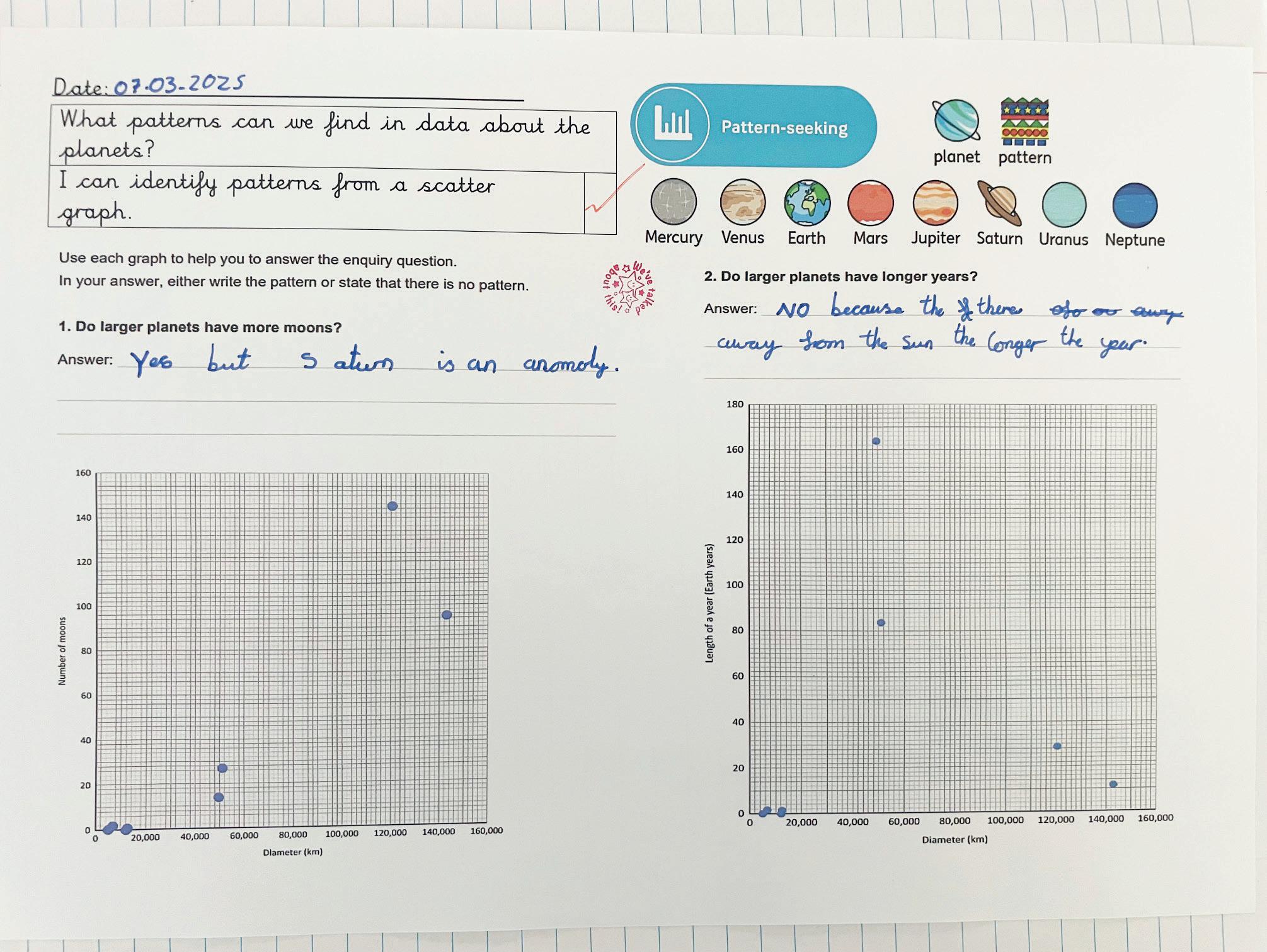 Each lesson provides clear objectives, working scientifically skills, and a question-led approach that helps structure both teaching and reflection on learning. Teachers use and adapt the provided resources and supplement them with school-designed ā€˜power-up’ tasks to revisit prior learning. Assessments are tailored in-house, using checks aligned with Snap Science’s learning intentions. Working scientifically is tracked using a spreadsheet based on the Snap Science model, with a focus on identifying pupils who need support or who missed certain activities.