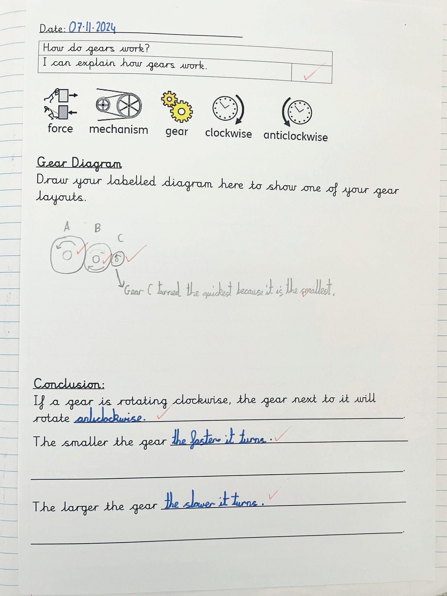Writing conclusions at the end of experiments helps them reflect on what they’ve learned, and they view science as a way to improve the world—whether by solving environmental challenges or creating better materials and inventions. They also understand that scientific progress relies on testing, refining, and improving ideas over time.