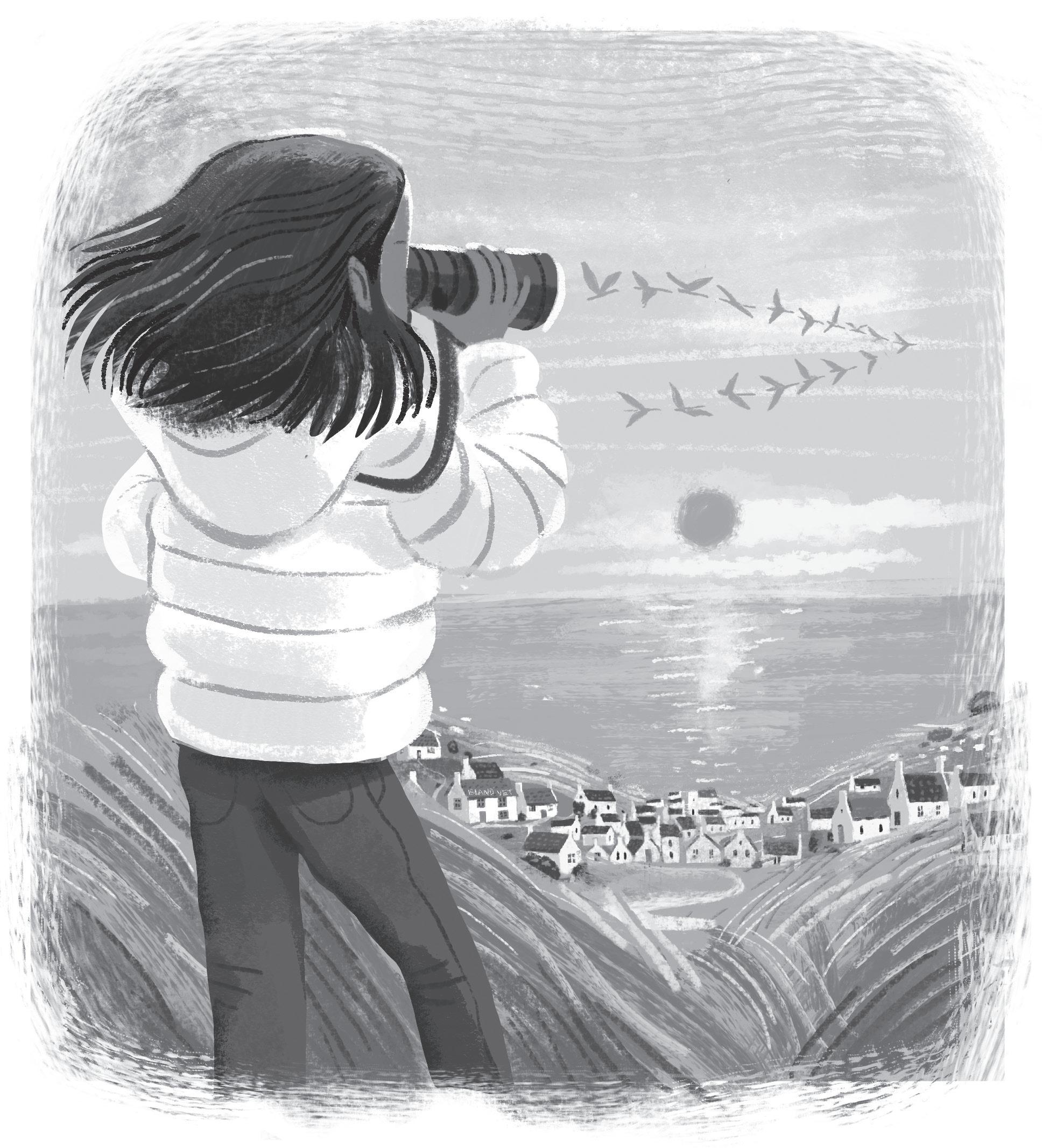 “They’re pink‑footed geese. People call them pinkies for short,” said Nat’s dad. “They come from the far north. I’ve seen a few arrive already. I’m sure others are on their way. They will stay with us for the winter on East Haven and graze in the fields. In the spring, they’ll fly back north again.”
