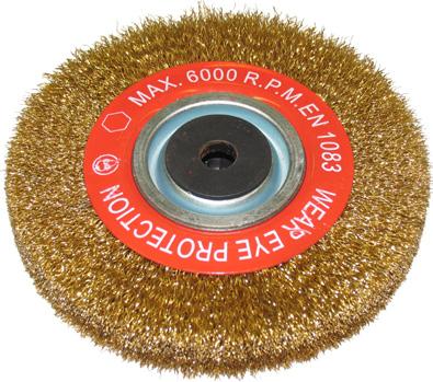 The wire wheels are made of crimped brass coated carbon steel wire. The crimped wire wheel offers high flexibility for applications on irregular surfaces. Excellent for light brushing, surface preparation, general purpose cleaning and deburring. They also support consistent, uniform brushing since the tool’s cutting action is at the filament tips.