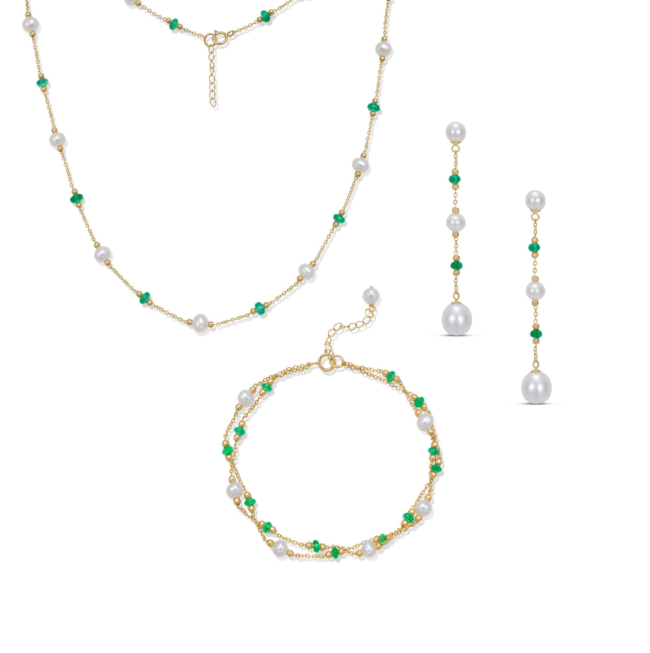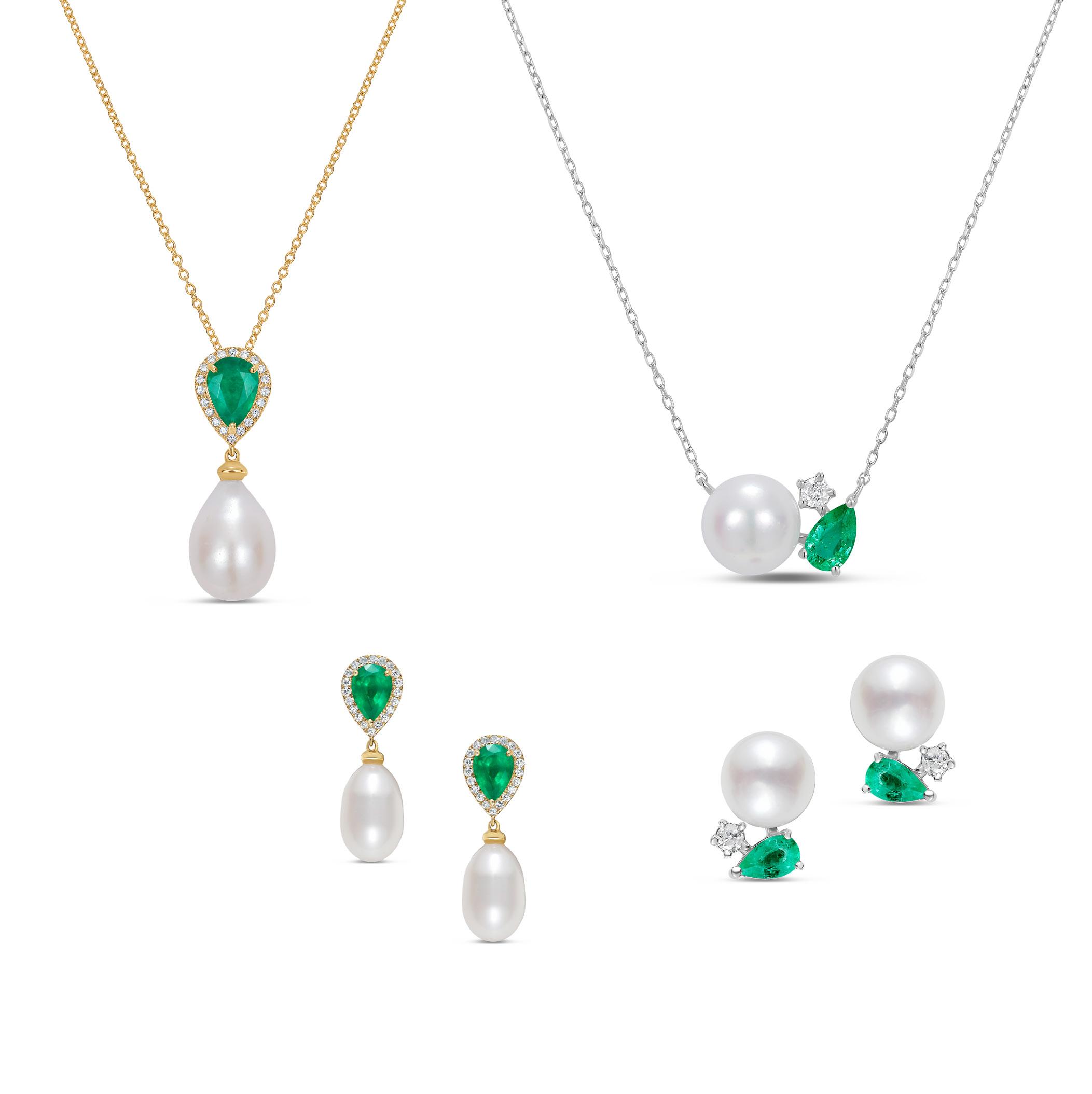 Emerald, Diamond & Akoya Pearl Necklace in 14K White Gold |D. 1/12 CTTW| SKU: 6777878