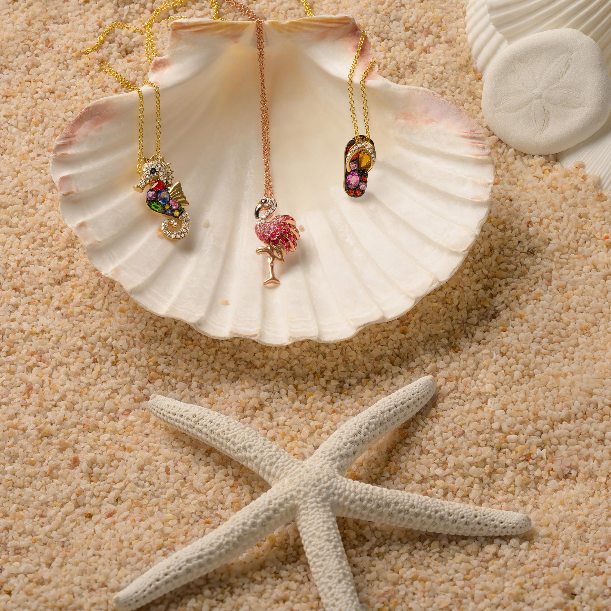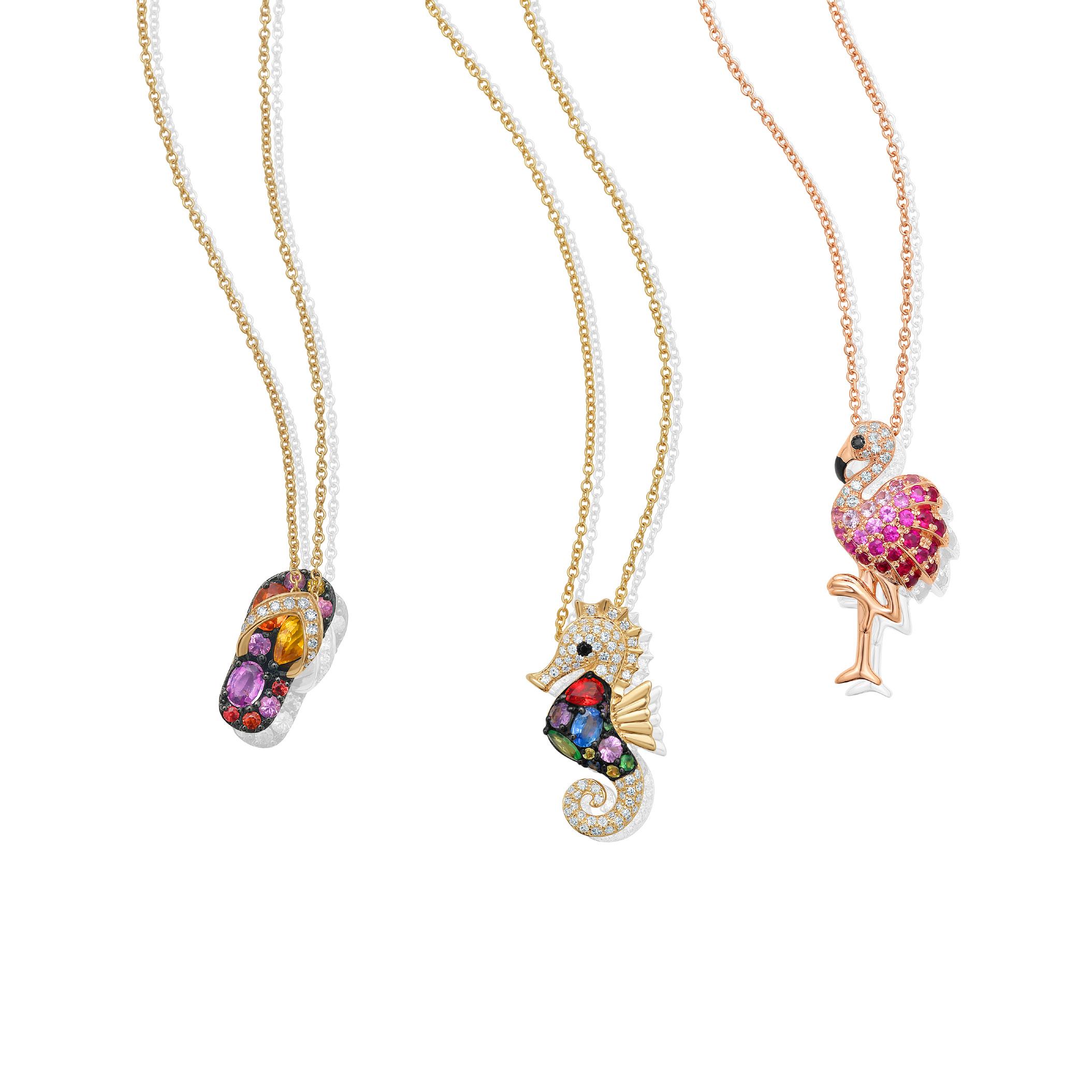 Multi-Sapphire & Diamond Flip Flop Pendant in 14K Yellow Gold |D. 1/15 CTTW| SKU: 327355, 5401661